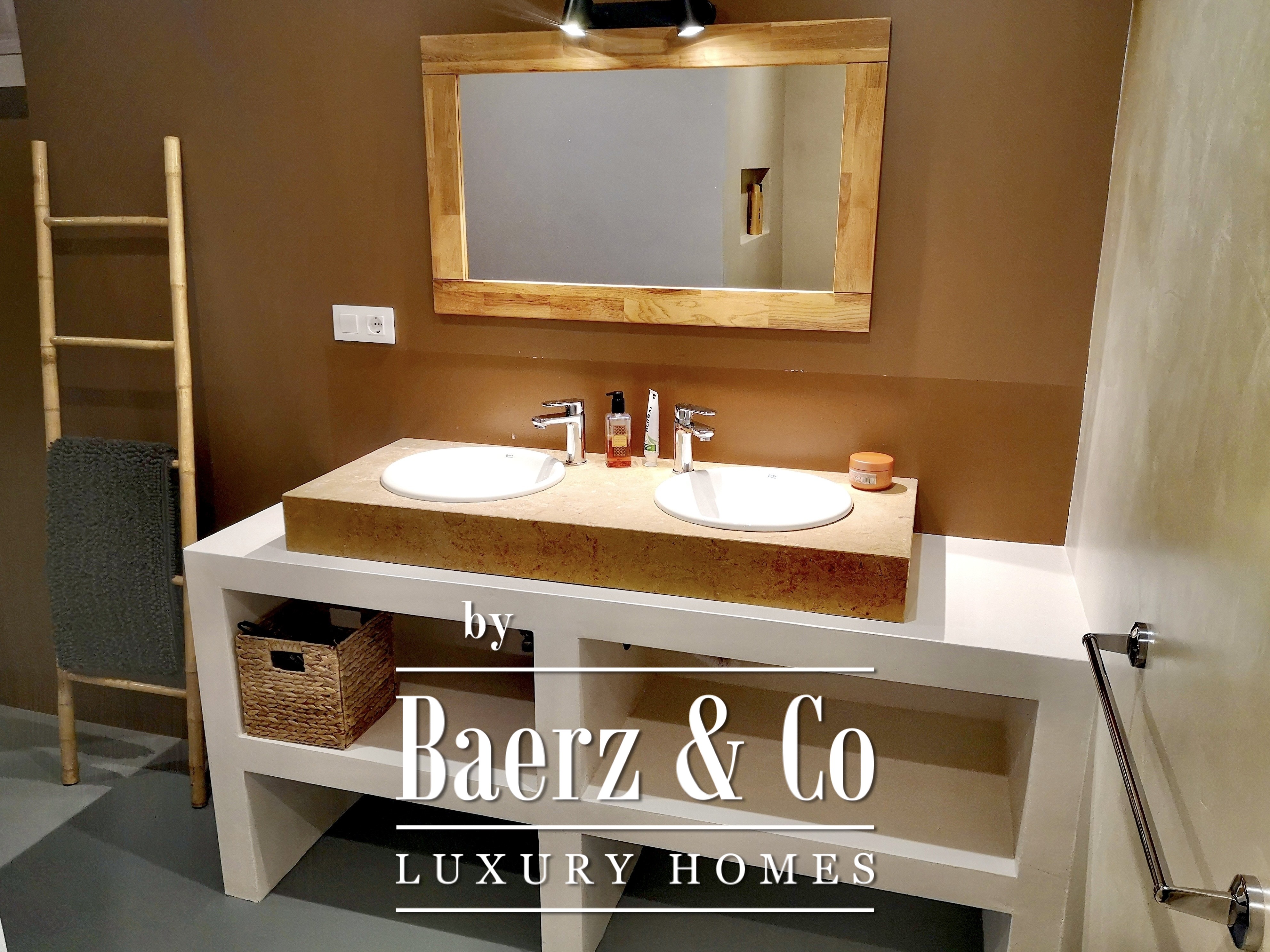 A staircase leads to the lower level of the property, where the 4 independent studio apartments are located — each designed to a high standard. All offer a private kitchenette, an en-suite bathroom and access to individual terraces that connect seamlessly to the landscaped garden.