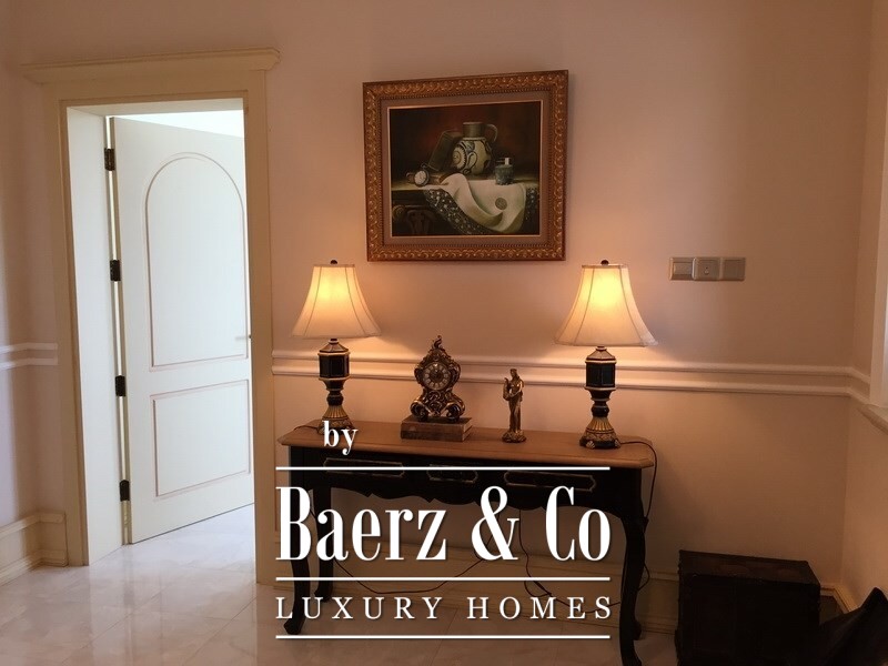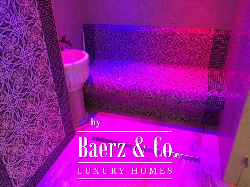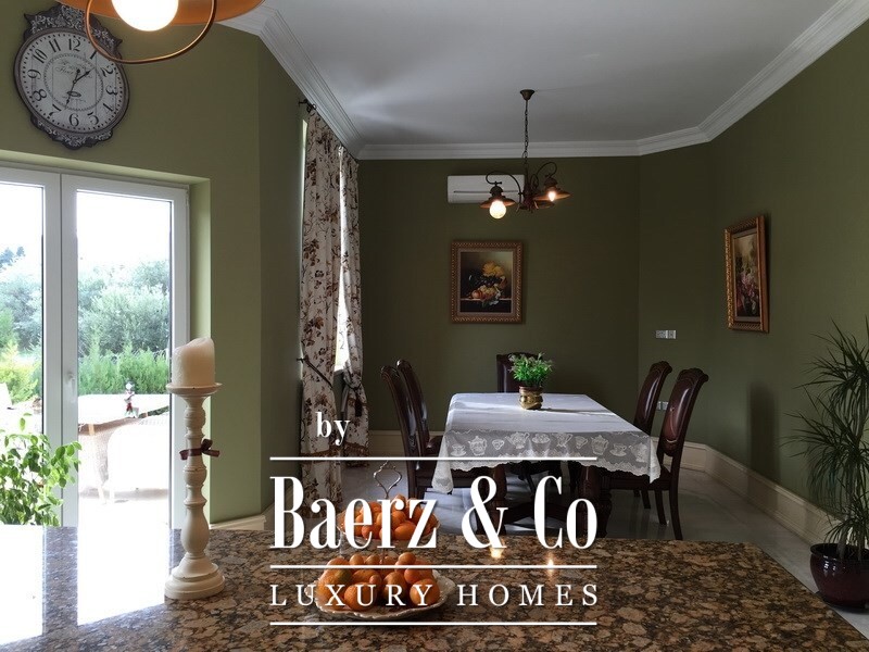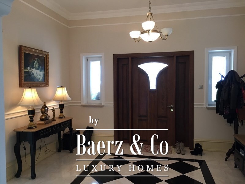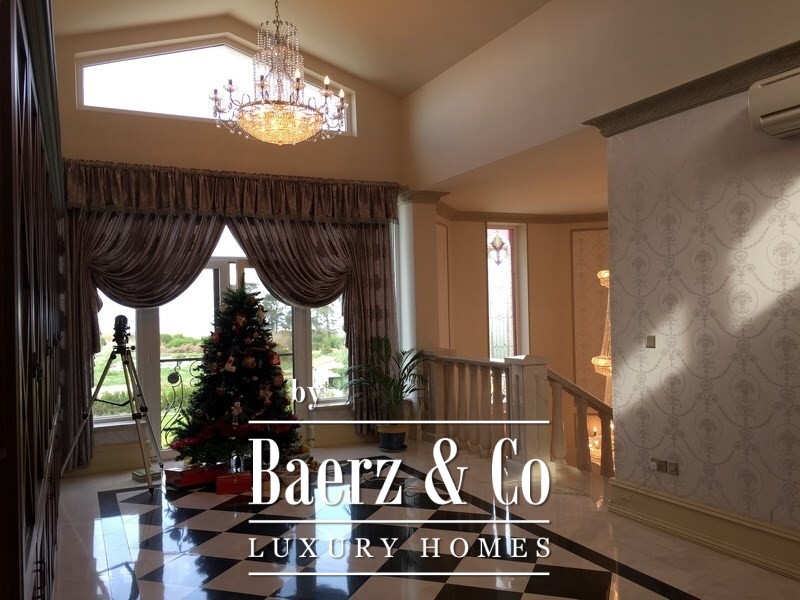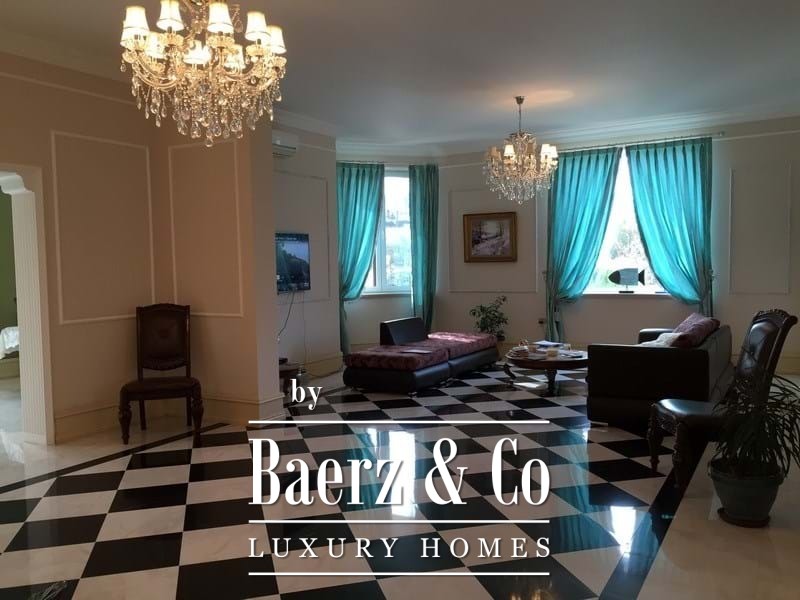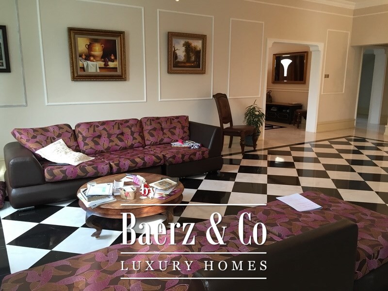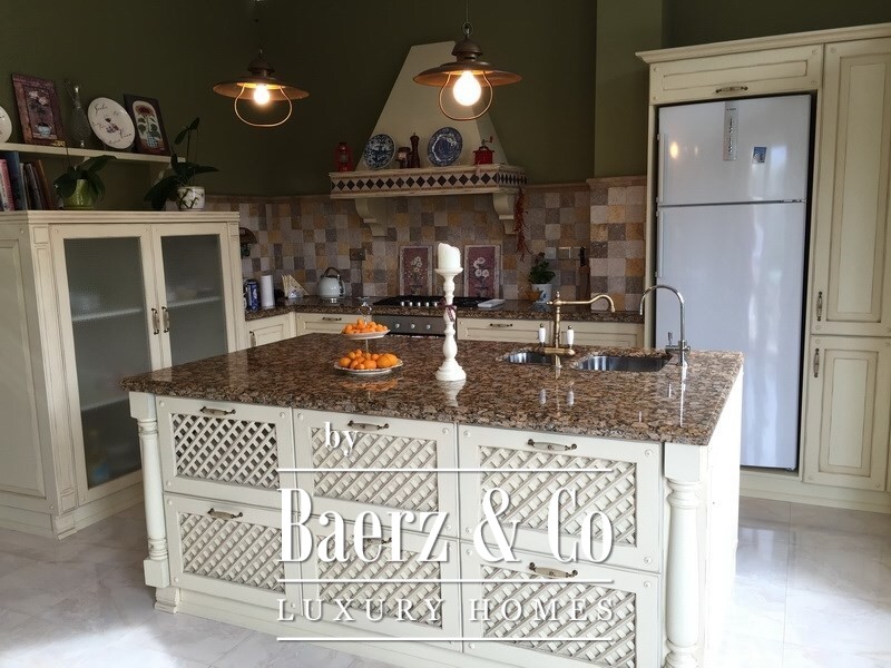 This is a beautiful elegant villa located next to the sea with a very spacious 450m2 internal size and posing high ceilings. The villa has 5 bedrooms, 3 ensuite bathrooms, 3 bedrooms having fitted wardrobes. Spacious living room, kitchen with fully fitted kitchen units, white goods, central isle and granite worktops, and is open plan to the dining room. An Impressive marble stair case of a best quality leads up to a landing area which is fully lighted up by a crystal chandelier. The landing is very spacious with large windows offering lots of natural light and has a lovely view to the sea. The garden is mature with a lovely green lawn, different fruit trees