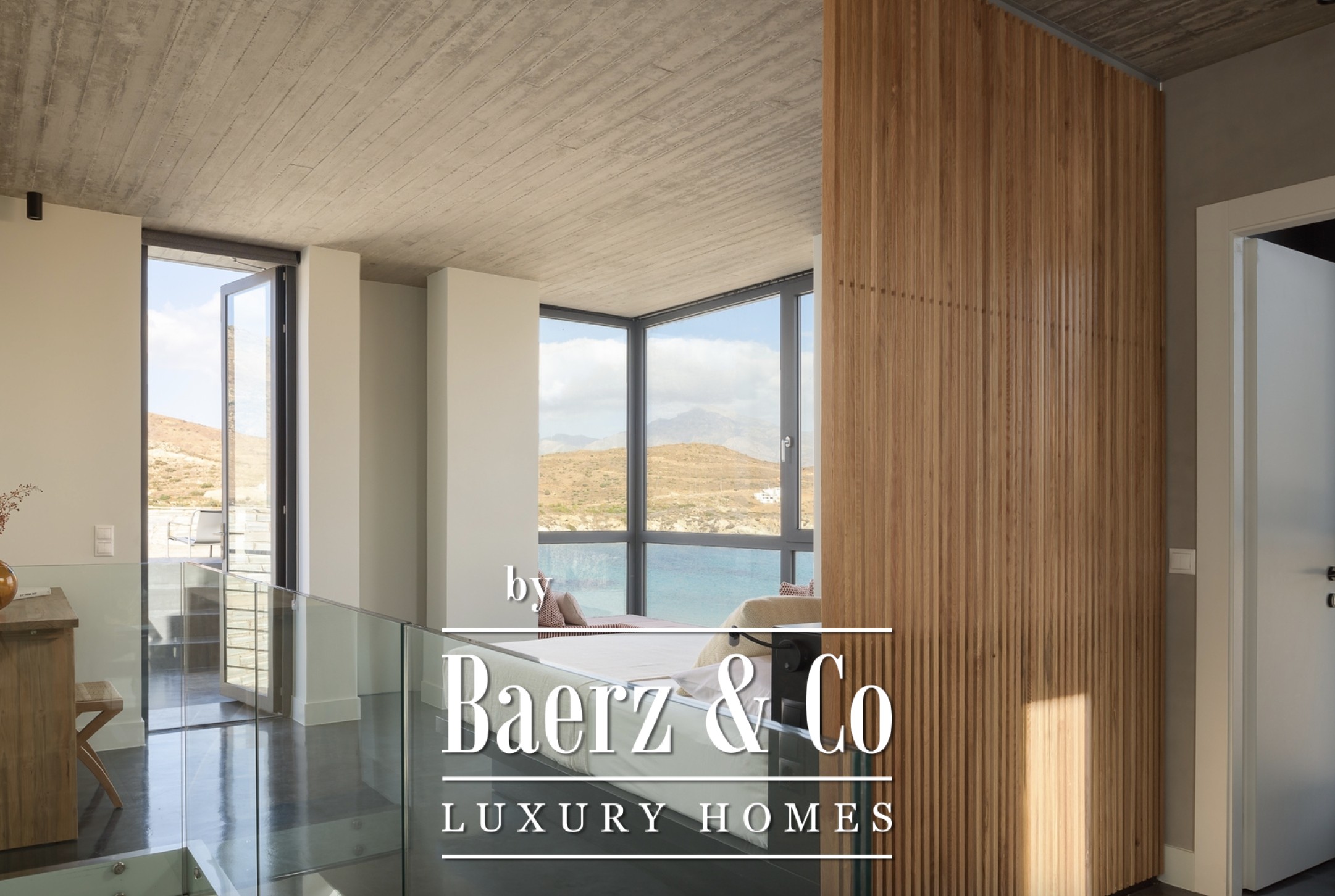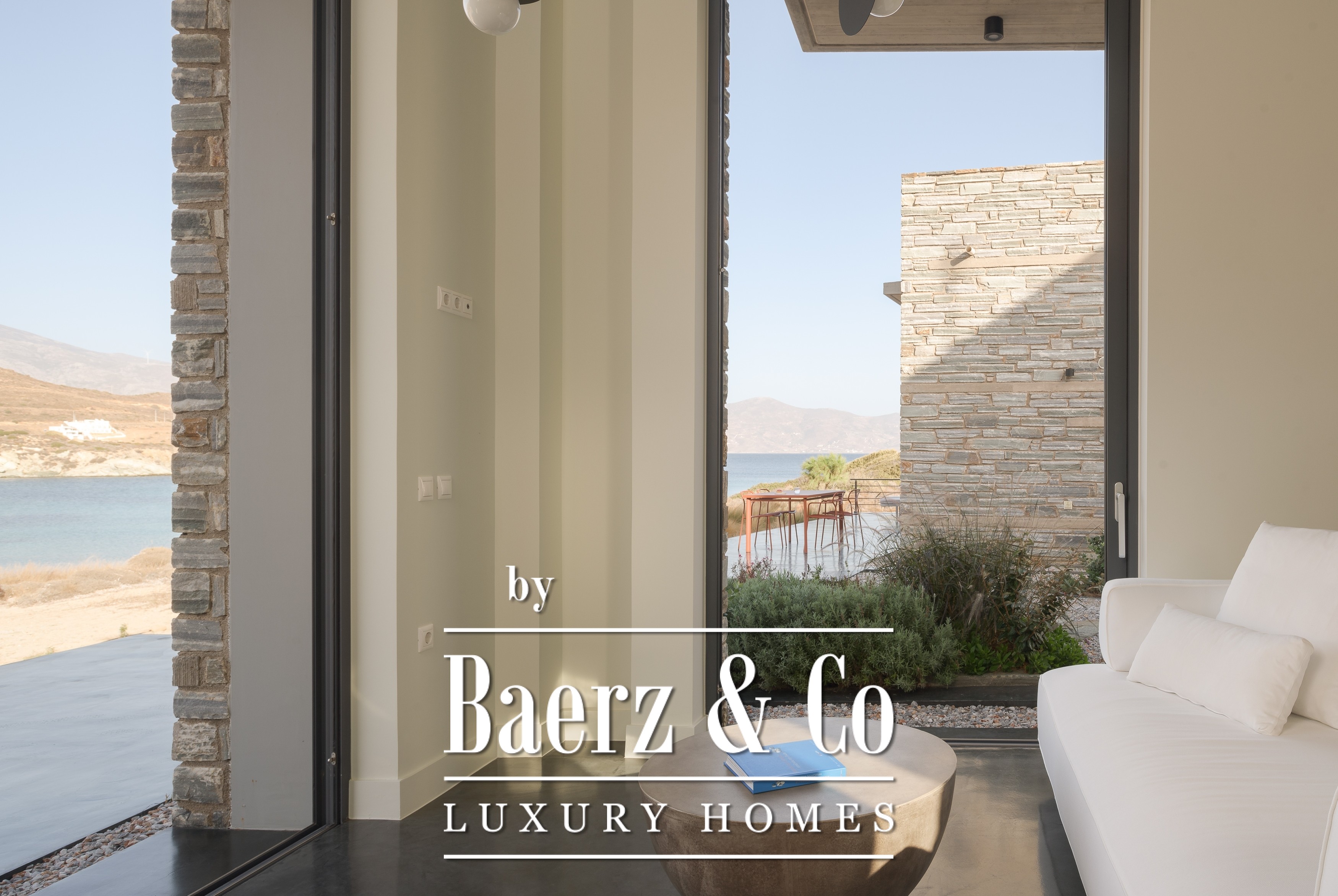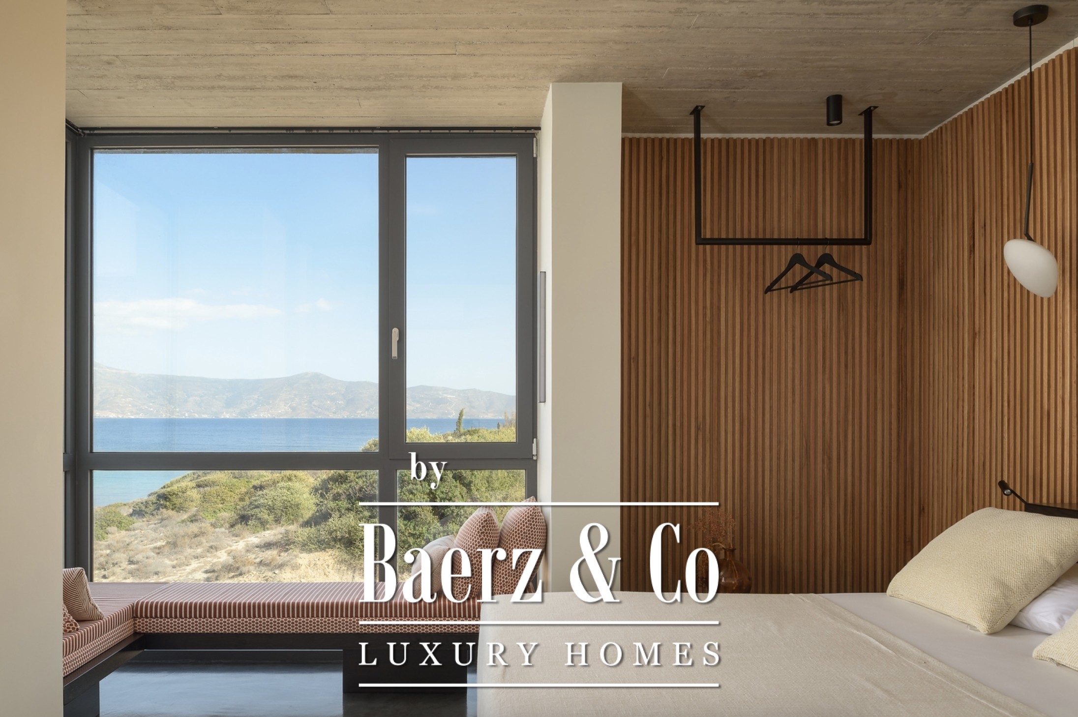 Terraces open onto the beach, yet maintain a sense of seclusion, granting unmediated access to the rhythms of the water. Every detail, from air conditioning throughout to smart televisions and espresso machines, supports a relaxed yet sophisticated lifestyle. The beachfront setting offers both sanctuary and immersion in Karystos’ natural beauty, with local vineyards, ancient sites, hiking trails, and windsurfing close by. This luxury villa for sale in Karystos is ideal as a private refuge, a holiday residence, or a considered investment—delivering Mediterranean living in its purest form.
