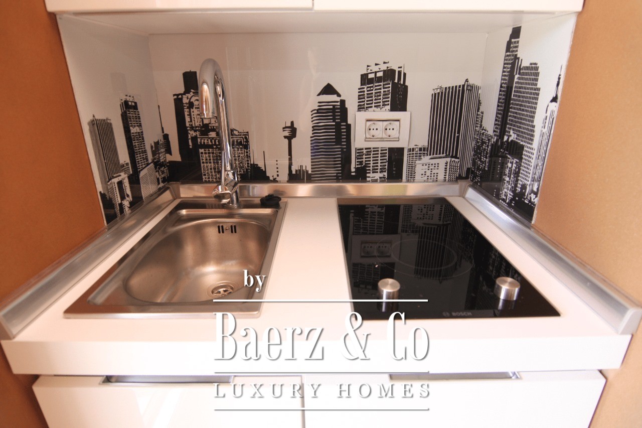 A modern kitchen with access to a 14.9 sq. m. terrace