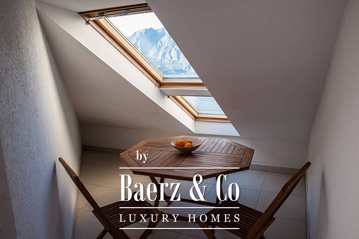 Structure of the apartment: a hallway, a living room with kitchen and dining table, a bedroom, a bathroom and a terrace. It also has a shared 100m2 terrace. The apartment has a panoramic view of the sea, Boka Bay and the mountains that surround it. It is fully furnished and ready to move in.