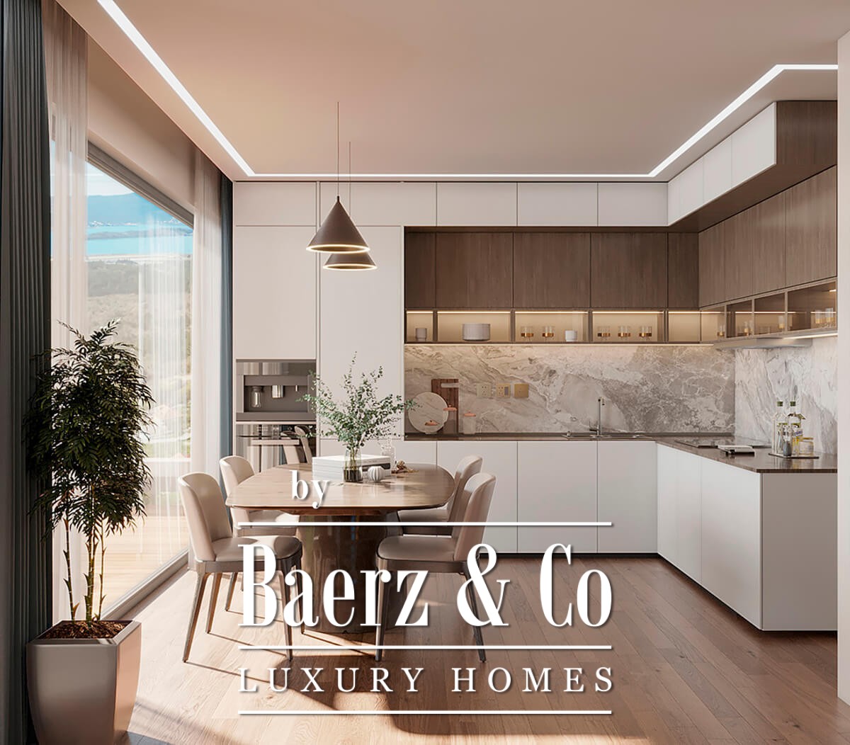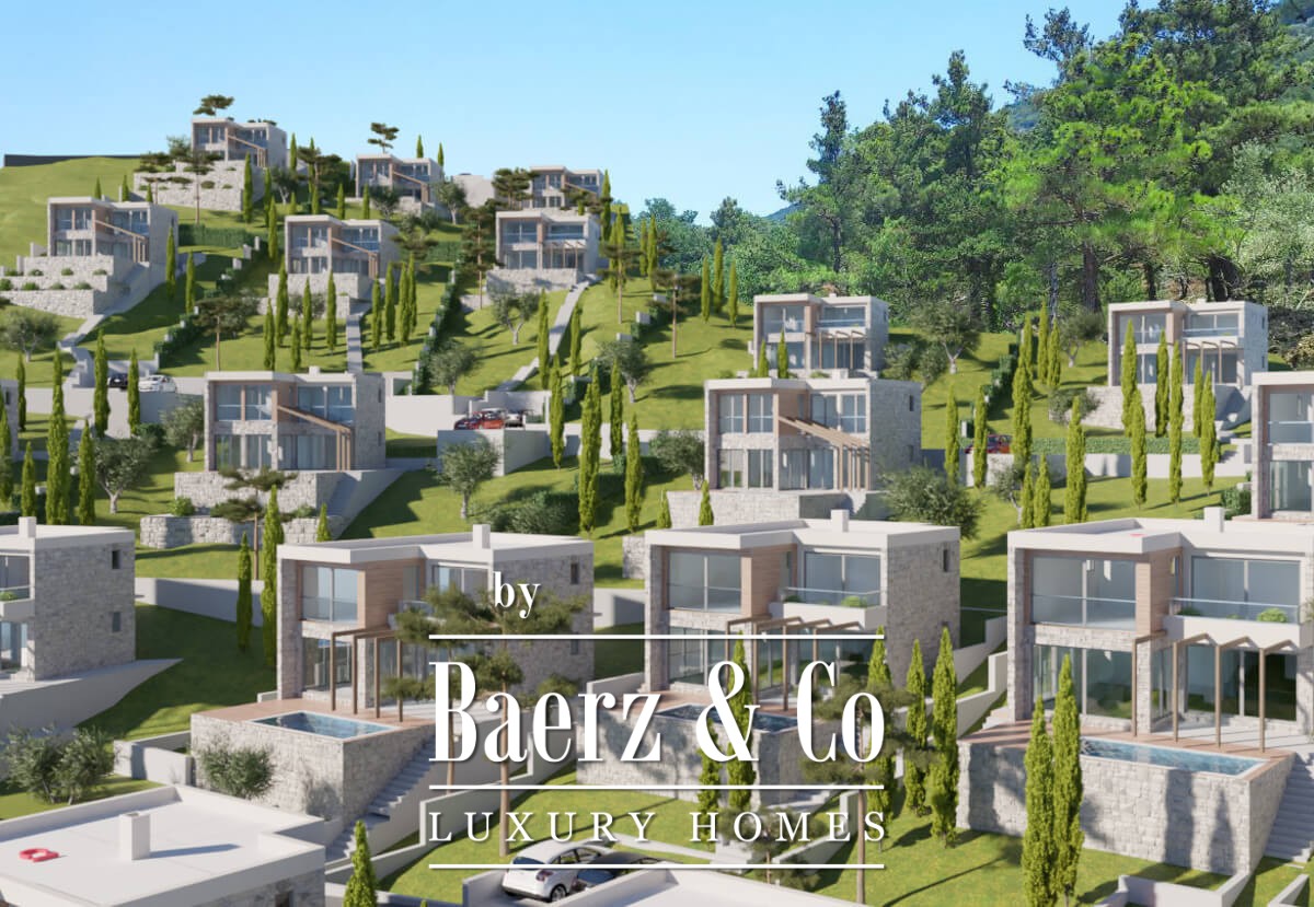 The villa is part of a development project located in a quiet neighborhood between Tivat and Kotor. This unique location in nature offers a spectacular view of the sea and Tivat Bay, while Tivat International Airport is 7 minutes away, the historic UNESCO-protected city of Kotor is 15 minutes away, and the super yacht marina Porto Montenegro is 6 minutes away.