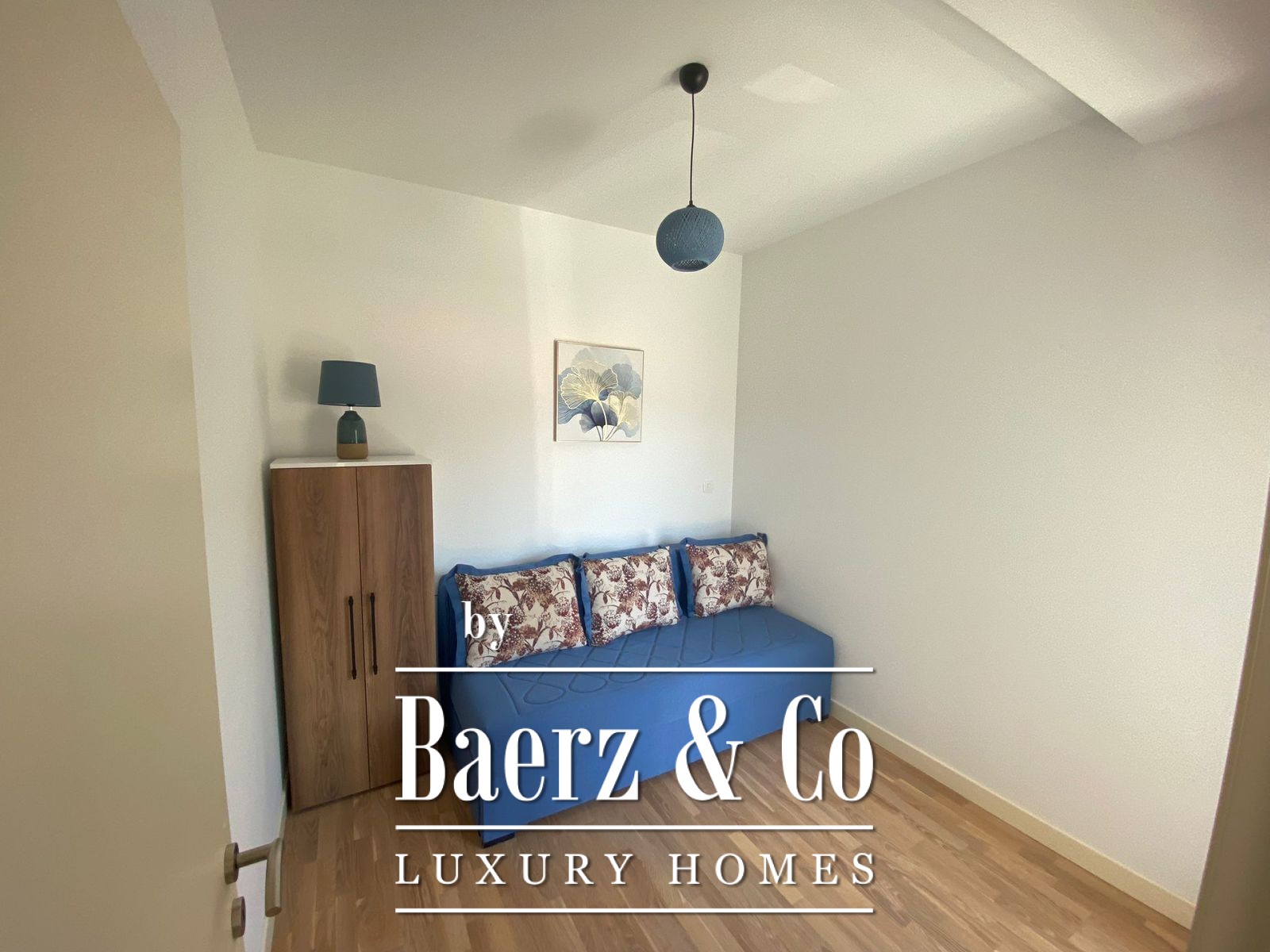 Structure of the apartment: hallway, living room with kitchen and dining table, 2 bedrooms, a bathroom, a toilet and a terrace. It has a view of the sea and the view of the mountains that surround it. The apartment is fully furnished and ready to move in.