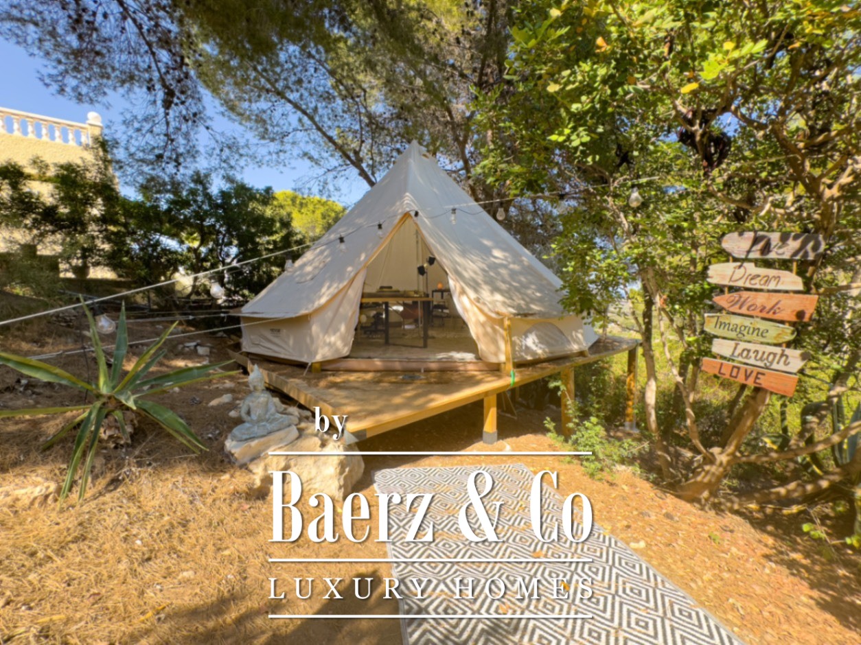 Villa La Nucía with panoramic sea and mountain views invites a measured appreciation of Mediterranean living. Set across 225 m² within a meticulously landscaped 1265 m² garden, this villa harmonizes privacy and spatial generosity, offering subtle luxury for those attuned to detail. The main residence presents a luminous living room and a fully equipped kitchen with uninterrupted vistas, alongside one bedroom with en-suite bathroom and a guest toilet. Designed for both comfort and function, the home’s flow opens seamlessly onto a generous terrace, where open and covered spaces invite morning light and tranquil evenings alike.
