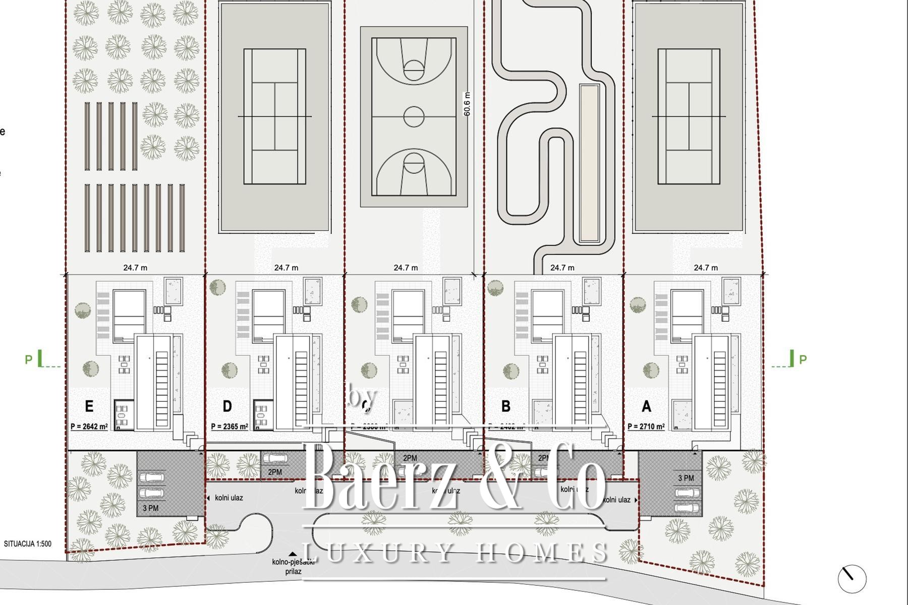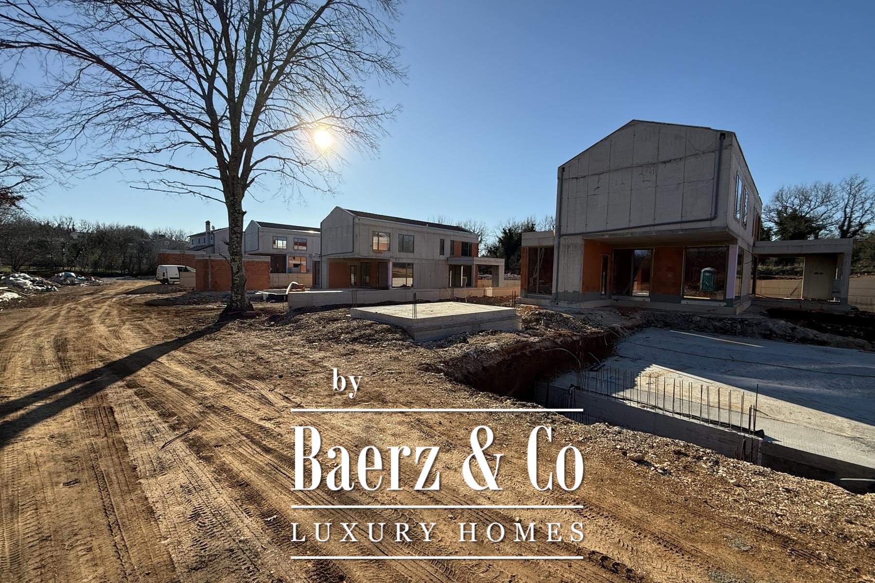 Four bedrooms, each with an en-suite bathroom, compose the upper floor. The master suite presents a private 17 m² roof terrace for moments of quiet repose. Outdoors, landscaped gardens stretch over 1,439 m², accommodating a future sports court or curated plantings according to the wishes of the new owner. Parking for three vehicles lies at the entrance, and systems such as underfloor heating, inverter climate control and solar readiness quietly support year-round comfort. This villa for sale in Labin exemplifies a harmonious merging of modern architecture and untouched Istrian landscape.