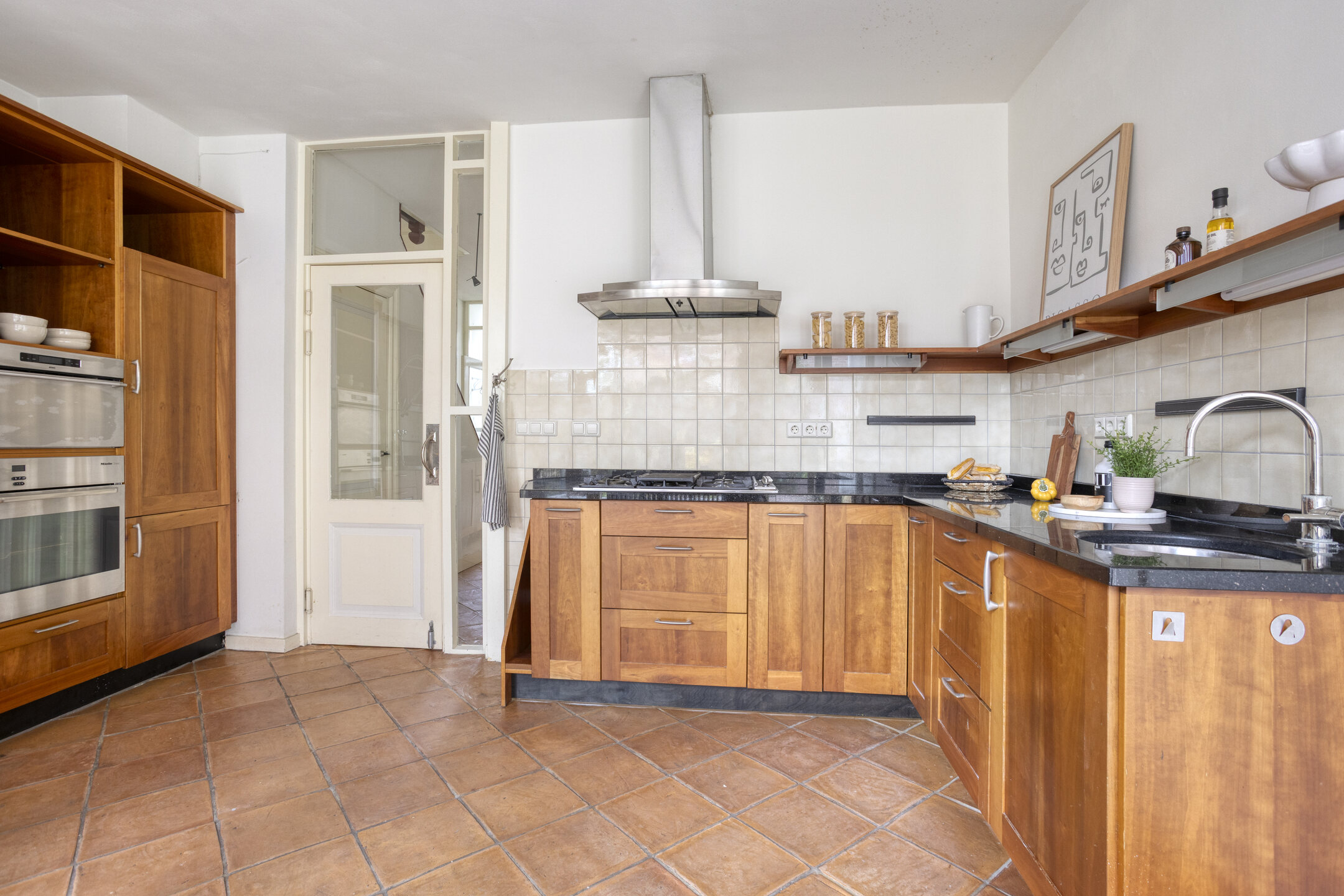 Kamer voorzijde met authentieke details en tuinkamer met openslaande deuren en binnendoor naar nr. 11. Keuken met inbouwapparatuur en badkamer met ligbad. wastafel en wc.