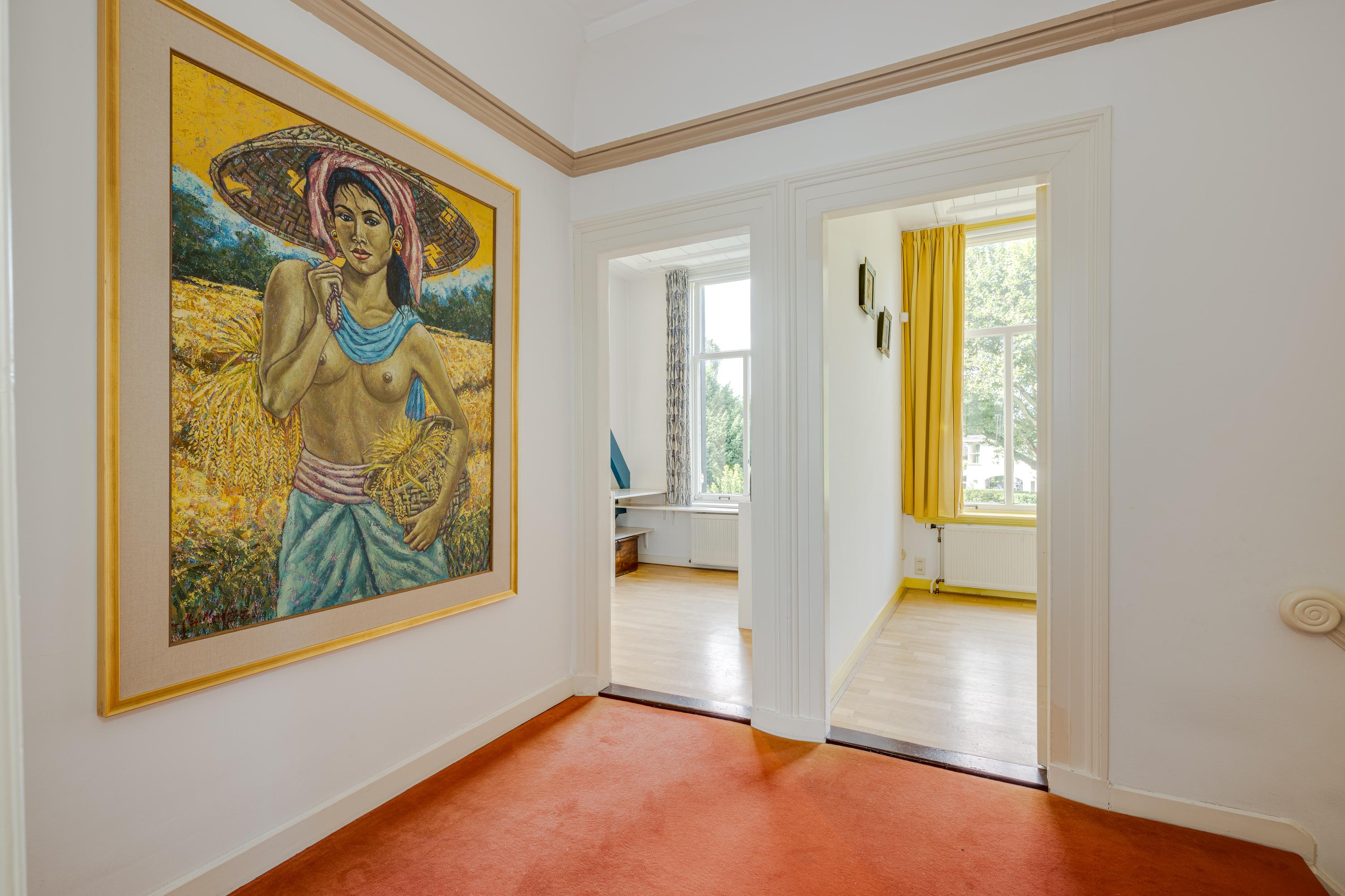 The 1995 gatehouse, designed symmetrically with glass façades and French doors, balances office and fitness space on the ground floor, with a luminous guest room above. Security, modern insulation, sustainable solar technologies, and linked alarm systems ensure discretion and peace of mind. Local amenities, shops, international schools, and the historic heart of Leiden are all within walking or cycling distance, while the A4’s swift connections link city, coast, and airport.