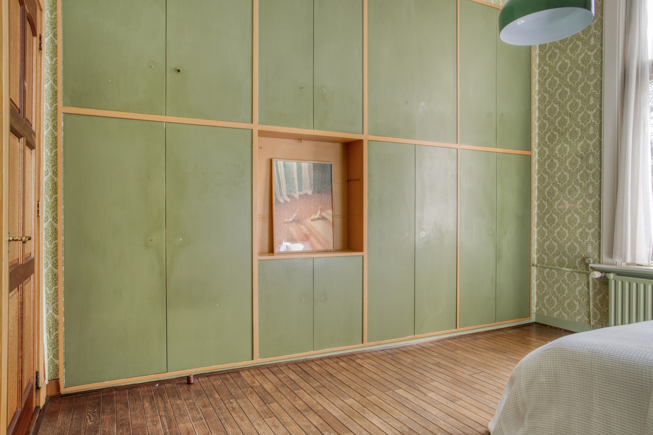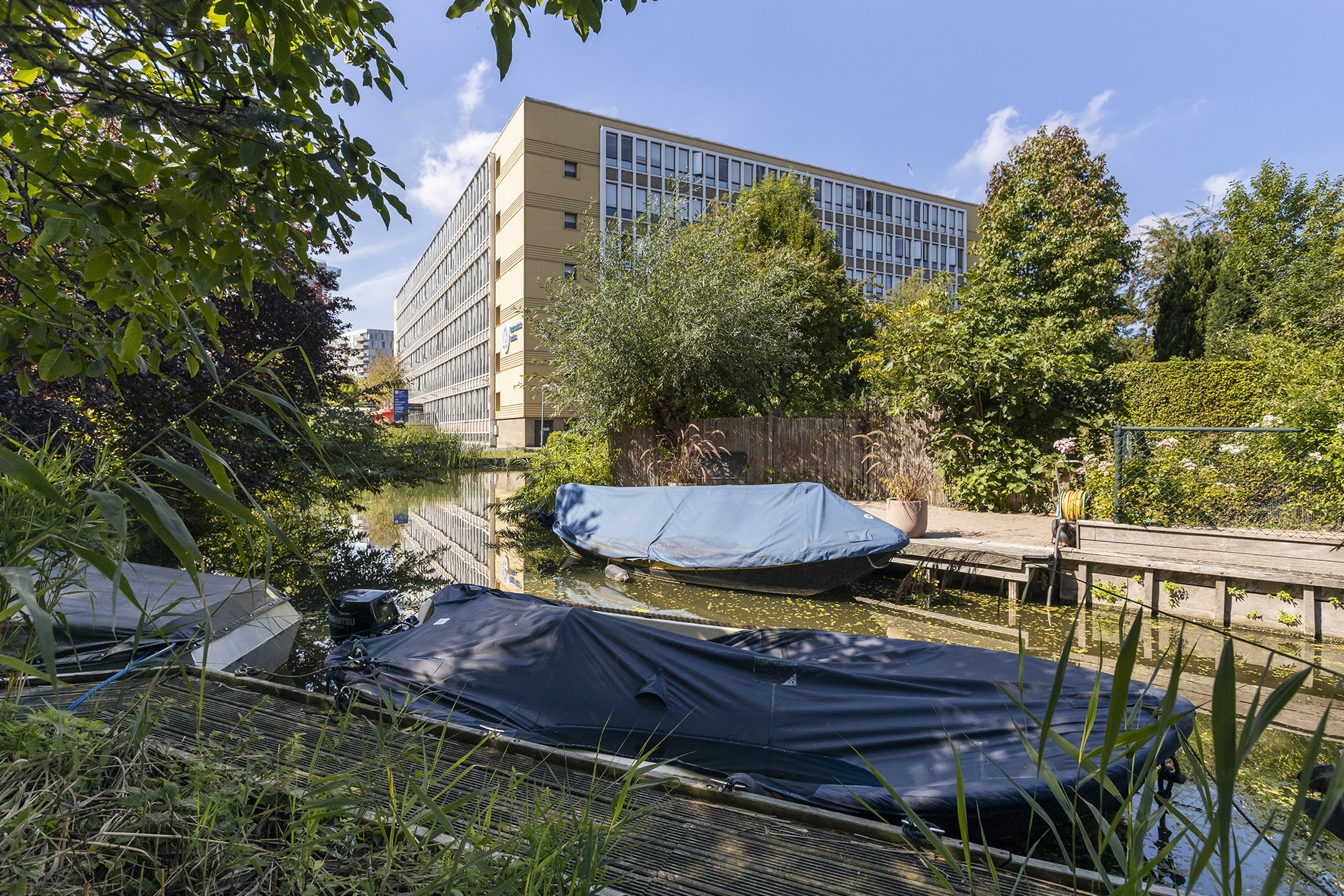 Outside, the deep rear garden faces south west, ensuring ample sunlight yet offering shaded views from mature trees. Beyond lies a private, 1,318 m² enclosed lot, shared among neighbors, with space for children’s play, gathering, and water access. Essential amenities, schools, transit, green parks, and urban offerings lie nearby. This townhouse, a registered municipal monument, carries period character, partial double glazing, central heating, and inclusion in a residents’ association.