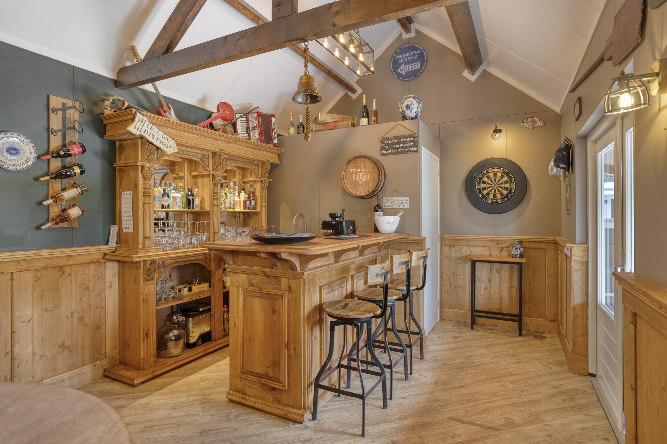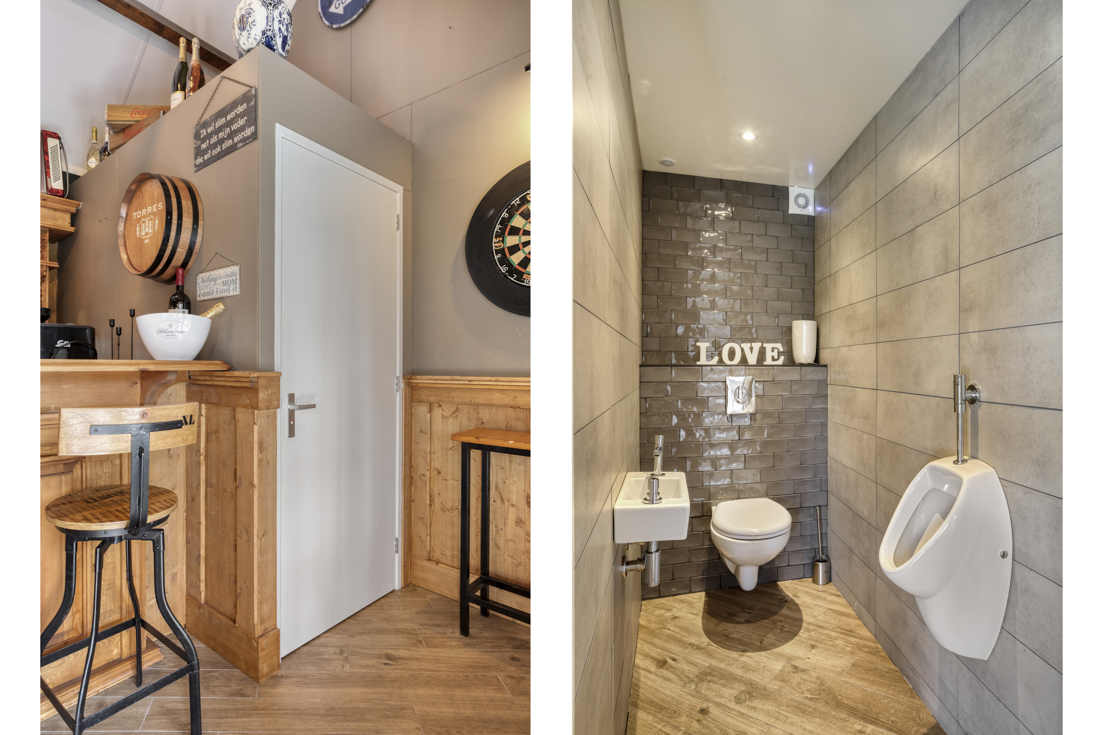 A bar area with bar, beverage cooling, and separate toilet