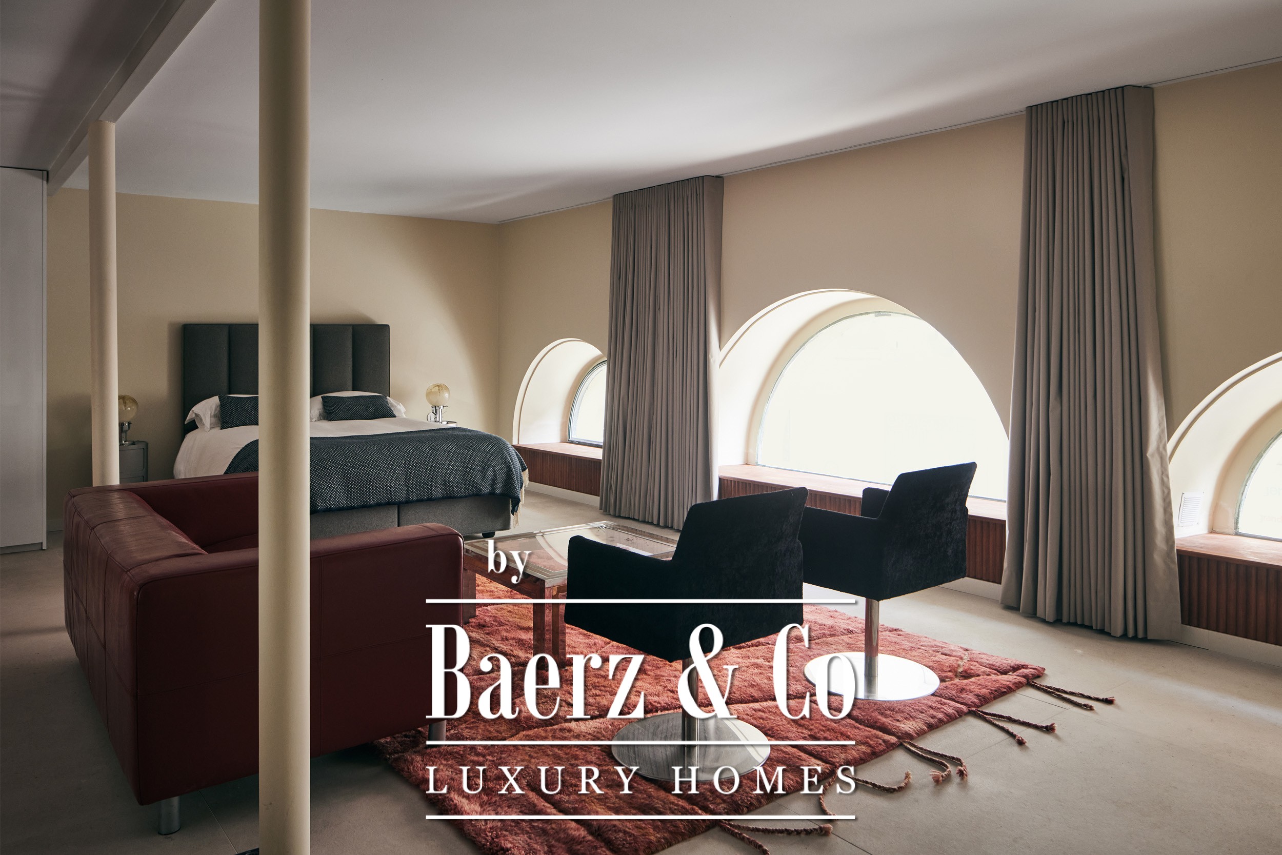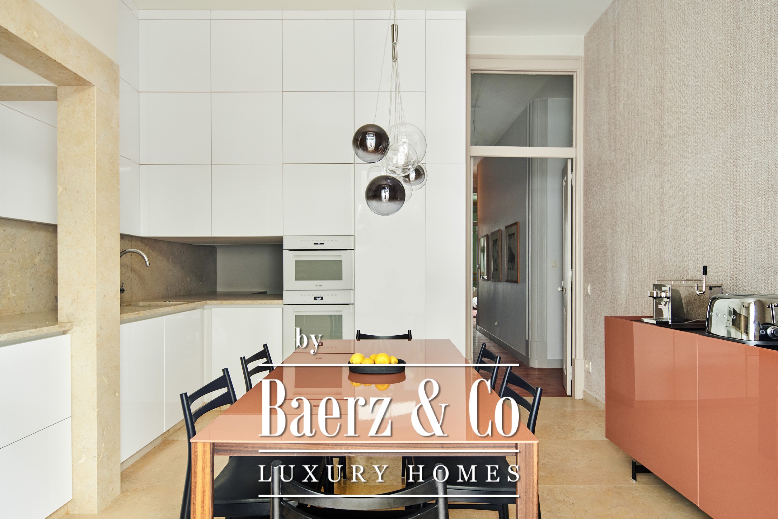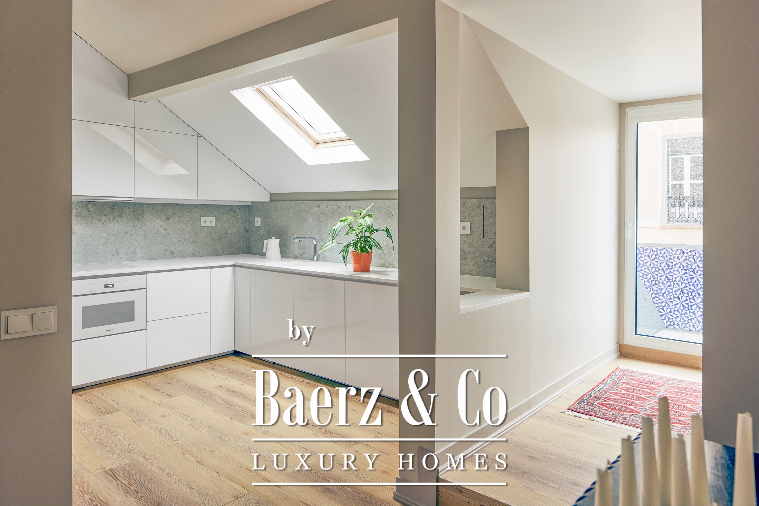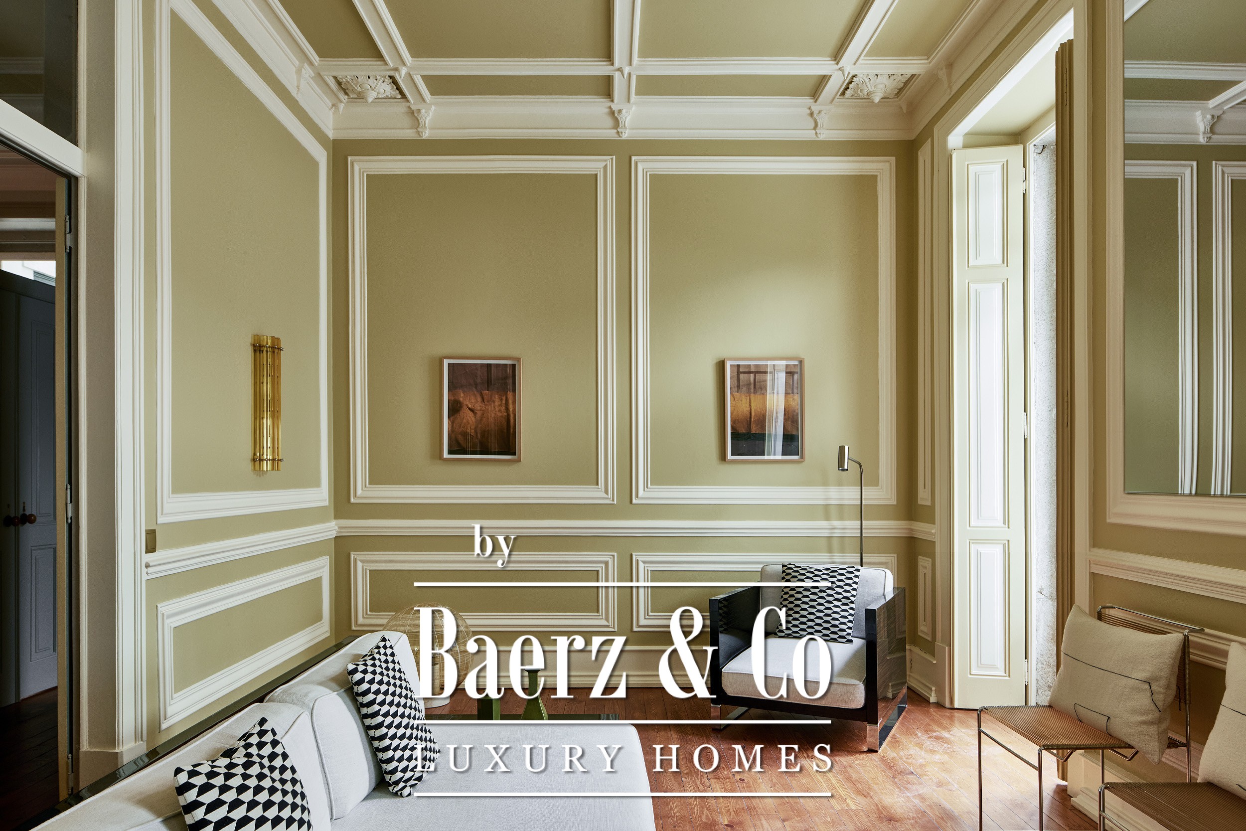 with pantry, dressing area, and two bathrooms. The second floor features two spacious bedrooms, three bathrooms, a secondary kitchen, and a large living/dining area with five direct accesses to the terrace.The exterior reveals a 115 m² private Mediterranean-style garden with olive trees, cypresses, lavender, and rosemary, creating a peaceful and inviting atmosphere. A heated jet pool and an outdoor dining terrace complete the leisure experience.Climate control is provided by discreet heating and cooling systems. Parking options are available nearby. The sale includes all curated furnishings, offering a move-in-ready home with sophistication and character.A unique property where classical architecture meets contemporary lifestyle in one of Lisbon's most dynamic and authentic neighborhoods.