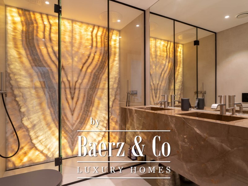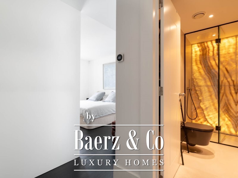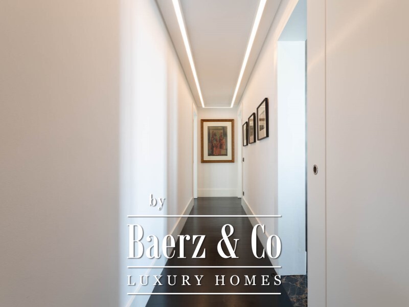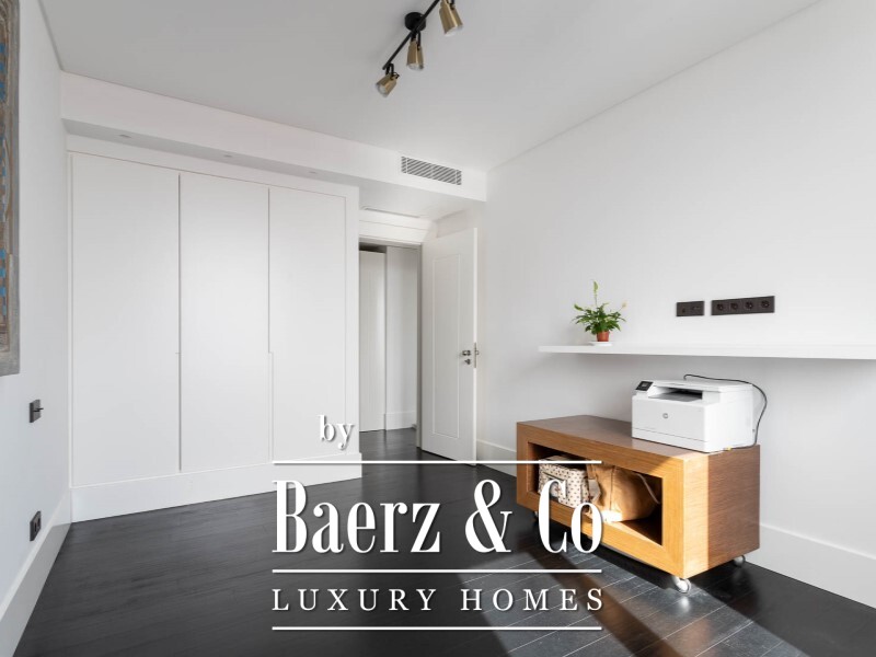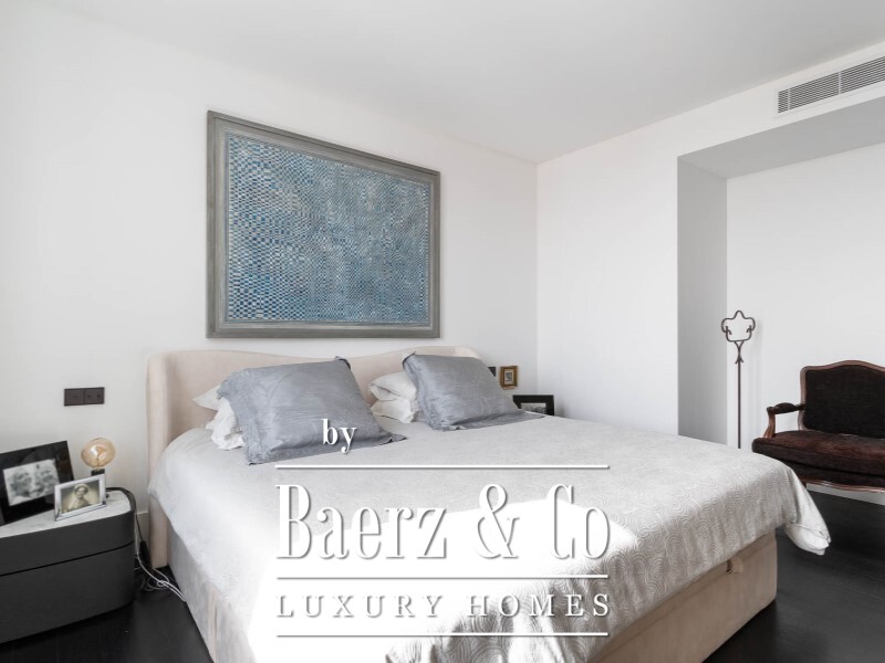 Inside the apartment, the floor of the social areas and bedrooms is solid wood painted in black. All bathrooms have marble stone finishes and underfloor heating. All rooms also have integrated air conditioning and wardrobes.