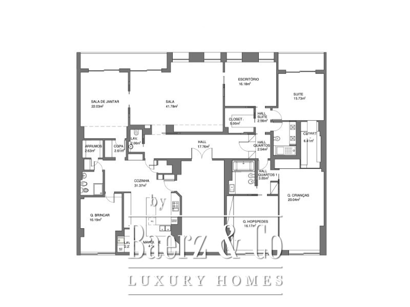 Apartment Lisboa Amoreiras anchors a discreet sense of urban privilege in one of Lisbon’s most esteemed neighbourhoods. Set within 301 m² of fully renovated living space, this four bedroom apartment is designed for families or the internationally mobile, harmonising open views and rare natural light with a balanced, pragmatic layout. The generous entrance hall, measuring 17.8 m², establishes a composed arrival, unfolding into a 41.8 m² living room and a dedicated 22 m² dining room. A modern kitchen of 31.4 m², with adjacent pantry and dining area, invites a daily rhythm of gatherings and quiet moments alike. Up to four bedrooms include a refined master suite with dual walk-in closets and a private bath, as well as a dedicated office and a staff room with an en-suite bathroom to support every personal requirement.