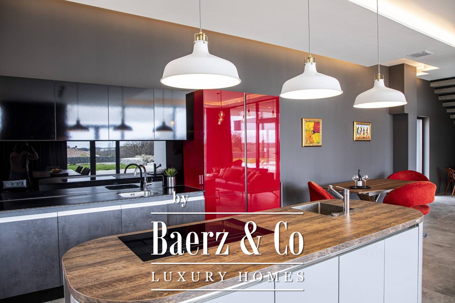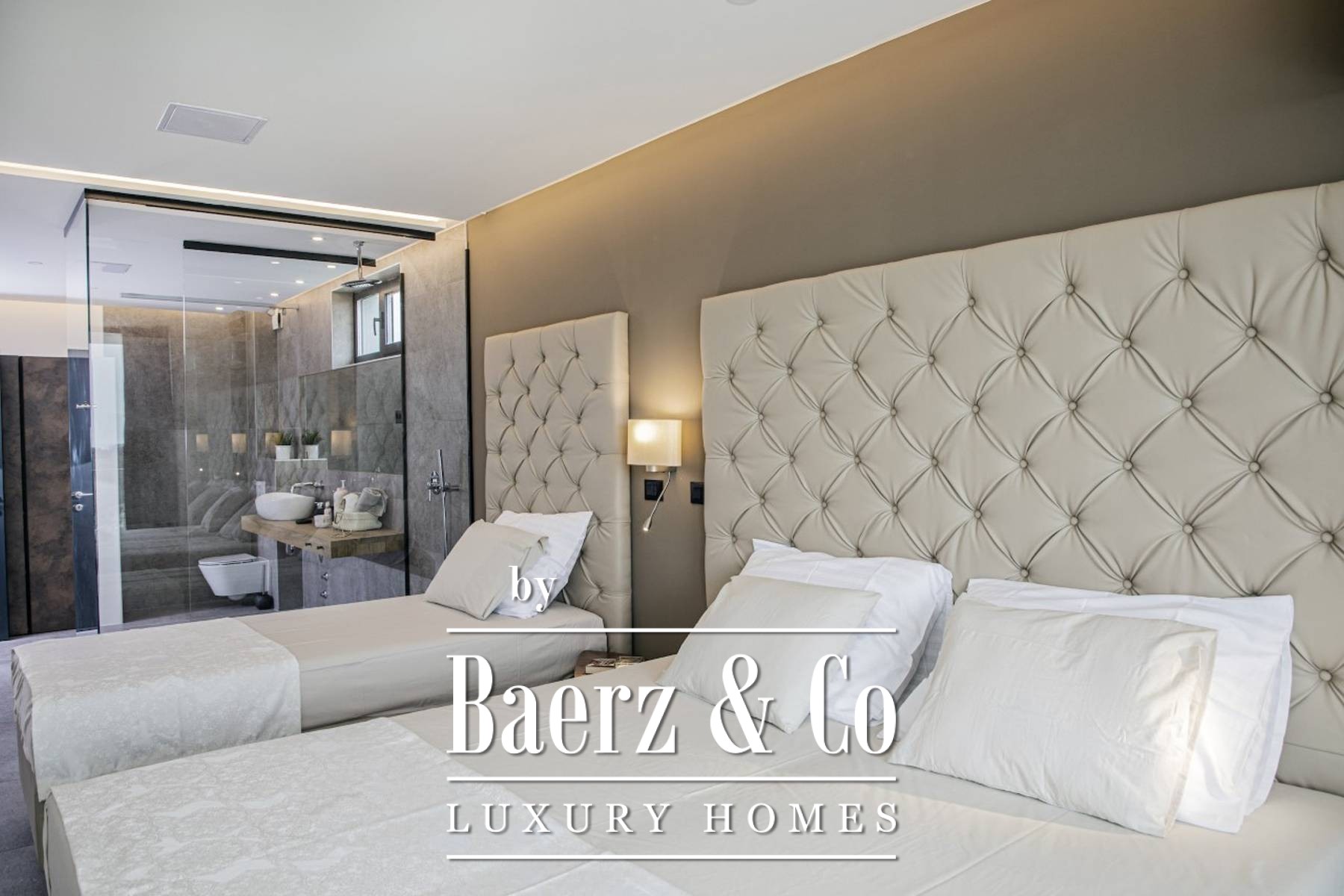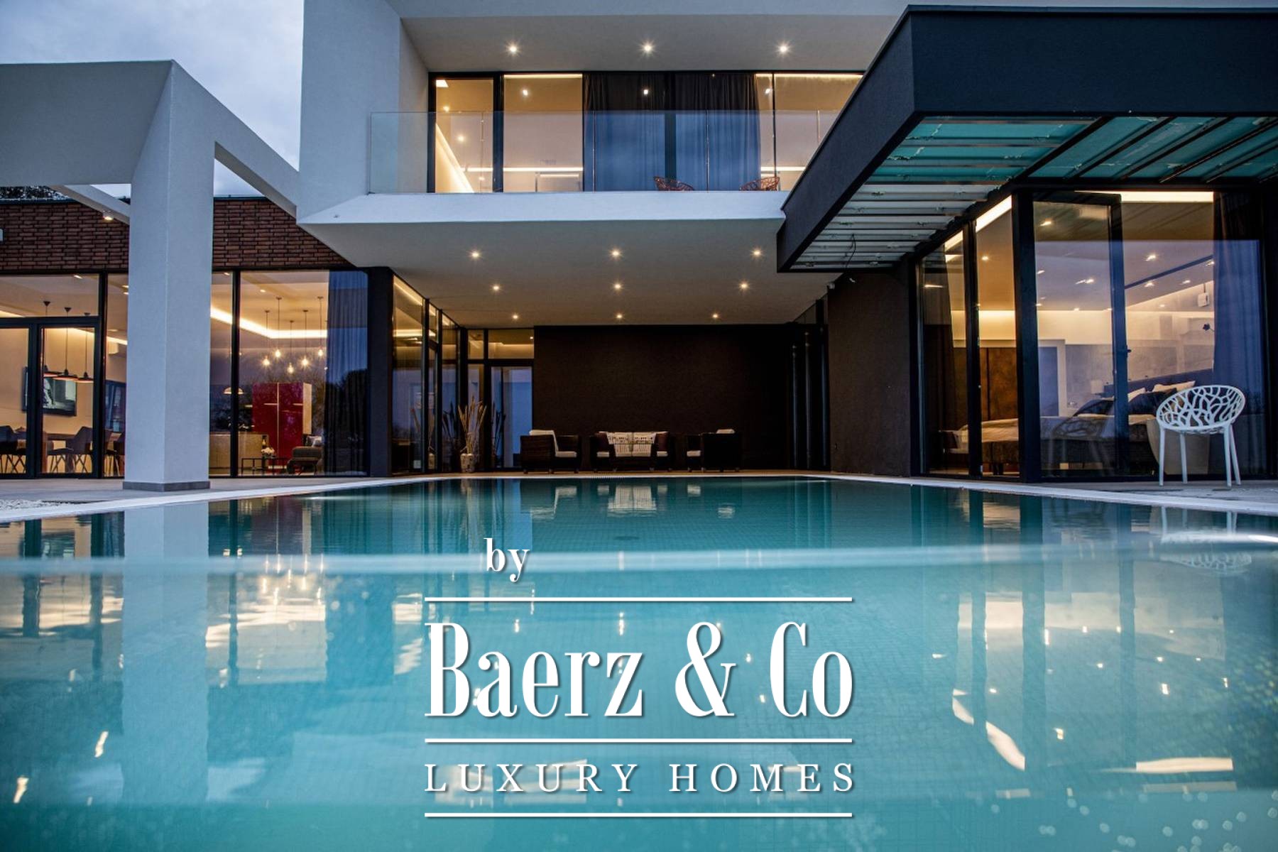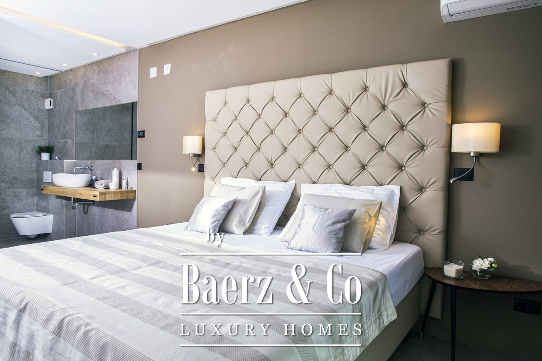 In the southernmost part of Istria, only 460 m from the sea, a luxury villa with a swimming pool is for sale. High quality new construction. Only top quality materials used. Built according to the latest trends in construction. This exclusive villa is divided into two floors - ground floor and first floor. There are almost no partition walls on the ground floor (except for the bedroom). From the open space of the living room with kitchen, the view of the pool extends through glass walls 3.40 m high, double-glazed and with gas. The interior is without walls, so the house seems to be floating in the air. The first floor is reached by stairs that come out of the wall and they also seem to float in the air. There are 8 bars with reinforcement in each step. Upstairs are 3 bedrooms each with a private bathroom with walk-in shower enclosures with Optishower glass walls (do not retain scale for easier cleaning). Each room has glass walls through which they have a sea view. The roof is flat, with 20-28 cm XPS insulation. It can be walked on. It has Hoffmann foil + gravel. The foundations are a 55 cm slab with reinforcement.