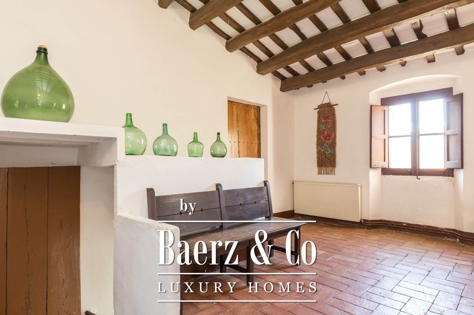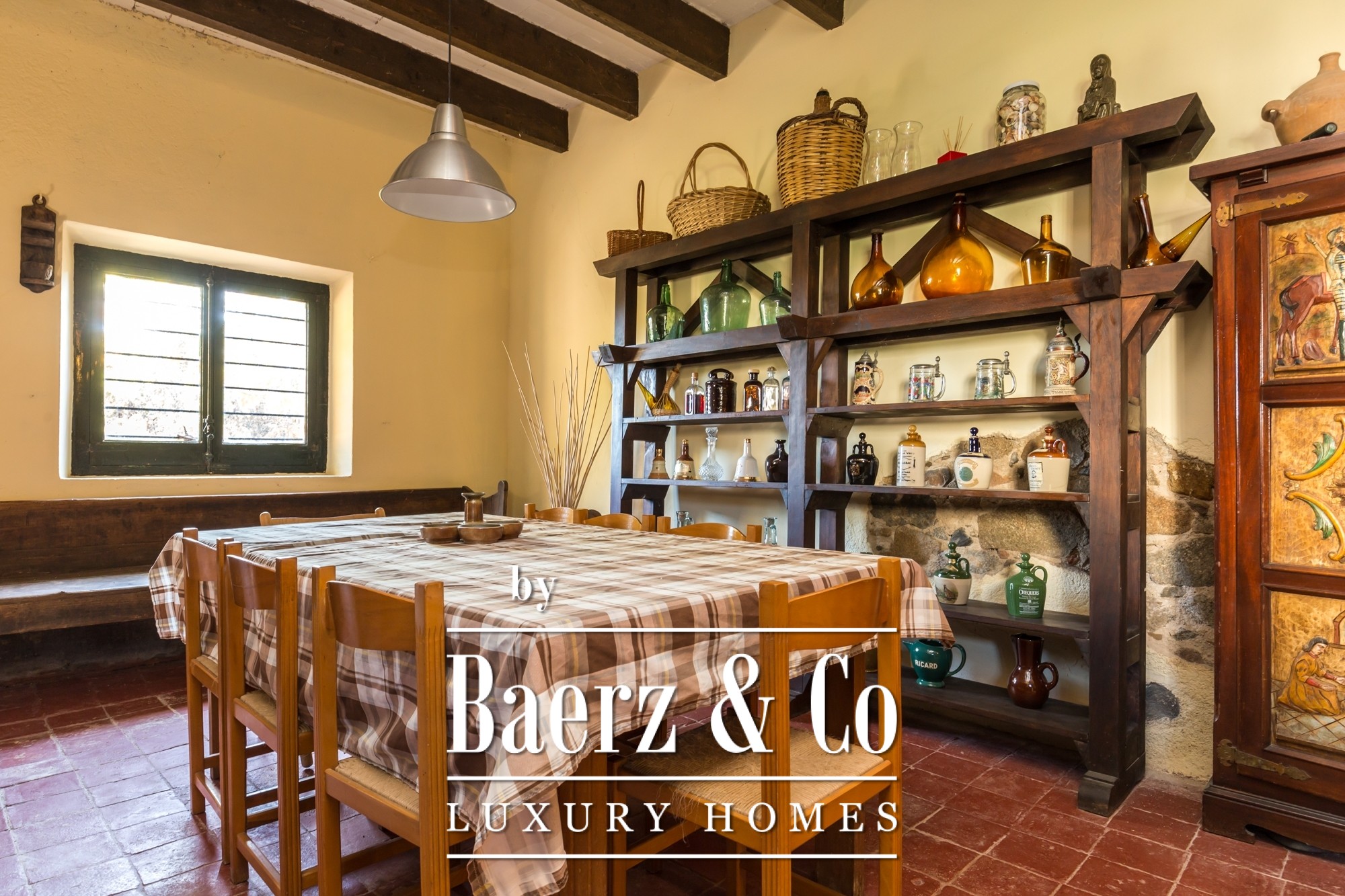 The pool is situated in an elevated location, creating a tranquil retreat within the estate’s natural rhythm. An elegant driveway approaches the property, where a garage enhances convenience. Opportunity exists for bespoke refinement within spaces ready for renovation, suited both for residential use or as an exclusive retreat. This farmhouse for sale in Llagostera is poised between history and possibility, in the heart of inland Costa Brava.