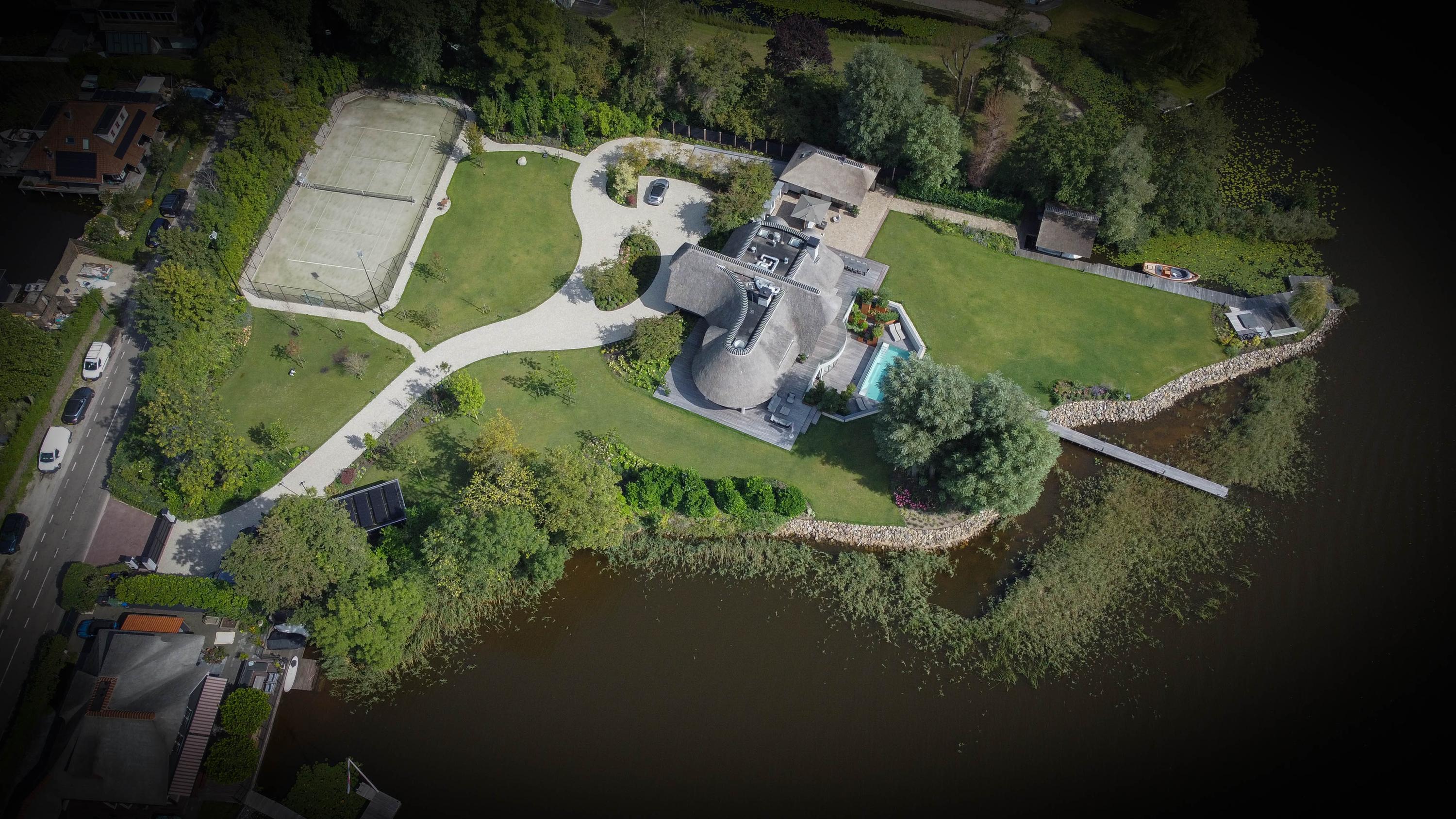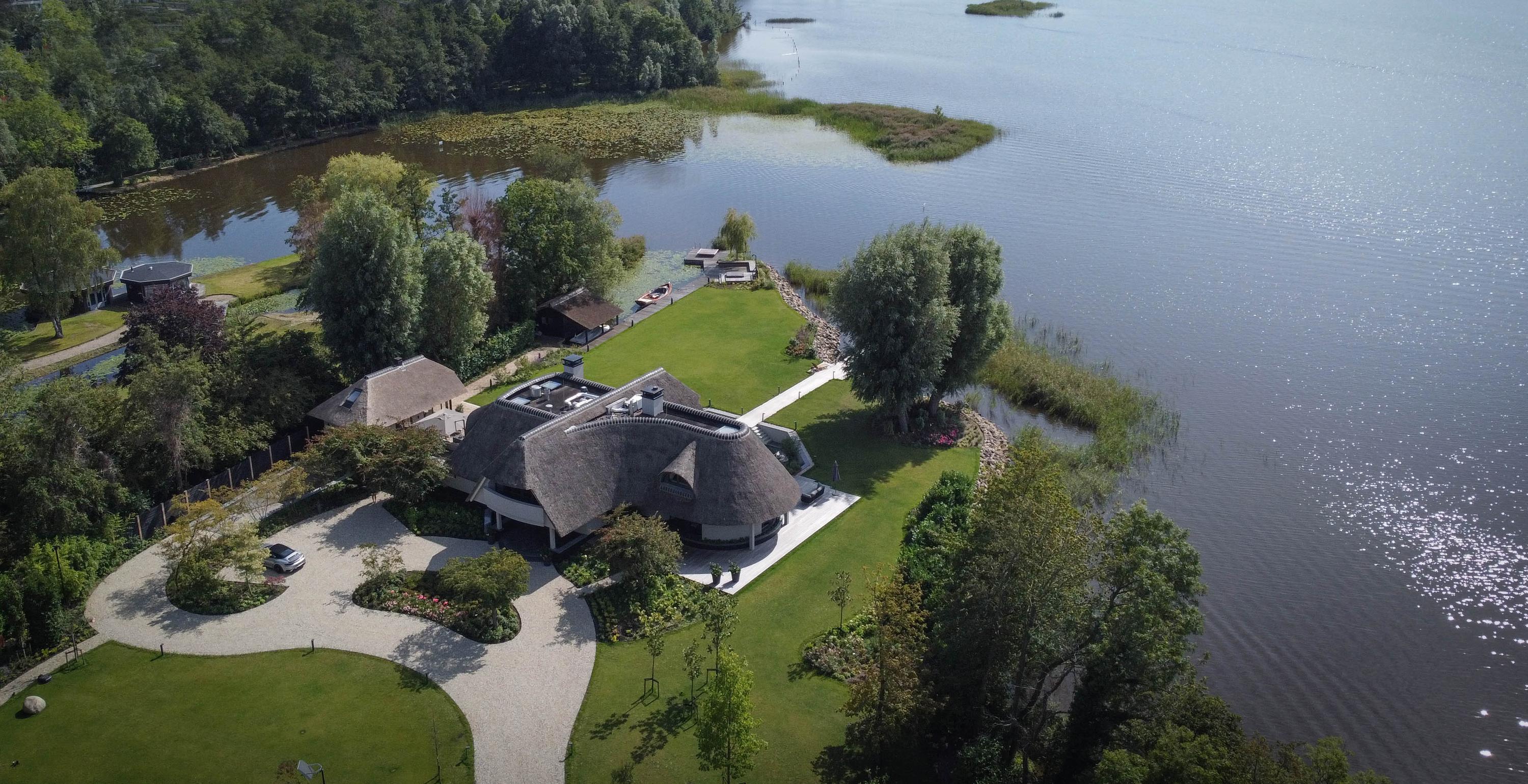 Villa Loosdrecht is a masterful expression of architectural artistry, offering a rare convergence of privacy, scale, and setting in the heart of the Dutch lake district. This villa, set on 42,261 m² with its own water and two private islands, defines a singular presence on the edge of Stille Plas. With a living area of 1,144 m², the property integrates indoor and outdoor pools, a spa, and a host of tailored amenities to frame a lifestyle of subtle opulence.