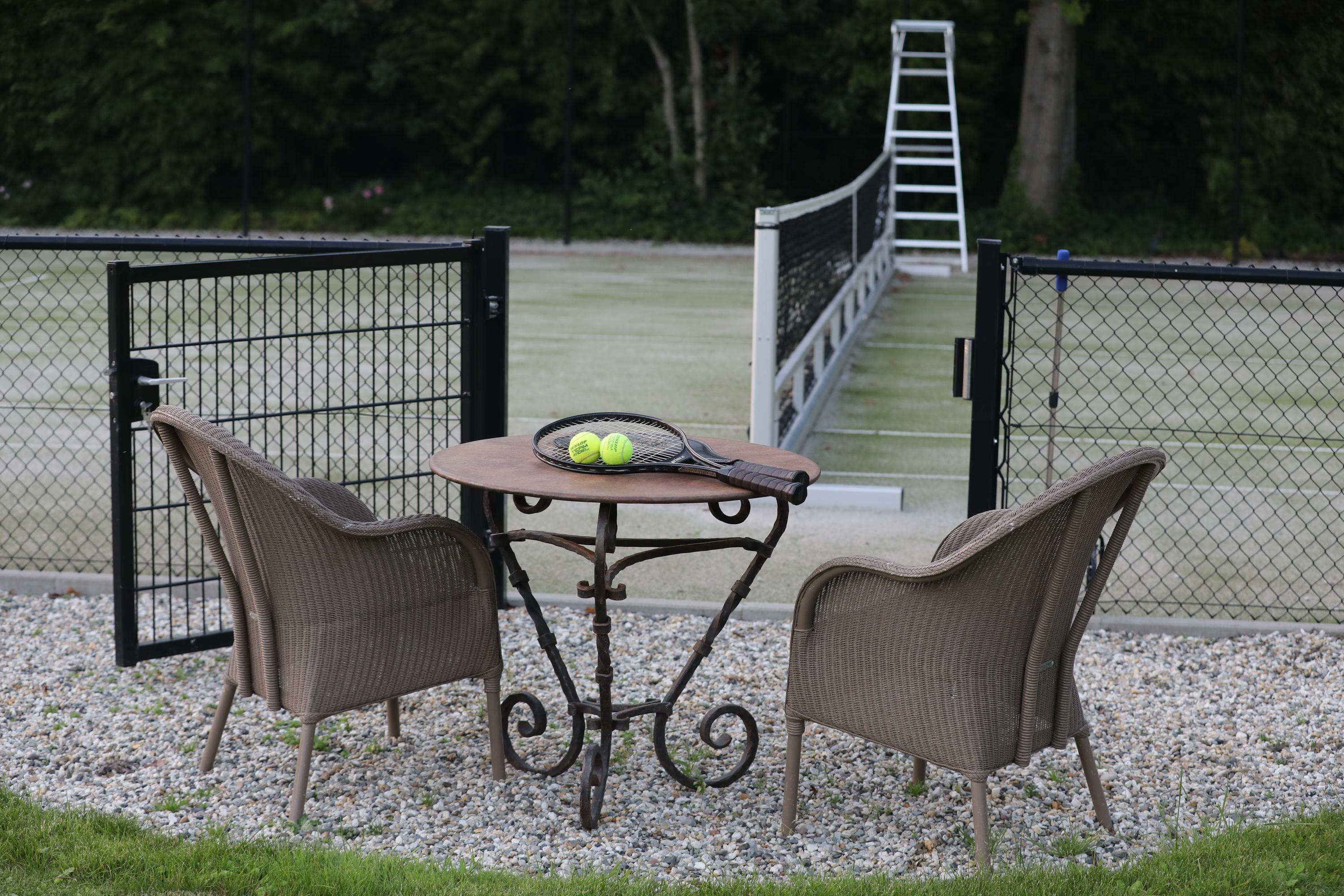 A separate guesthouse offers a complete kitchen, living area, air-conditioned bedroom, bath, and sleeping loft with water views—a private enclave for visitors or extended family. Each moment, whether at the panoramic jetty, the illuminated tennis court, or along one of the wooded trails, is composed for quiet enjoyment.