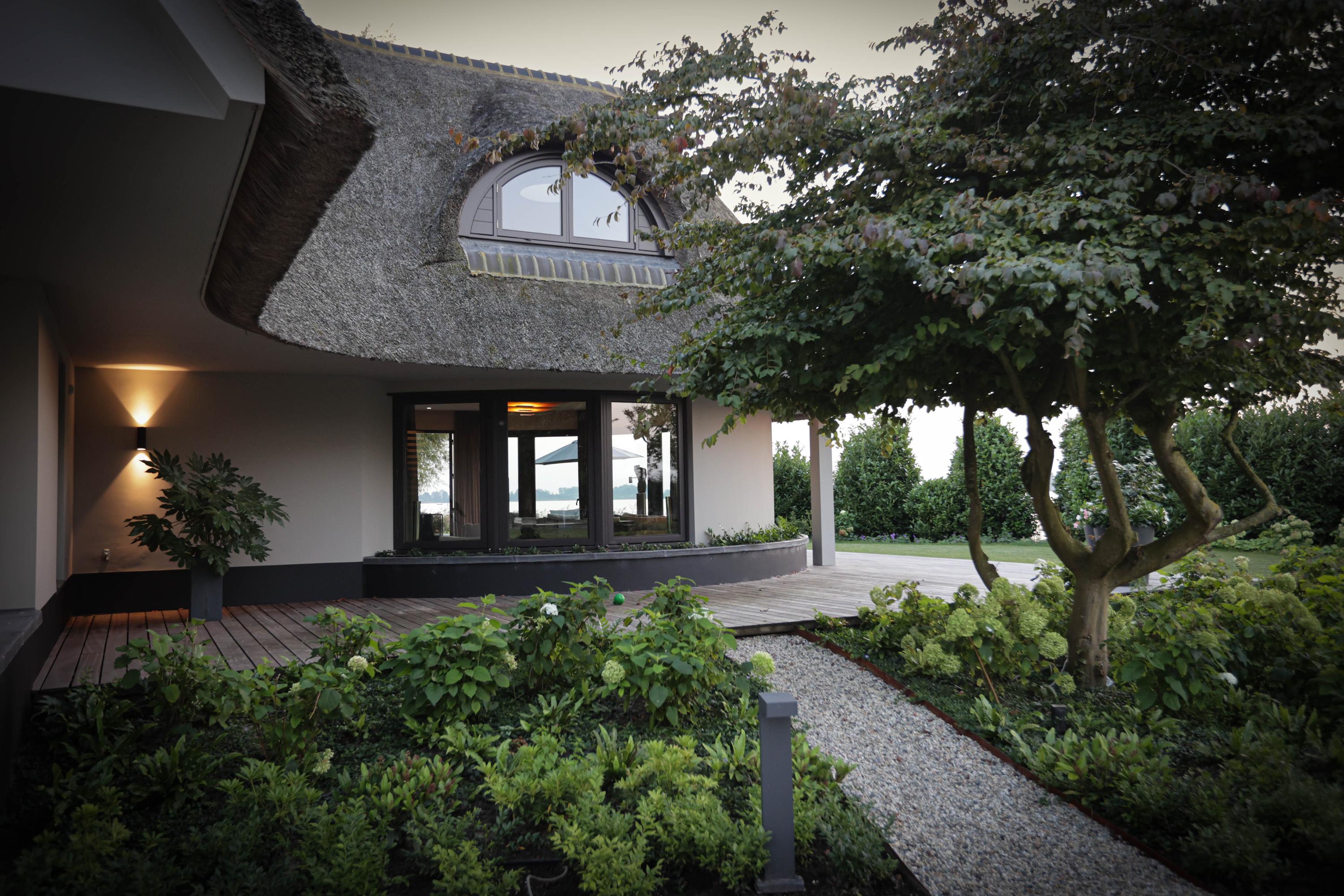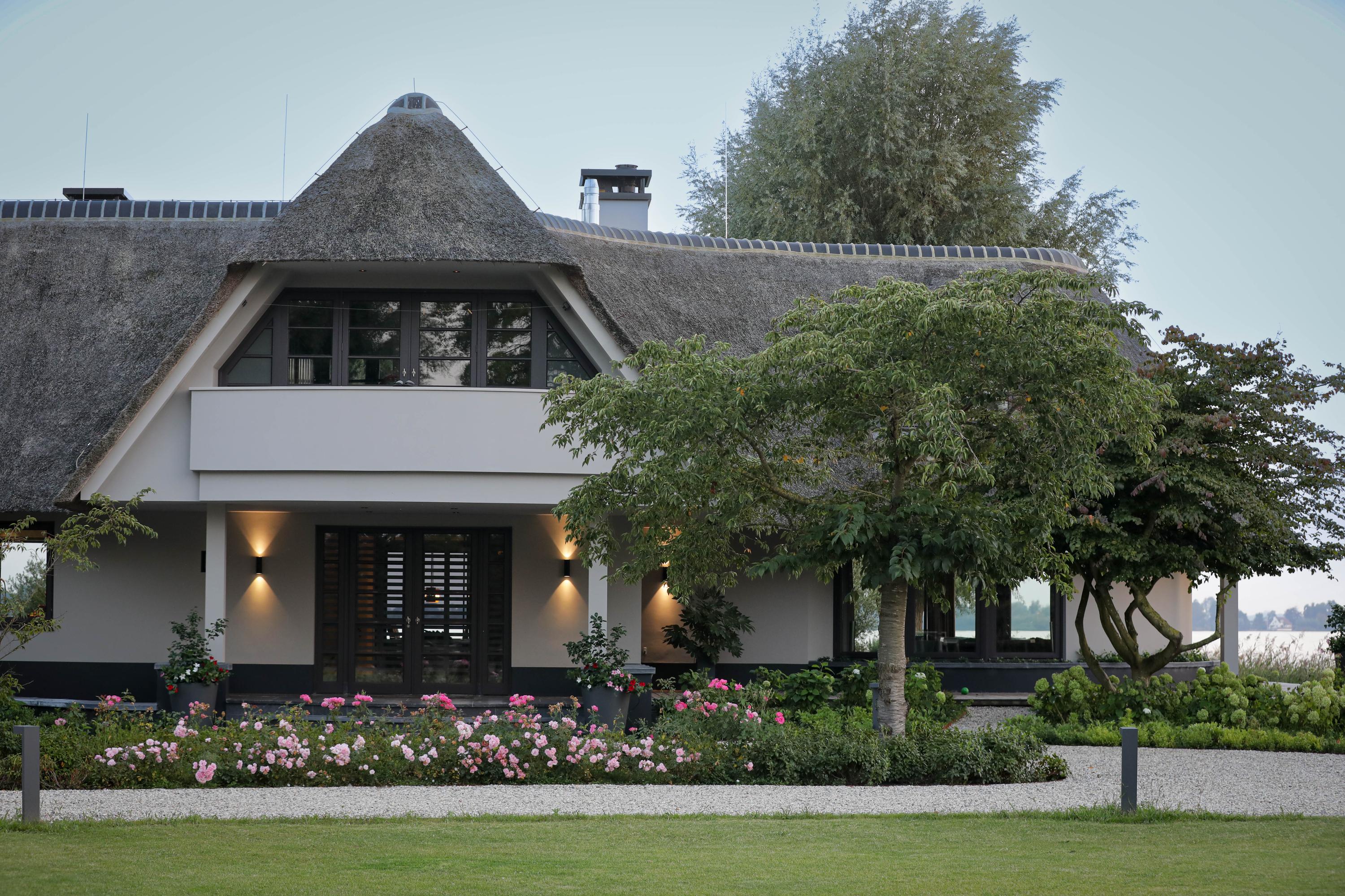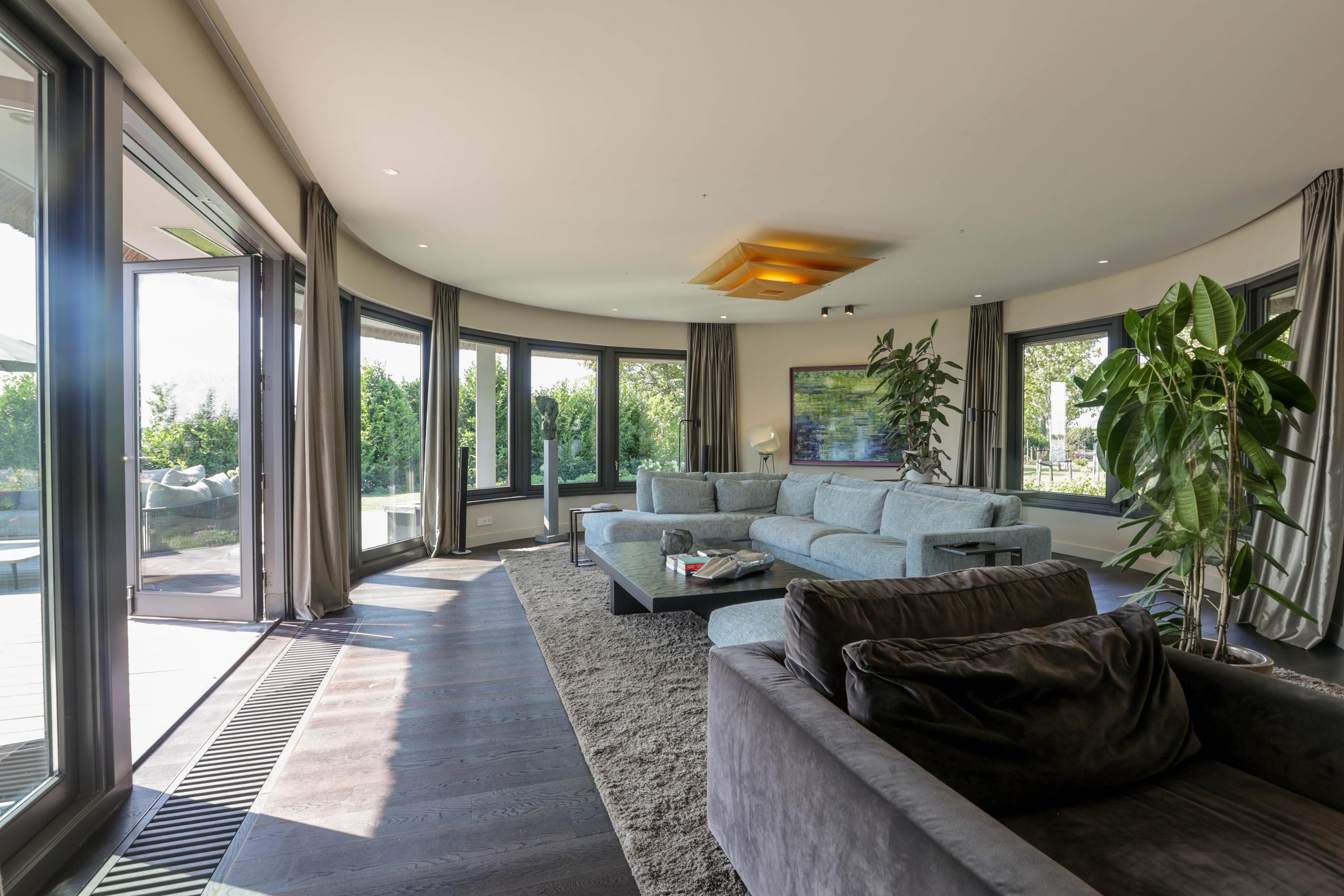 The villa's southern exposure ensures every principal room receives natural light and tranquil lake vistas. Four bedrooms and four bathrooms are laid out across the first floor, with the primary suite capturing expansive views of the Stille Plas nature reserve. Dual custom dressing rooms and hotel-quality baths reflect uncompromising attention to materials and detail.