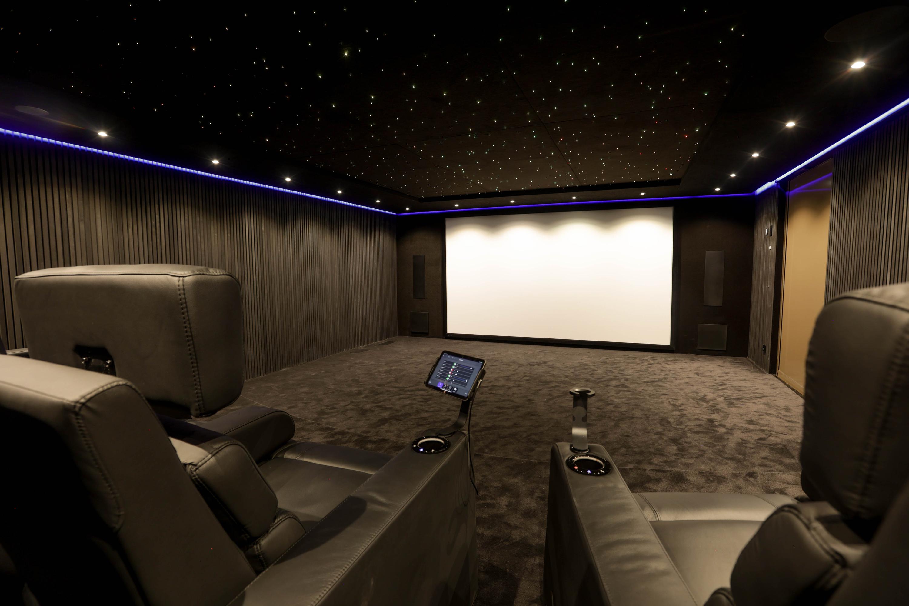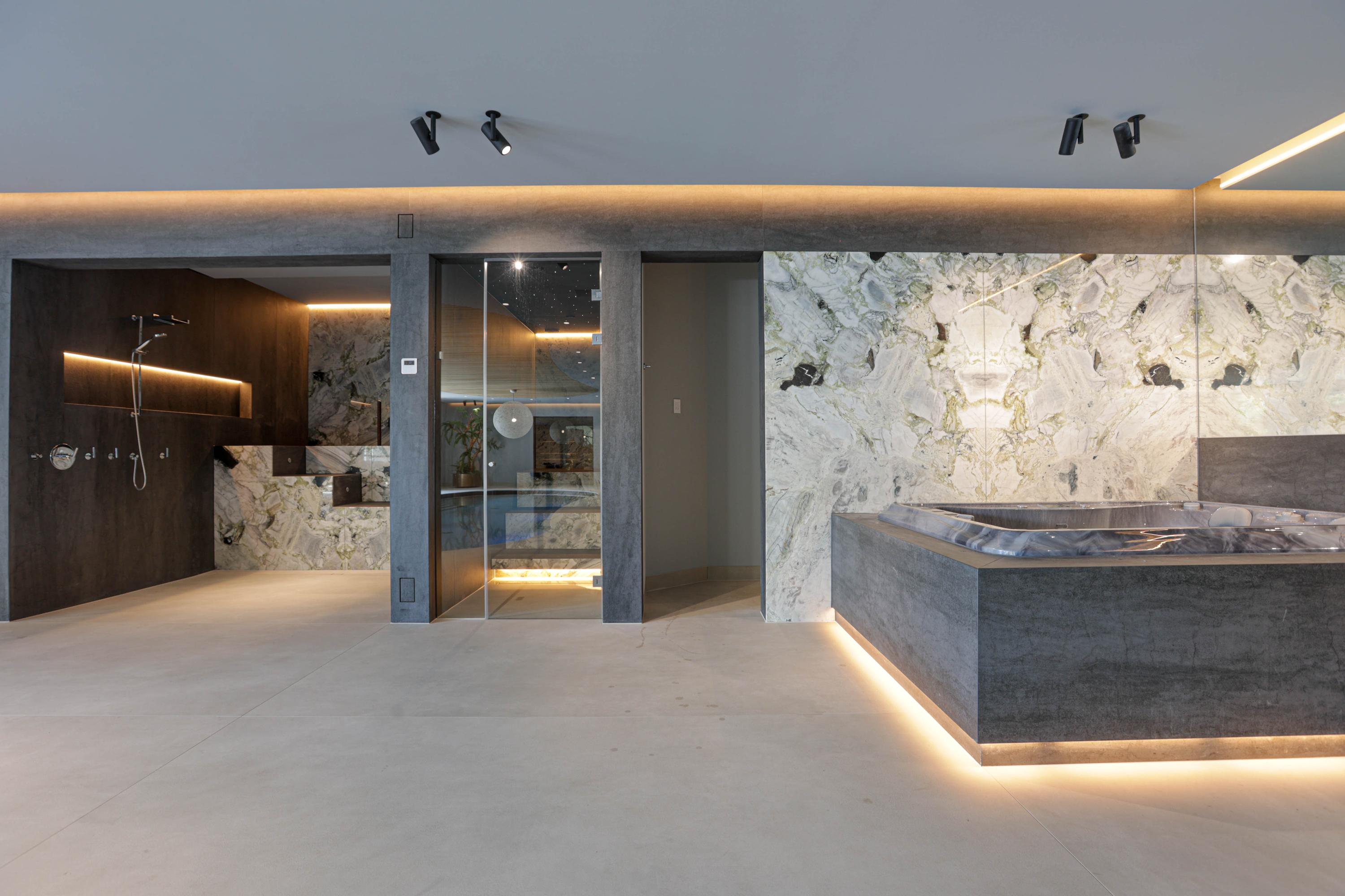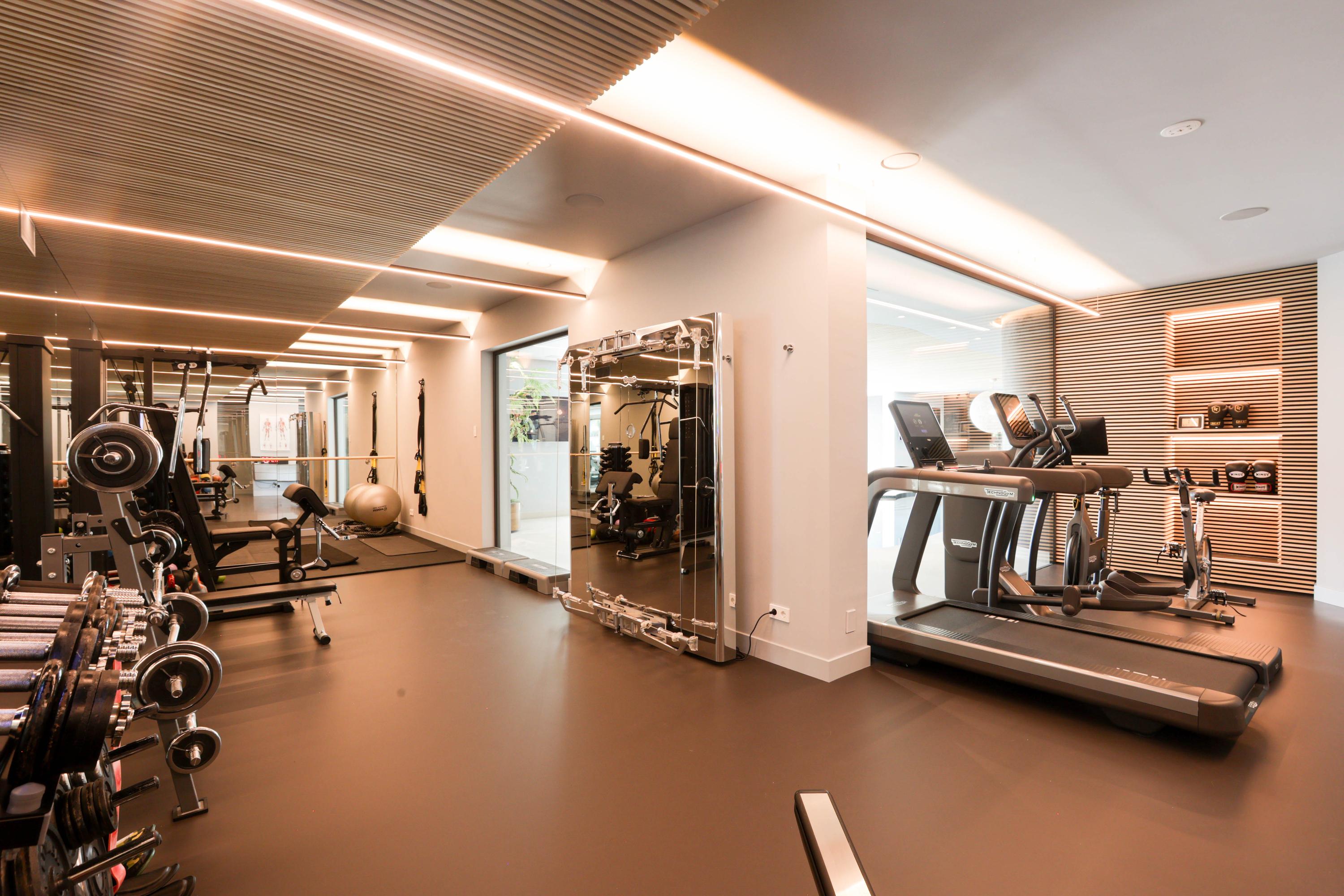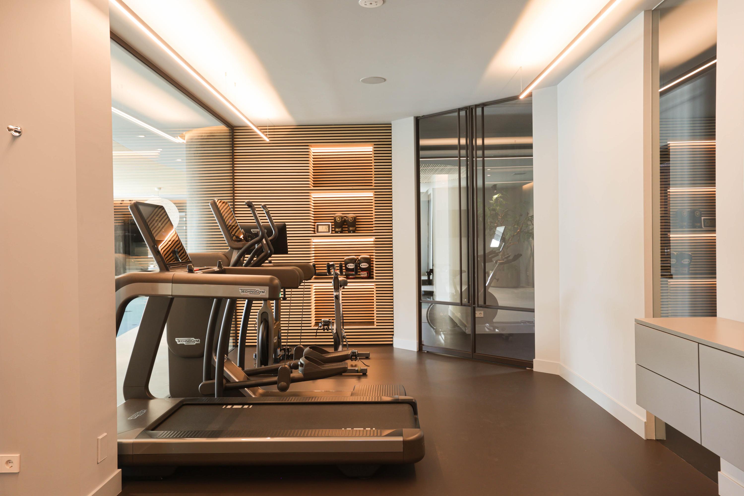 Wellness is integrated at every turn, from the indoor spa with sauna, cryotherapy, hammam, Jacuzzi, and fitness room to the infinity-edge outdoor pool framed for privacy. Entertaining is effortless, with a cinema, wine cellar, and generous bar lounge forming the social heart below. A high-spec garage—equipped for several vehicles, a car lift, and pampered with its own dog shower—caters to collectors and enthusiasts alike.