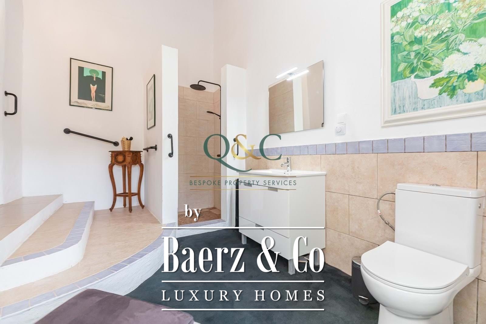 Original details such as stone walls, wooden and bamboo beam ceilings, and a traditional fireplace ground the home in local character. Air conditioning in the entrance and lounge area, along with duo-therm natural stone radiators, ensures year-round comfort.