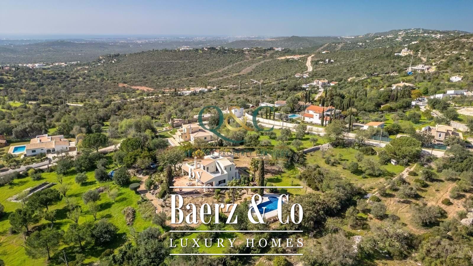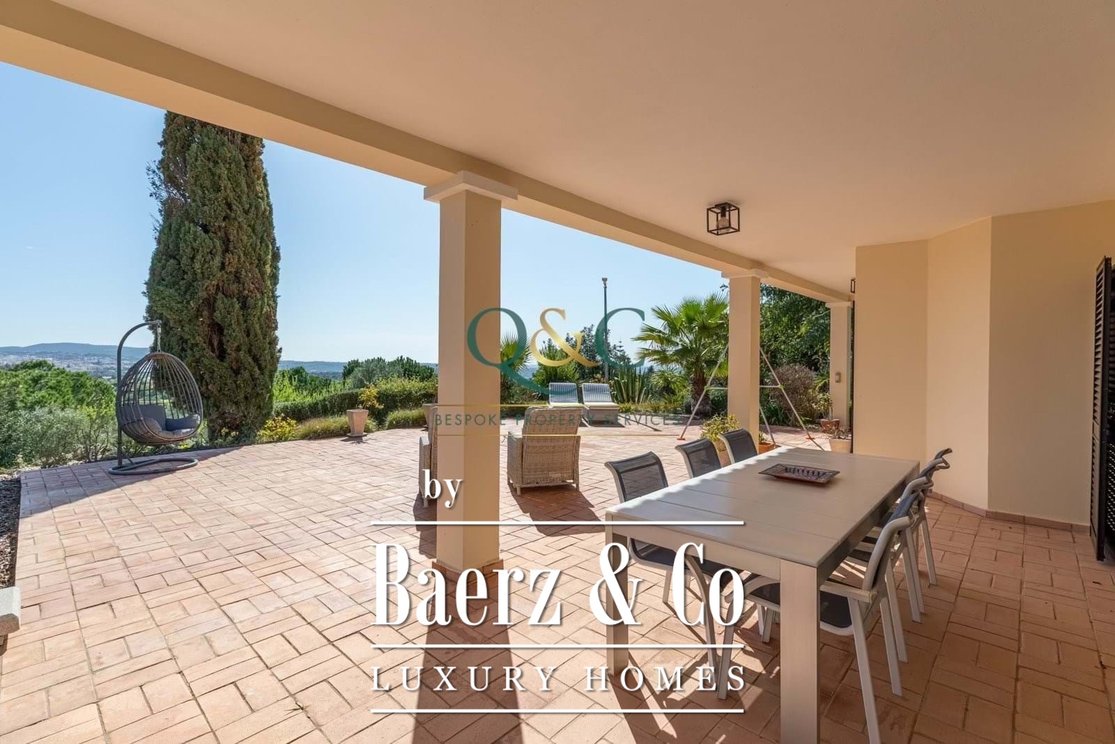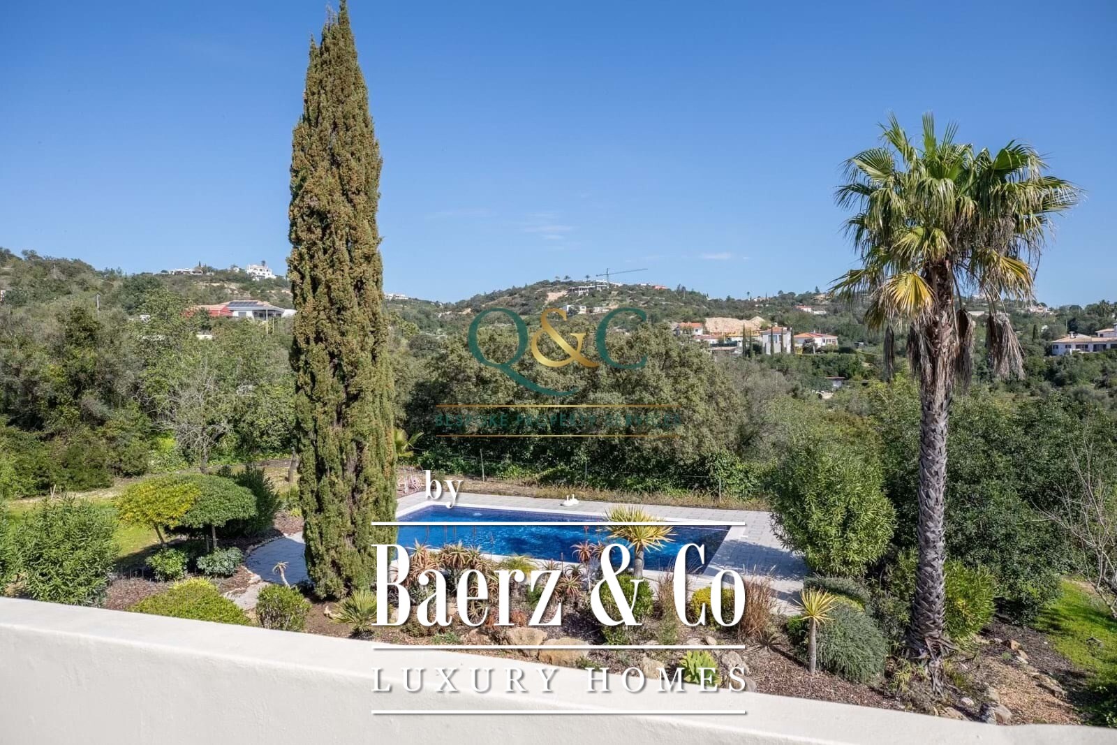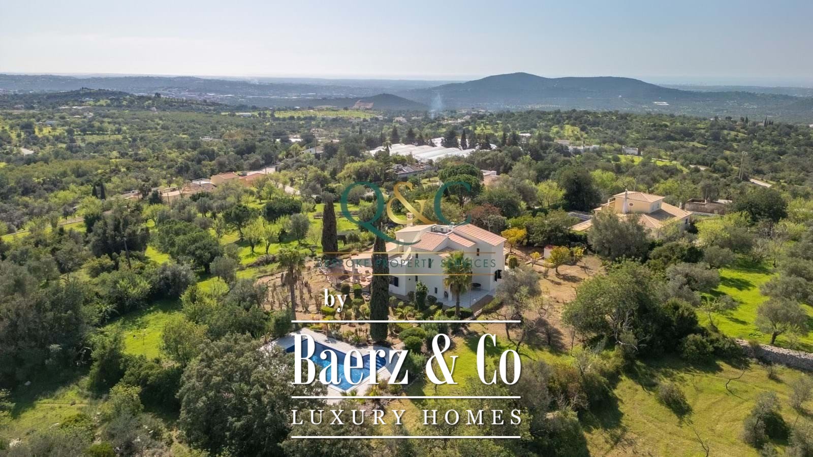 Villa Loulé presents a rare sense of calm just five minutes from the vibrant market town of Loule, with captivating sea and countryside views. This villa rests on a 6,720 m² plot, embraced by established gardens and a distinct rhythm of space and light. The 440 m² residence welcomes you with an open plan living and dining area, anchored by a fireplace and direct access to a broad terrace. The kitchen is well-proportioned and equipped for daily living. On the main floor, the master ensuite offers a generous walk-in dressing room, complemented by a family bathroom.