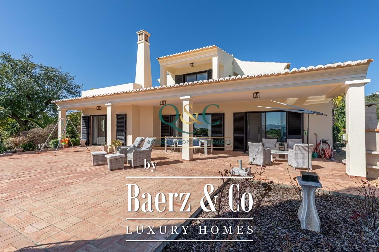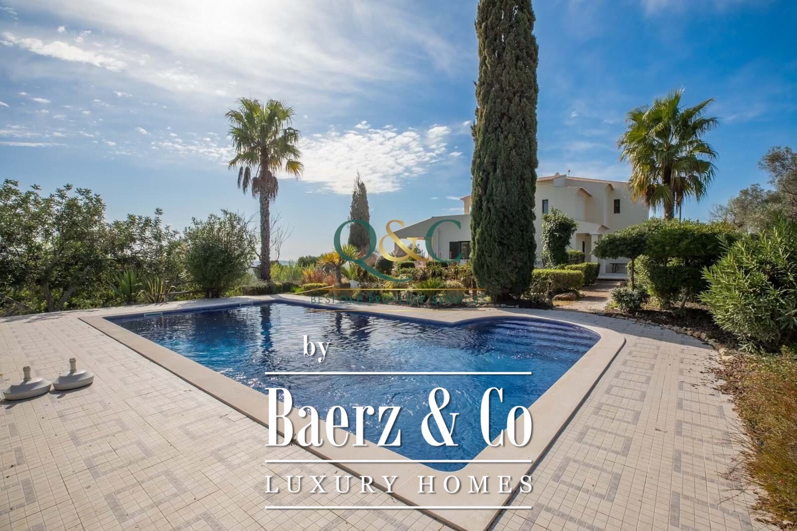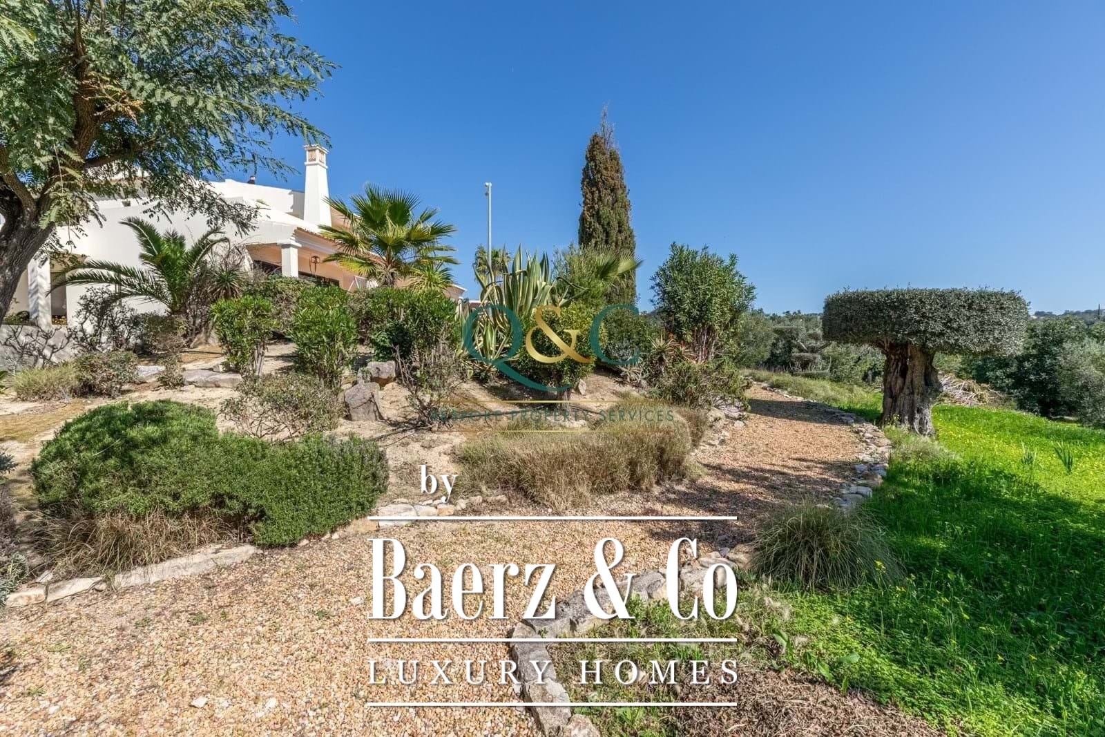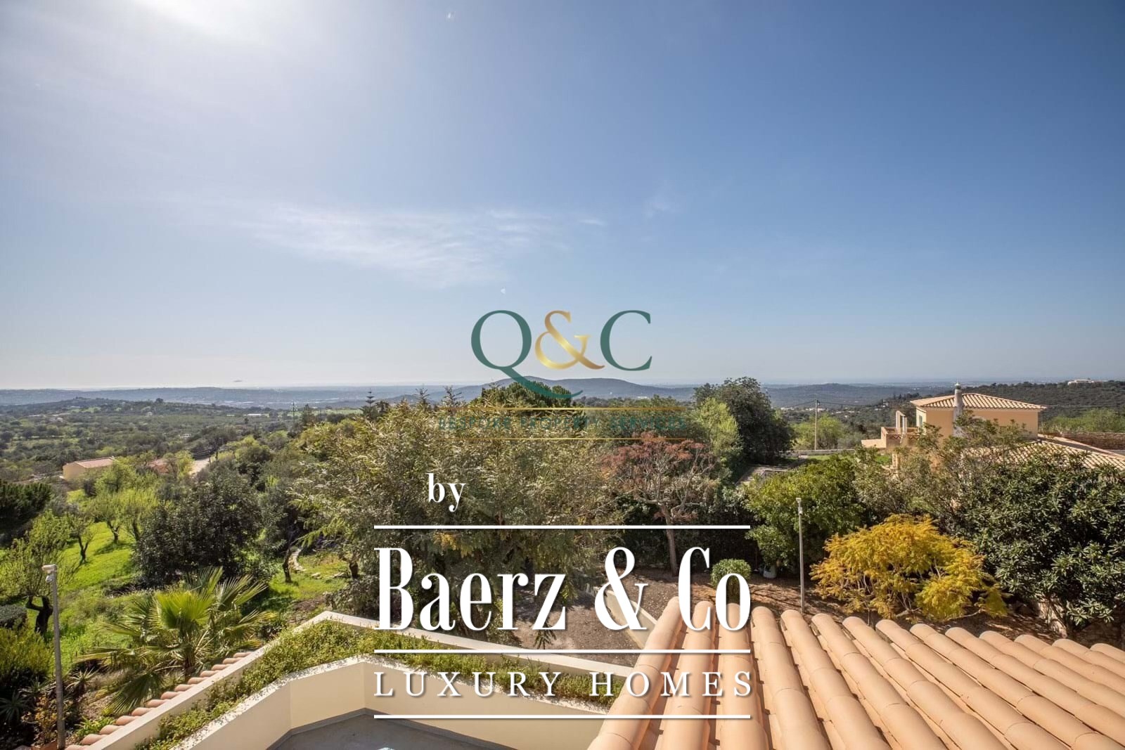 Villa Loulé presents a rare sense of calm just five minutes from the vibrant market town of Loule, with captivating sea and countryside views. This villa rests on a 6,720 m² plot, embraced by established gardens and a distinct rhythm of space and light. The 440 m² residence welcomes you with an open plan living and dining area, anchored by a fireplace and direct access to a broad terrace. The kitchen is well-proportioned and equipped for daily living. On the main floor, the master ensuite offers a generous walk-in dressing room, complemented by a family bathroom.