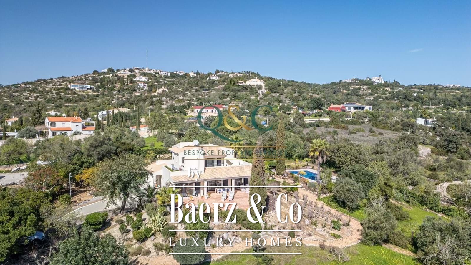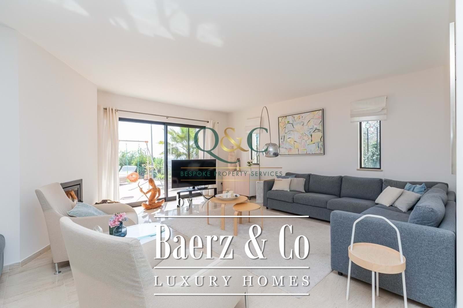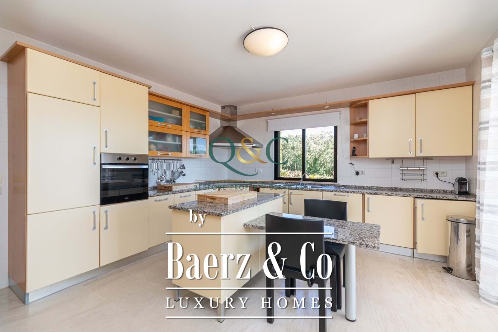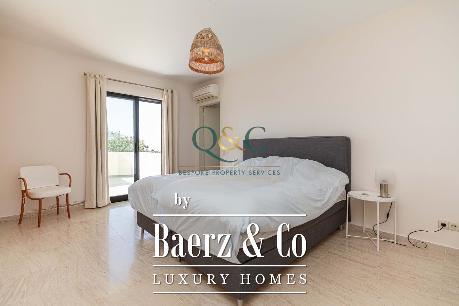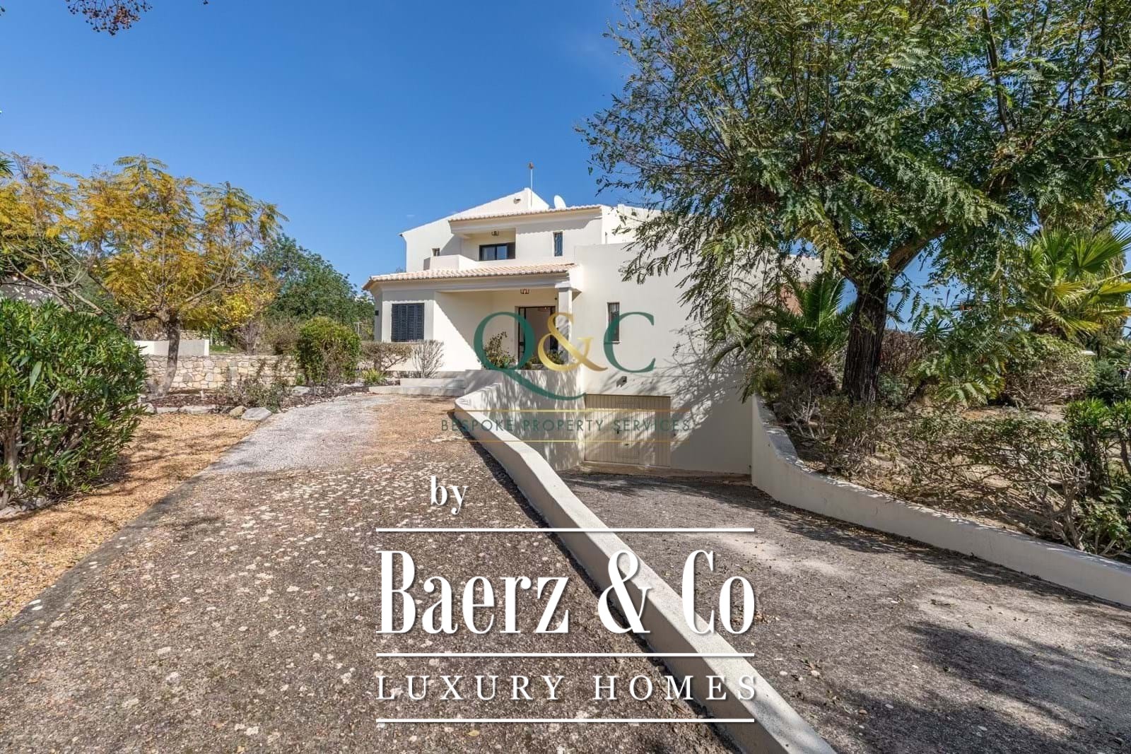 Villa Loulé presents a rare sense of calm just five minutes from the vibrant market town of Loule, with captivating sea and countryside views. This villa rests on a 6,720 m² plot, embraced by established gardens and a distinct rhythm of space and light. The 440 m² residence welcomes you with an open plan living and dining area, anchored by a fireplace and direct access to a broad terrace. The kitchen is well-proportioned and equipped for daily living. On the main floor, the master ensuite offers a generous walk-in dressing room, complemented by a family bathroom.