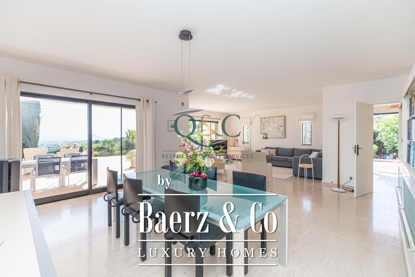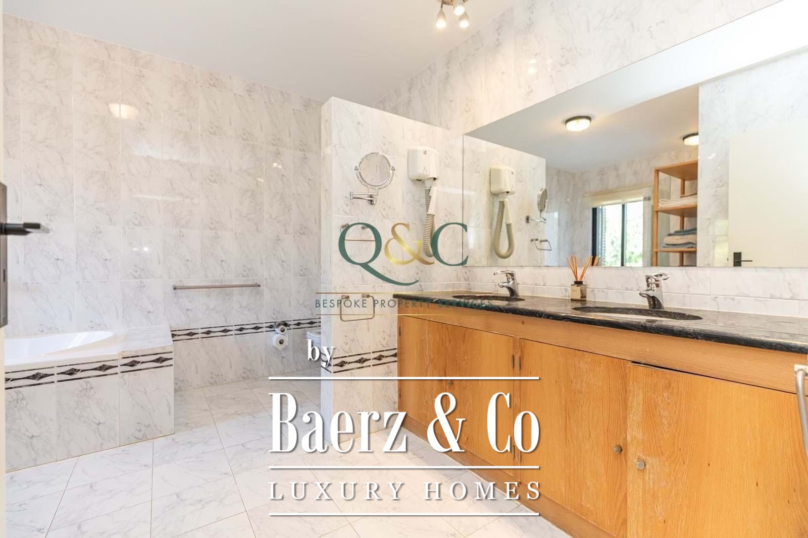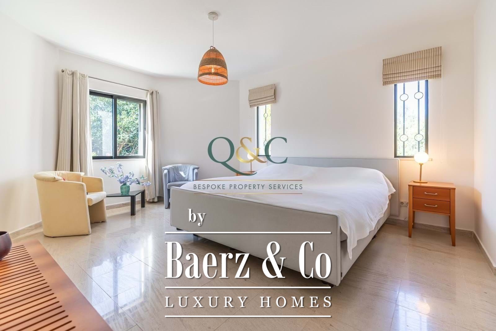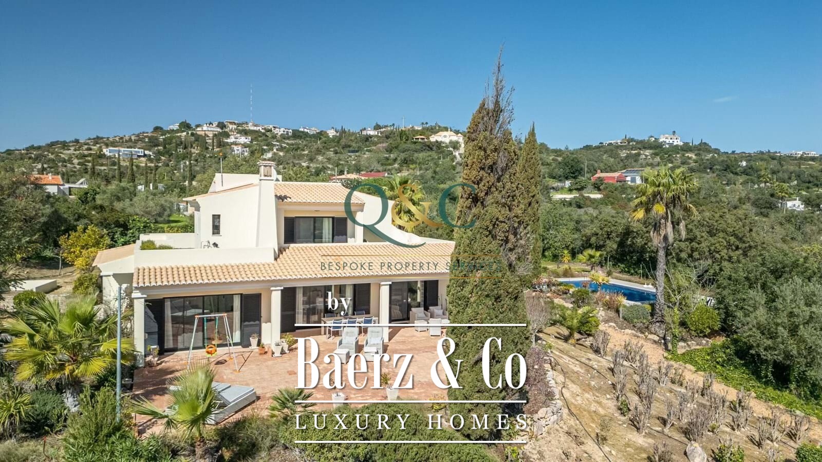 Villa Loulé presents a rare sense of calm just five minutes from the vibrant market town of Loule, with captivating sea and countryside views. This villa rests on a 6,720 m² plot, embraced by established gardens and a distinct rhythm of space and light. The 440 m² residence welcomes you with an open plan living and dining area, anchored by a fireplace and direct access to a broad terrace. The kitchen is well-proportioned and equipped for daily living. On the main floor, the master ensuite offers a generous walk-in dressing room, complemented by a family bathroom.