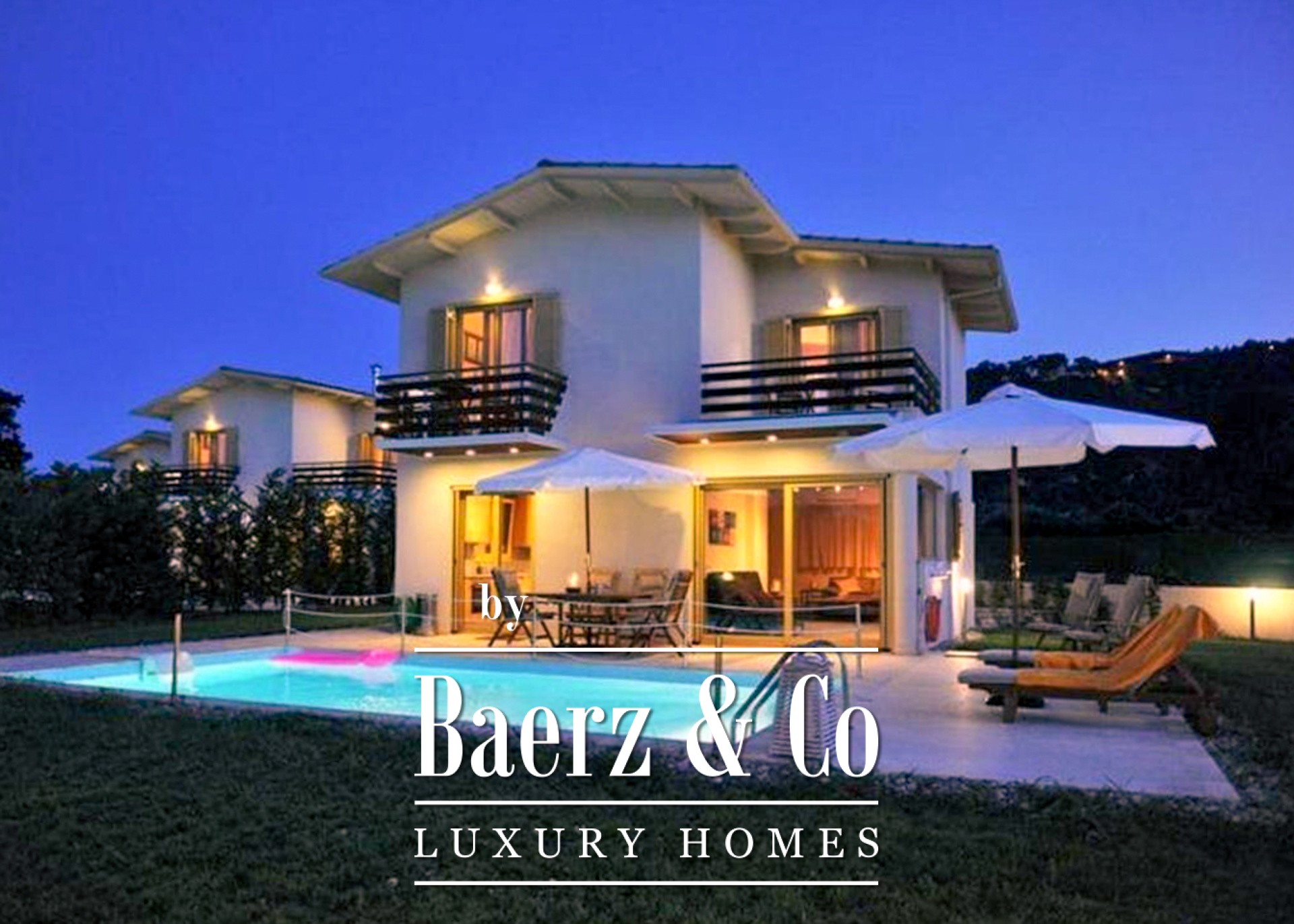 Detached house Agios Ioannis Lefkada is discreetly situated in a prime, tranquil setting just minutes from Lefkada Town and within 500 meters of the sea. This residence, built in 2011 on a 640 m² plot, offers 94 m² of interior space complemented by a private 30 m² swimming pool and thoughtfully landscaped gardens. The house spans three functional levels, with the ground floor opening to a living room featuring an energy-efficient fireplace, a fully equipped kitchen, a WC, and a lounge area. Upstairs, two bedrooms each enjoy en-suite bathrooms and access to three separate balconies, framing sea and unobstructed views. The basement houses a storage room, boiler room, oil tank, and a 160L boiler.
