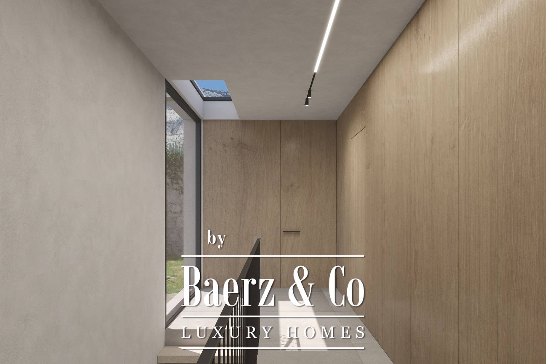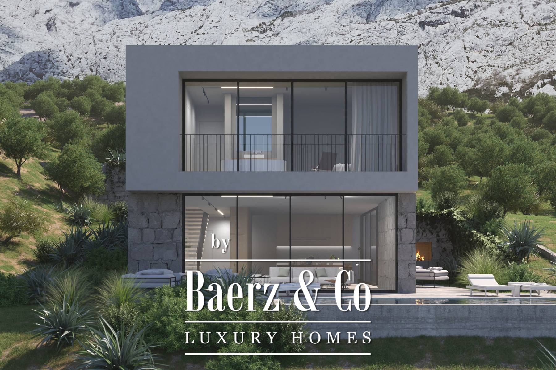 Villa Makarska lies in an idyllic enclave, defined by views that open toward the Adriatic. This villa Makarska, currently under construction with completion set for mid-2025, is framed by greenery and sits less than two kilometers from the sea, ensuring an experience both secluded and intimately connected to the landscape.