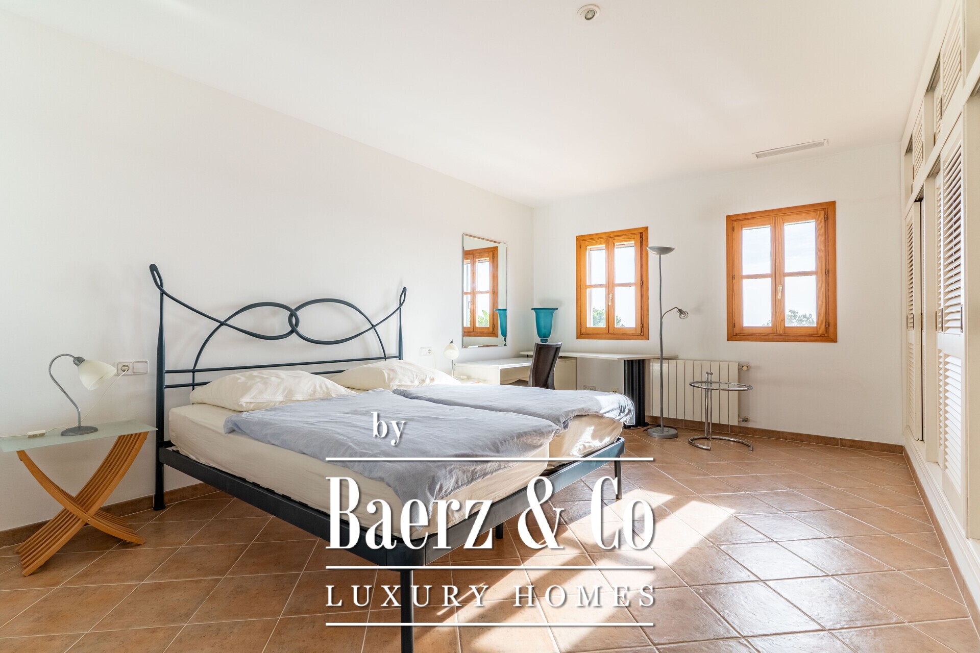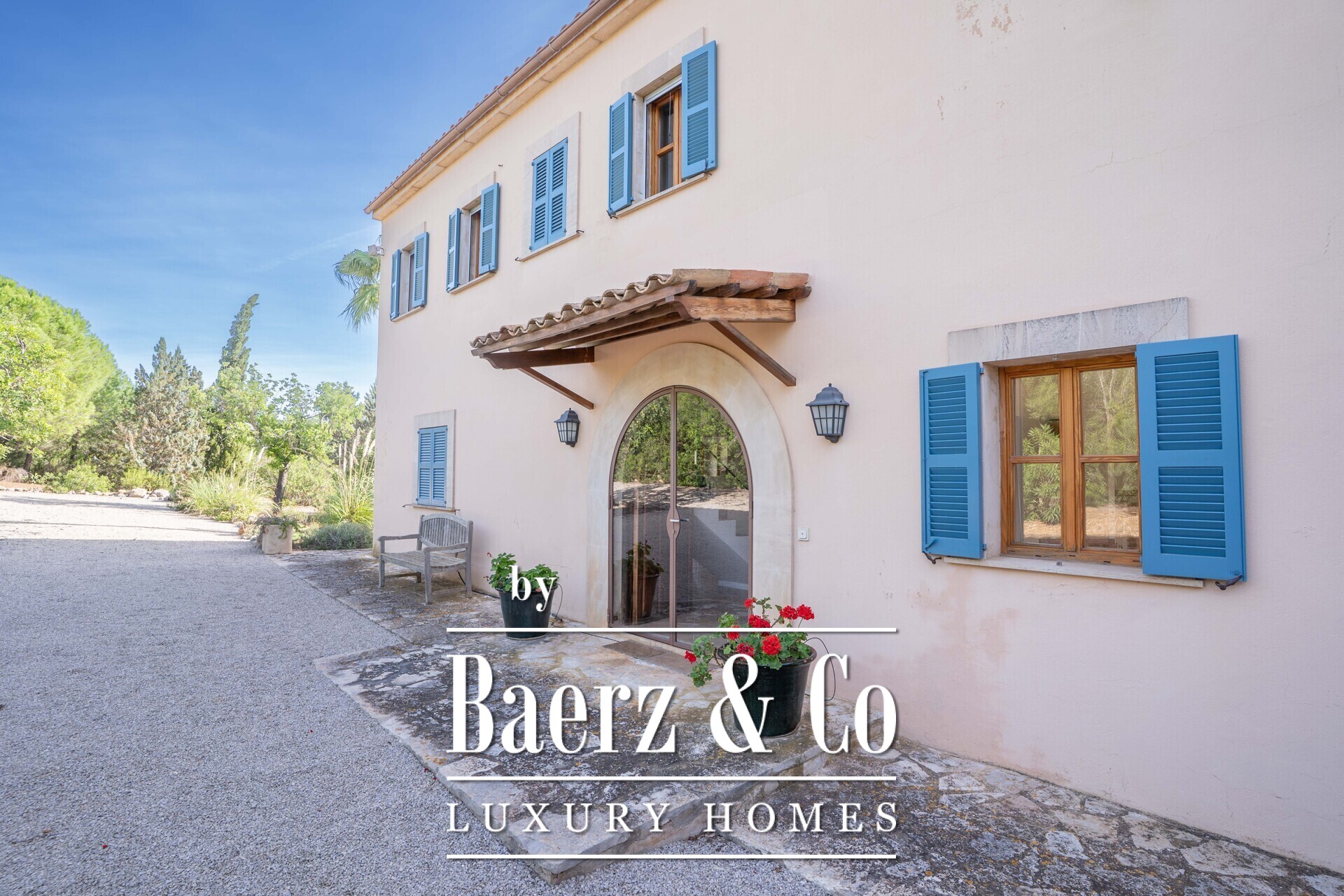 This country house Manacor rests in an elevated position between Porto Cristo and Portocolom, spanning 315 m² over two stories and set on a 12,000 m² plot. The property presents sweeping sea views, enveloped by a mature Mediterranean garden, its setting a study in seclusion and self-sufficiency with a private well and independent power supply.