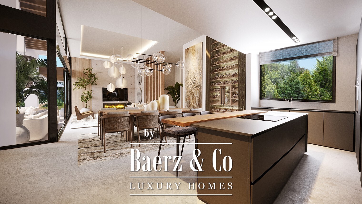 Spacious terraces, garden areas, swimming pool and chill out area with winter fire. The villas have an underground garage and a large basement that can be customised to suit the taste and lifestyle of each family.