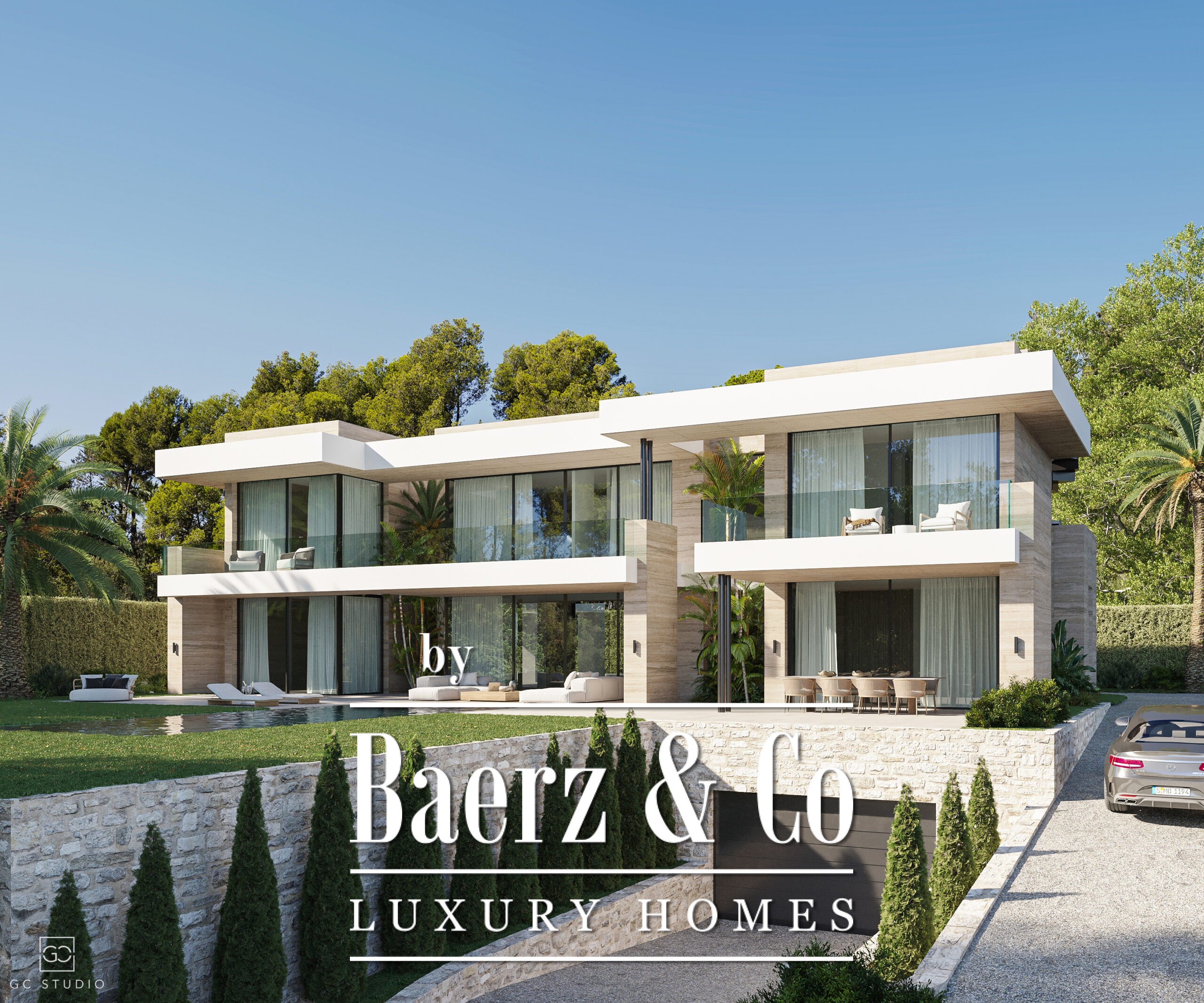 With five bedrooms and six bathrooms, the property is designed for both privacy and convivial gatherings. Features include a private gym, spa and a bespoke wine cellar, expanding the rhythm of home life into wellness and taste. Interior parking for three cars and additional car ports for two more preserve discretion and security. A private swimming pool and rooftop solarium offer distinct moments of leisure.