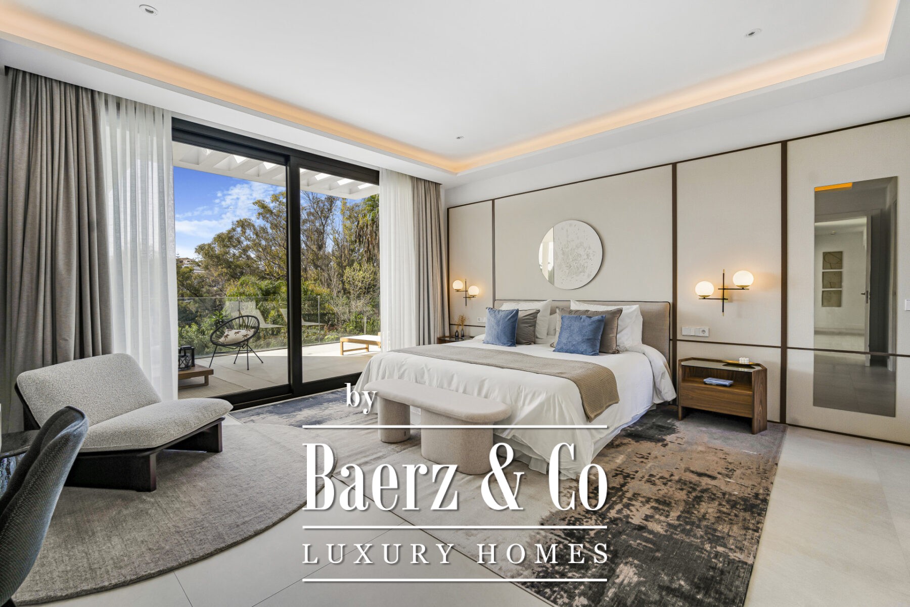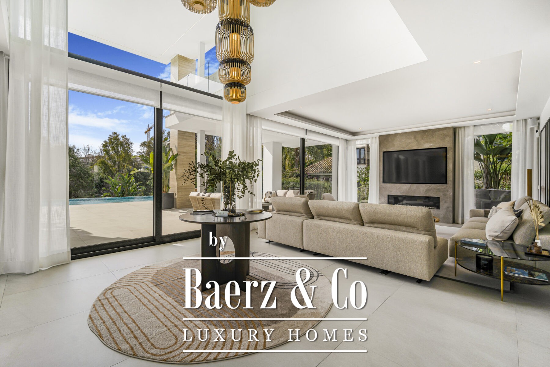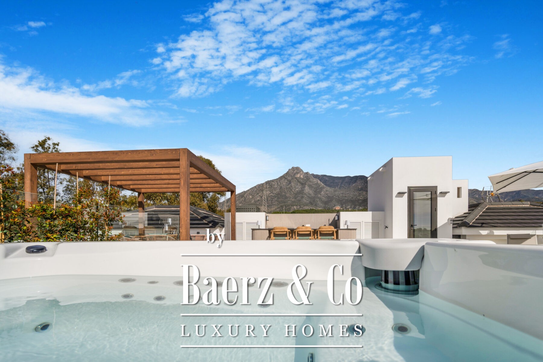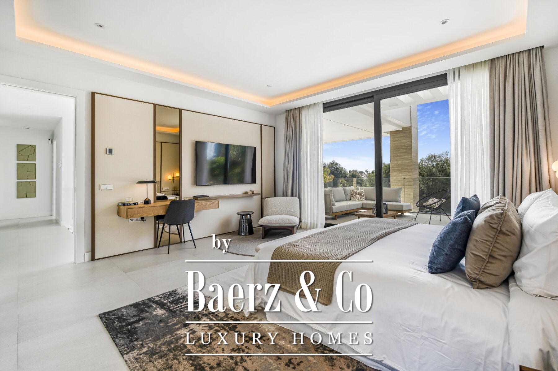 Brand new six bedroom, south facing villa in an exclusive gated community just above the Puente Romano on Marbella's Golden Mile; within easy walking distance to the beach and within east reach of both Puerto Banus and Marbella Town. This impressive property boasts an immaculate landscaped private garden complete with heated swimming pool; an open plan living and dining room with direct access to the garden; top of the range open plan kitchen; and a guest suite. The first floor has two guest suites; the luxury master suite with walk in wardrobe and a private terrace; also from