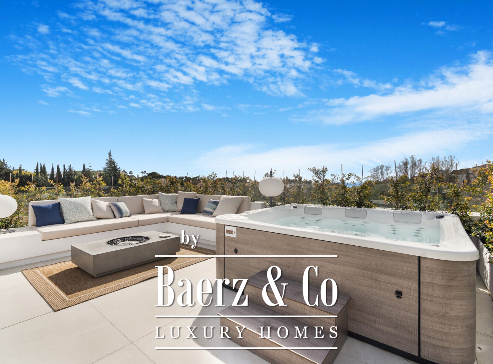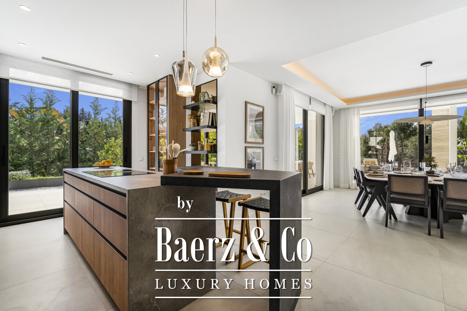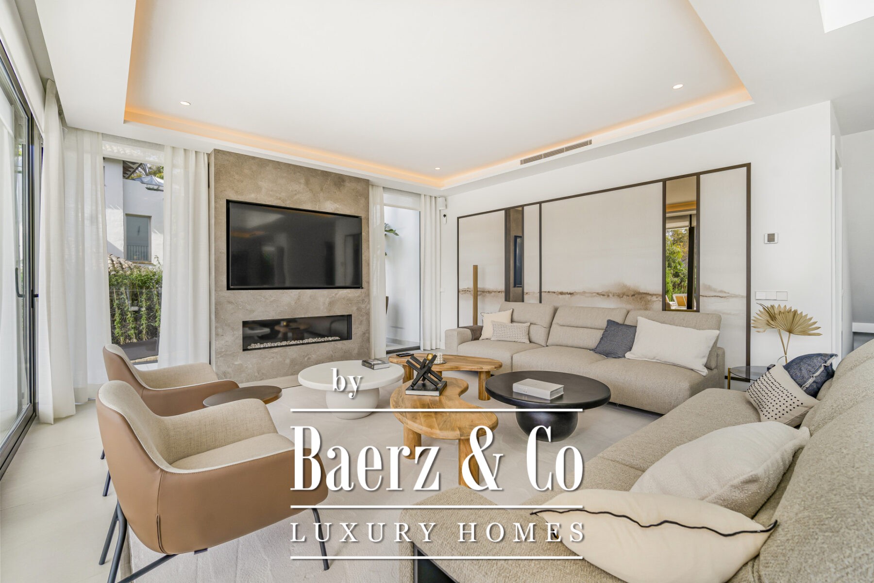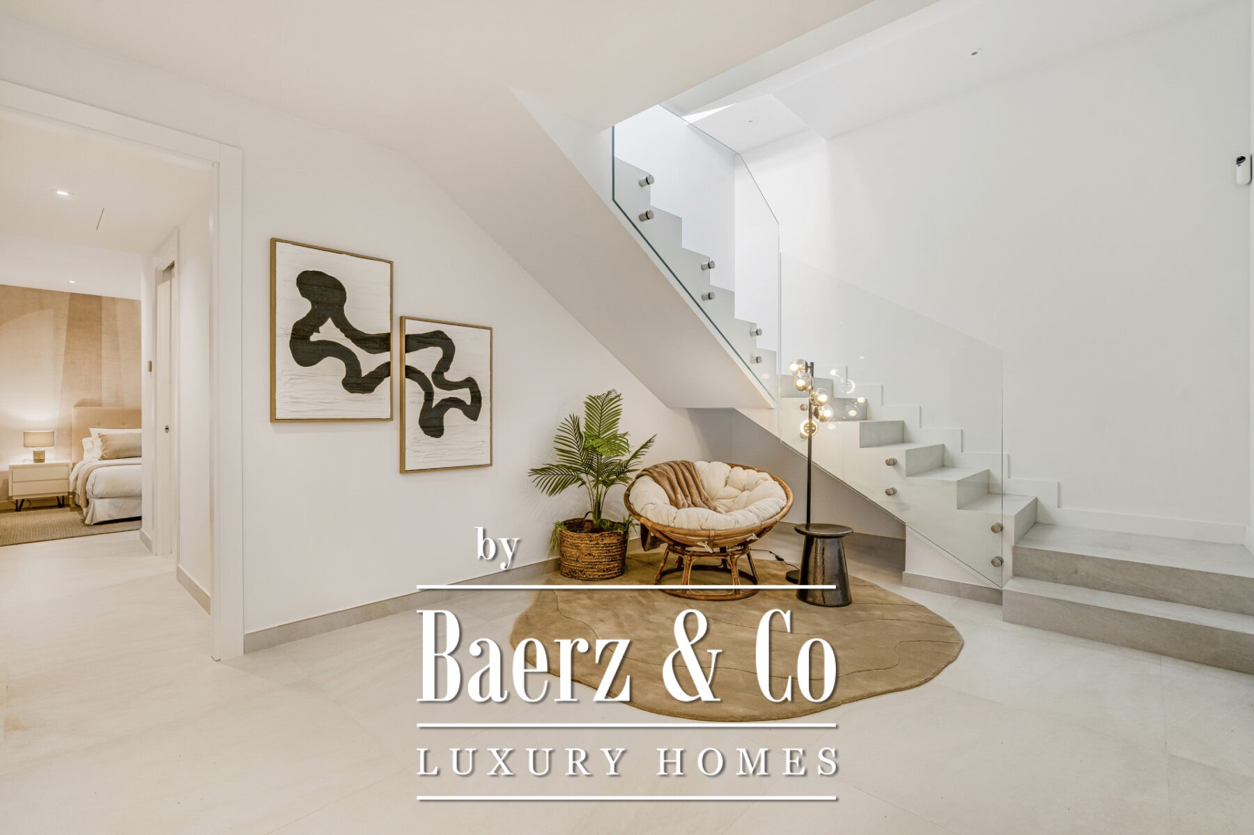 Brand new six bedroom, south facing villa in an exclusive gated community just above the Puente Romano on Marbella's Golden Mile; within easy walking distance to the beach and within east reach of both Puerto Banus and Marbella Town. This impressive property boasts an immaculate landscaped private garden complete with heated swimming pool; an open plan living and dining room with direct access to the garden; top of the range open plan kitchen; and a guest suite. The first floor has two guest suites; the luxury master suite with walk in wardrobe and a private terrace; also from