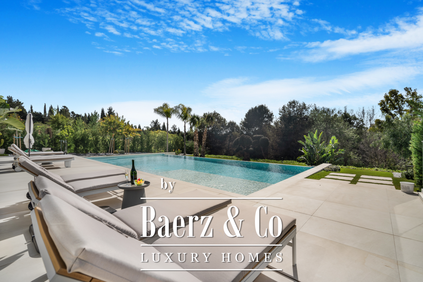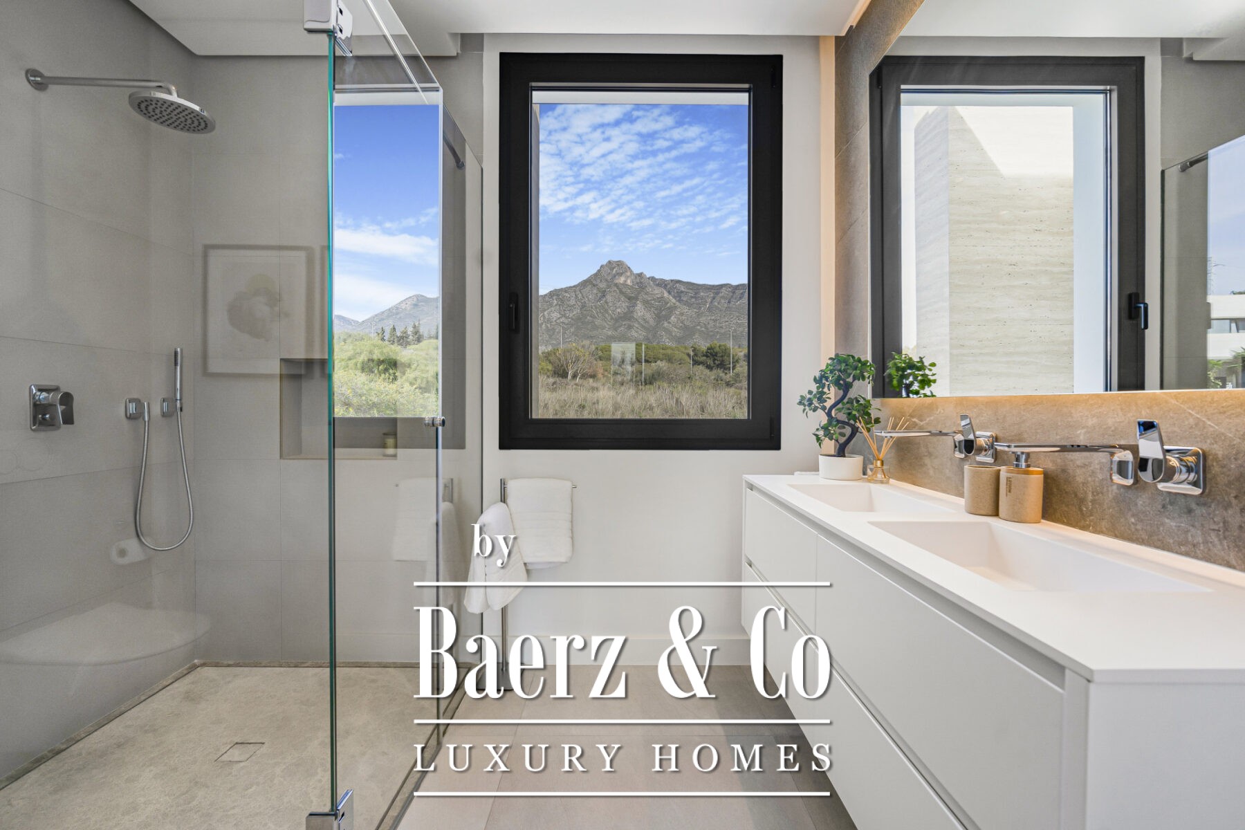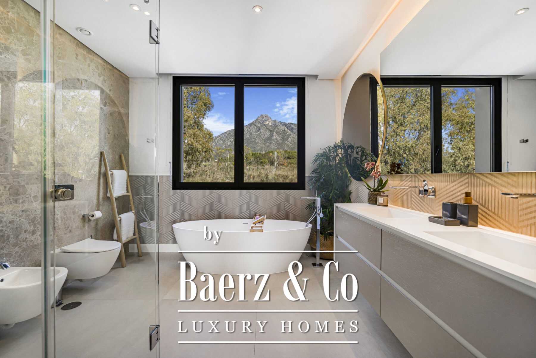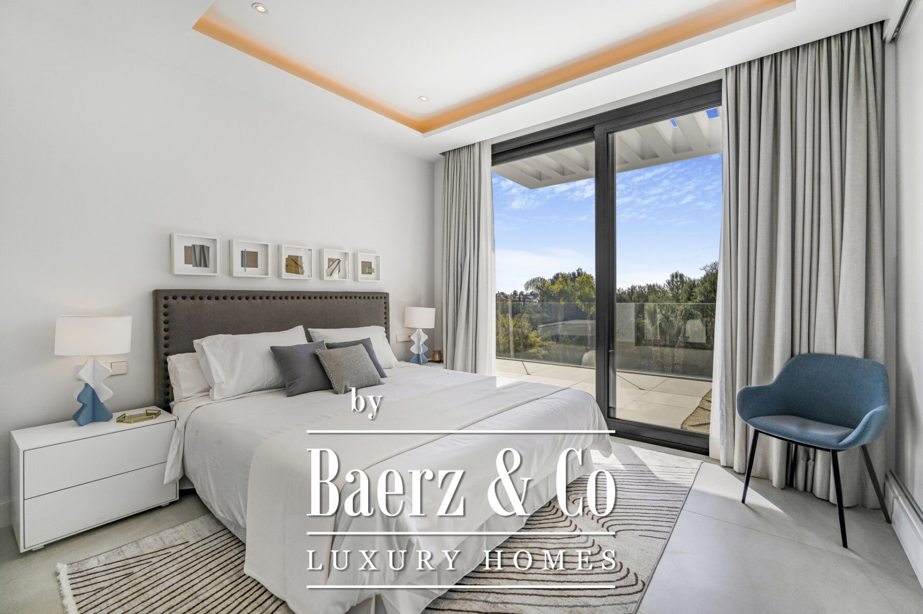 Brand new six bedroom, south facing villa in an exclusive gated community just above the Puente Romano on Marbella's Golden Mile; within easy walking distance to the beach and within east reach of both Puerto Banus and Marbella Town. This impressive property boasts an immaculate landscaped private garden complete with heated swimming pool; an open plan living and dining room with direct access to the garden; top of the range open plan kitchen; and a guest suite. The first floor has two guest suites; the luxury master suite with walk in wardrobe and a private terrace; also from