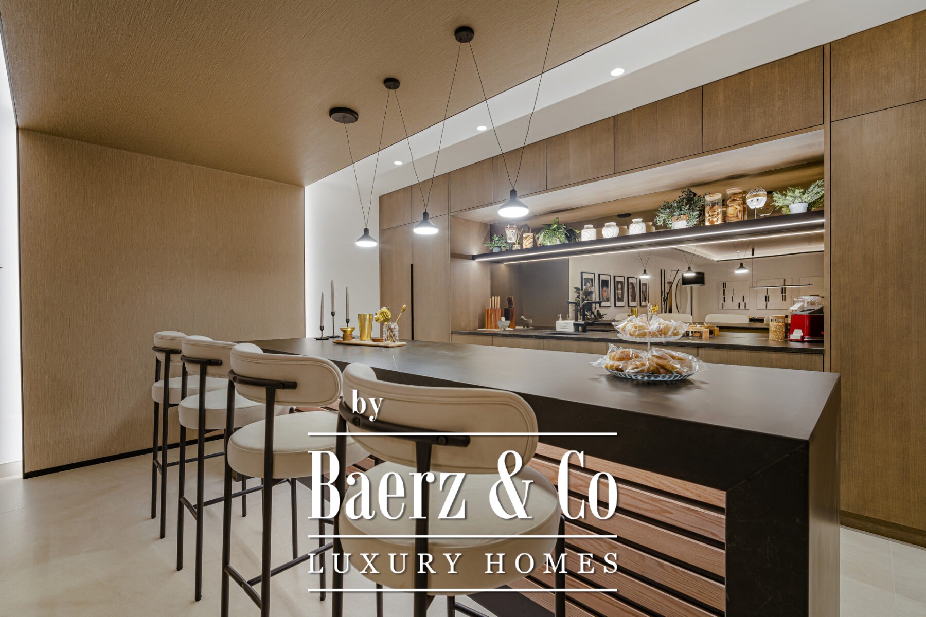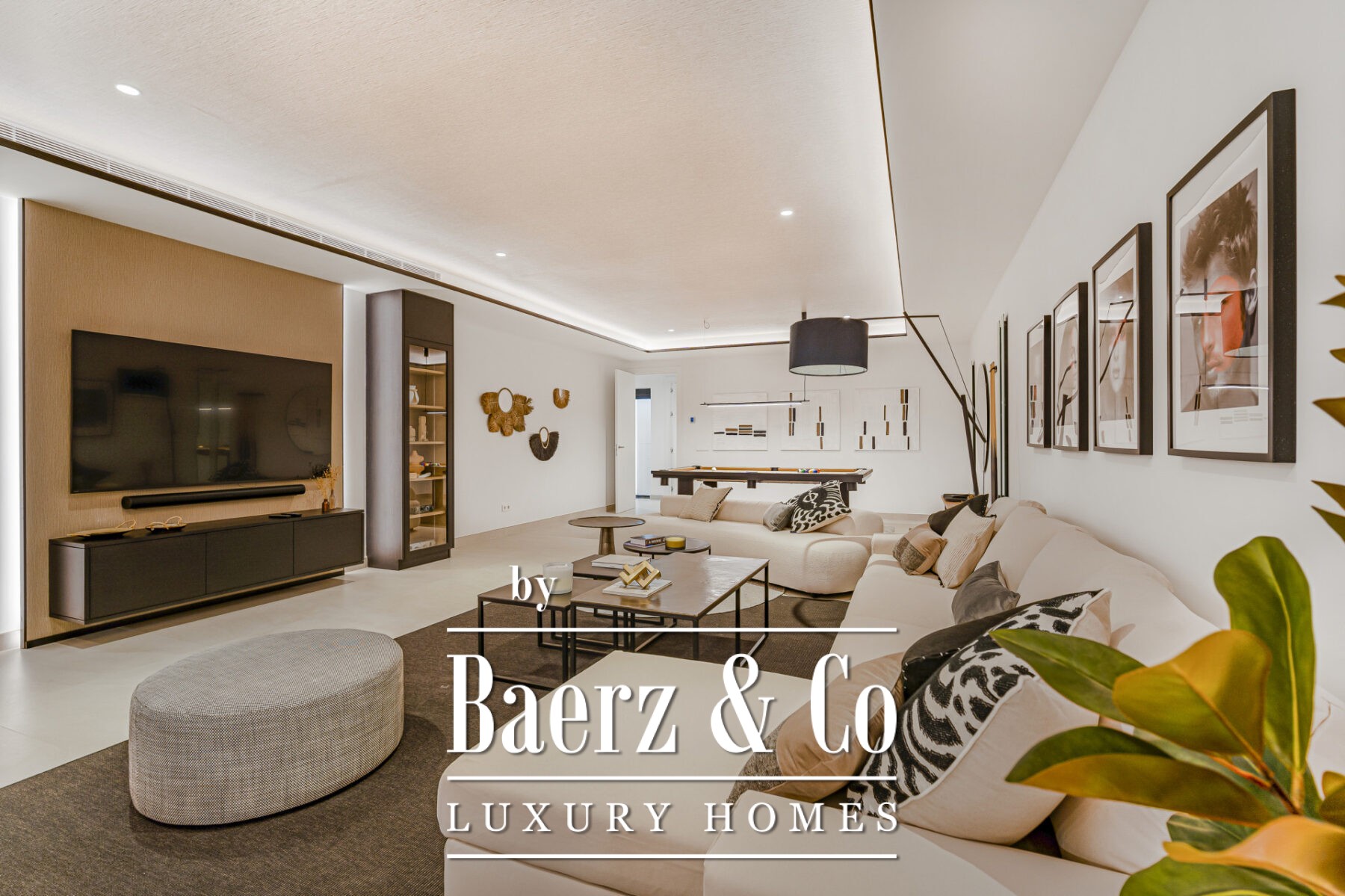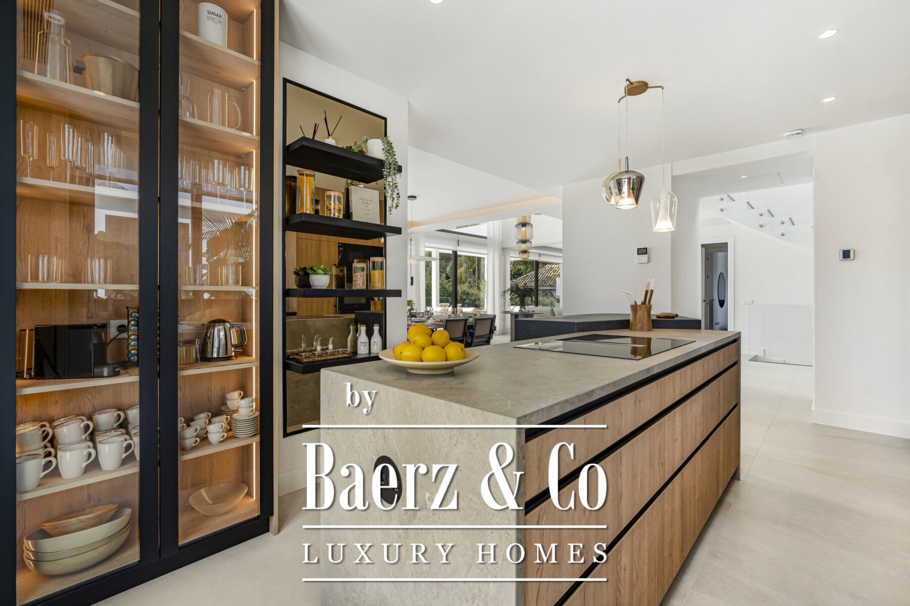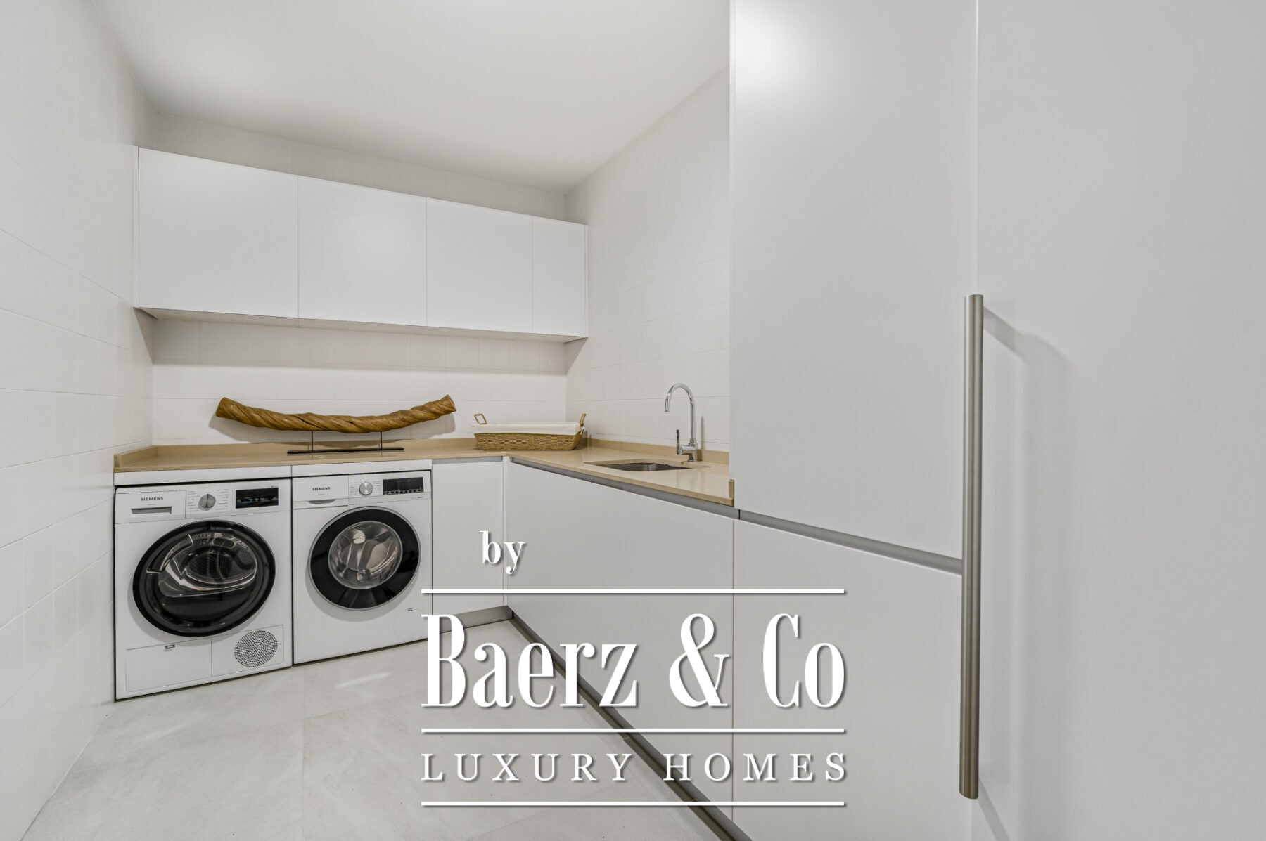 this level there is access to a large solarium with spectacular sea views, and complete with jacuzzi & outdoor kitchen. The lower level of the property has an entertainment room with pool table, lounge and bar; two guest suites; and access to the garage. Other features include private garage for three cars and electric car chargers, hot and cold air-conditioning, built-in wardrobes, alarm system, security cameras and an elevator connecting all levels. An incredible property perfect for year-round living or as a rental investment with touristic license already in place.