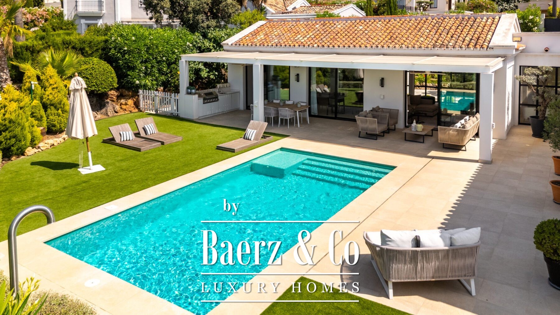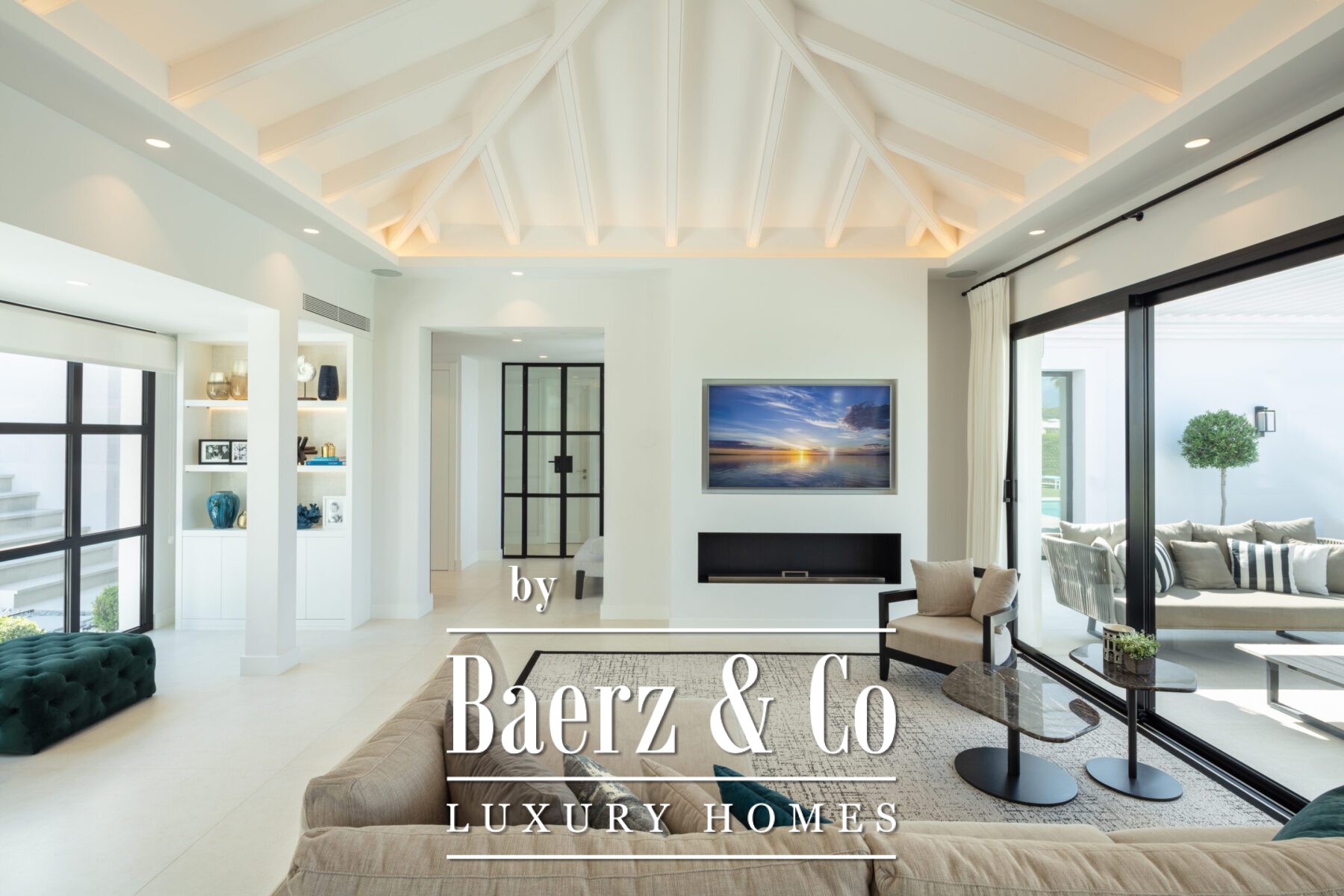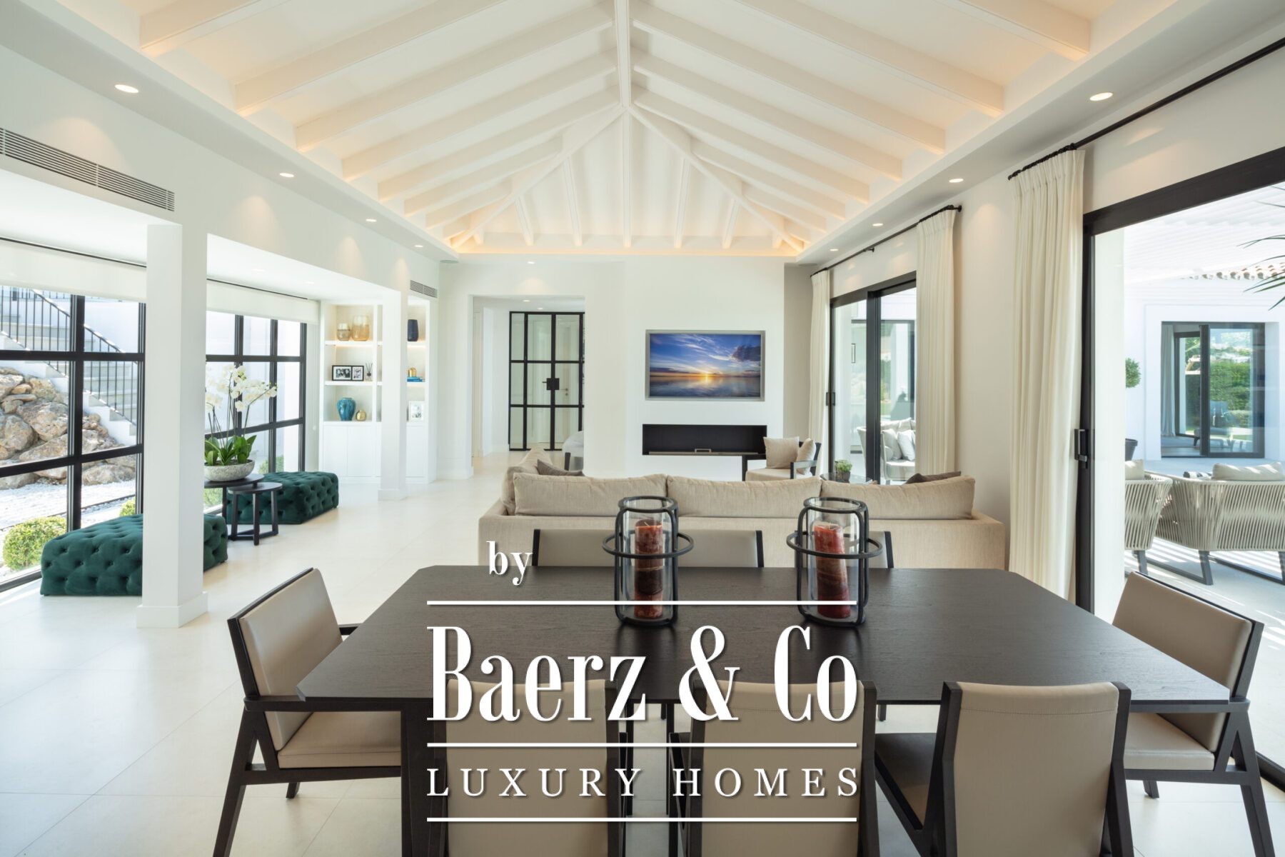 This stunning modern Andalucian villa located in boutique gated community walking distance to Los Naranjos Golf club, offers a modern internal living style, while keeping its Andalucian tiled roof and charm. This beautiful one-level villa set on a south west plot, offers incredible amounts of light and sun all day long.