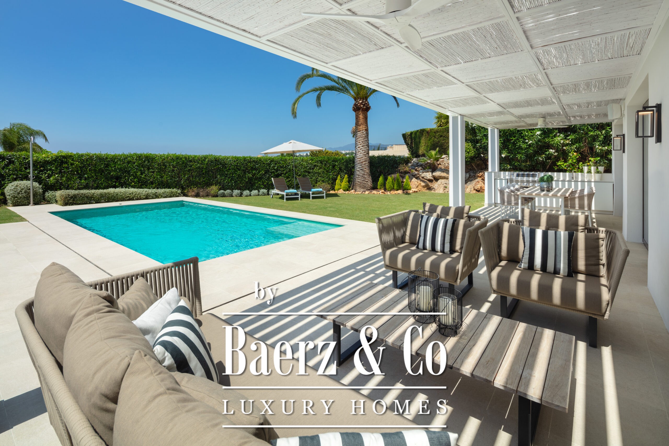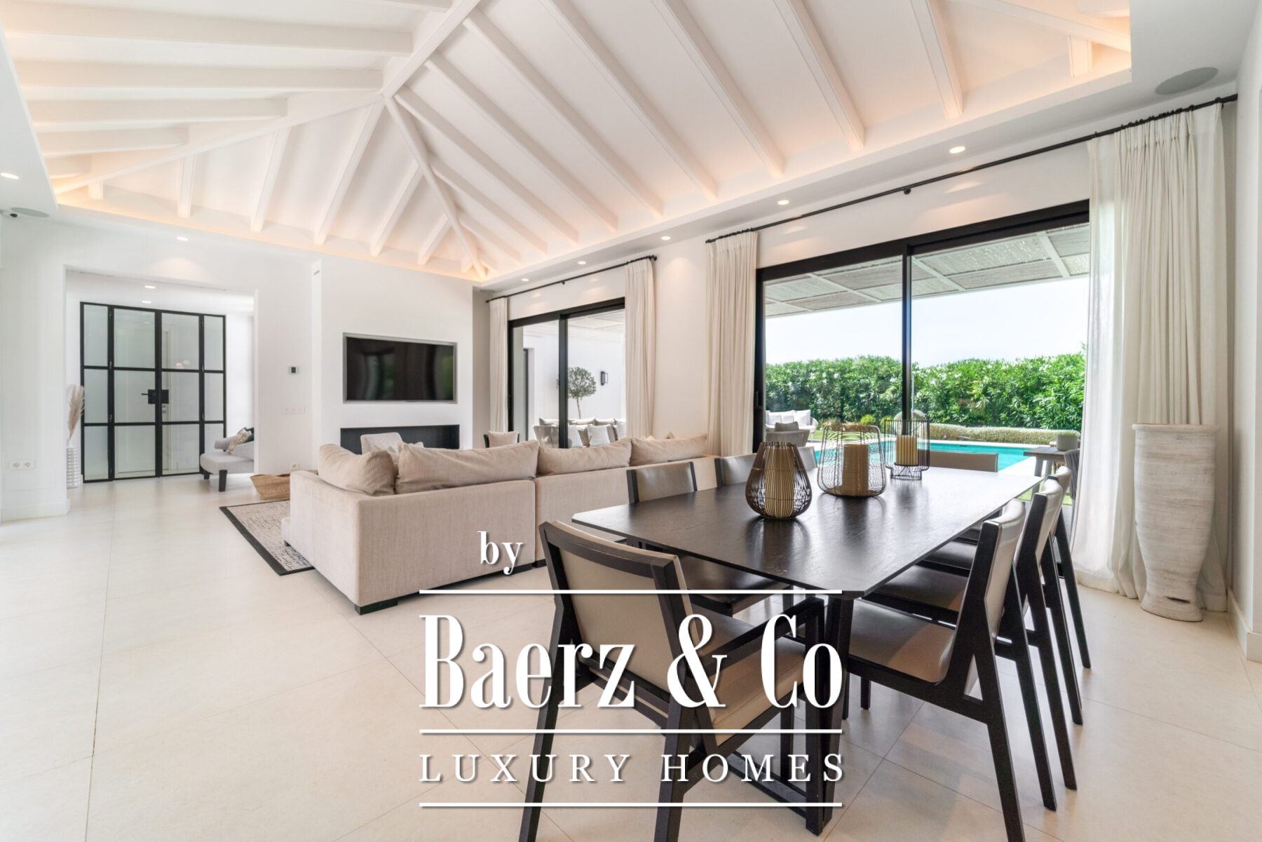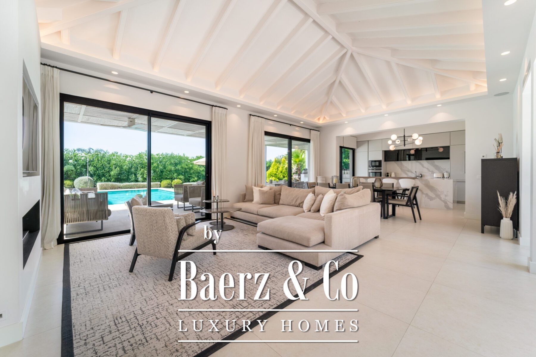 This stunning modern Andalucian villa located in boutique gated community walking distance to Los Naranjos Golf club, offers a modern internal living style, while keeping its Andalucian tiled roof and charm. This beautiful one-level villa set on a south west plot, offers incredible amounts of light and sun all day long.