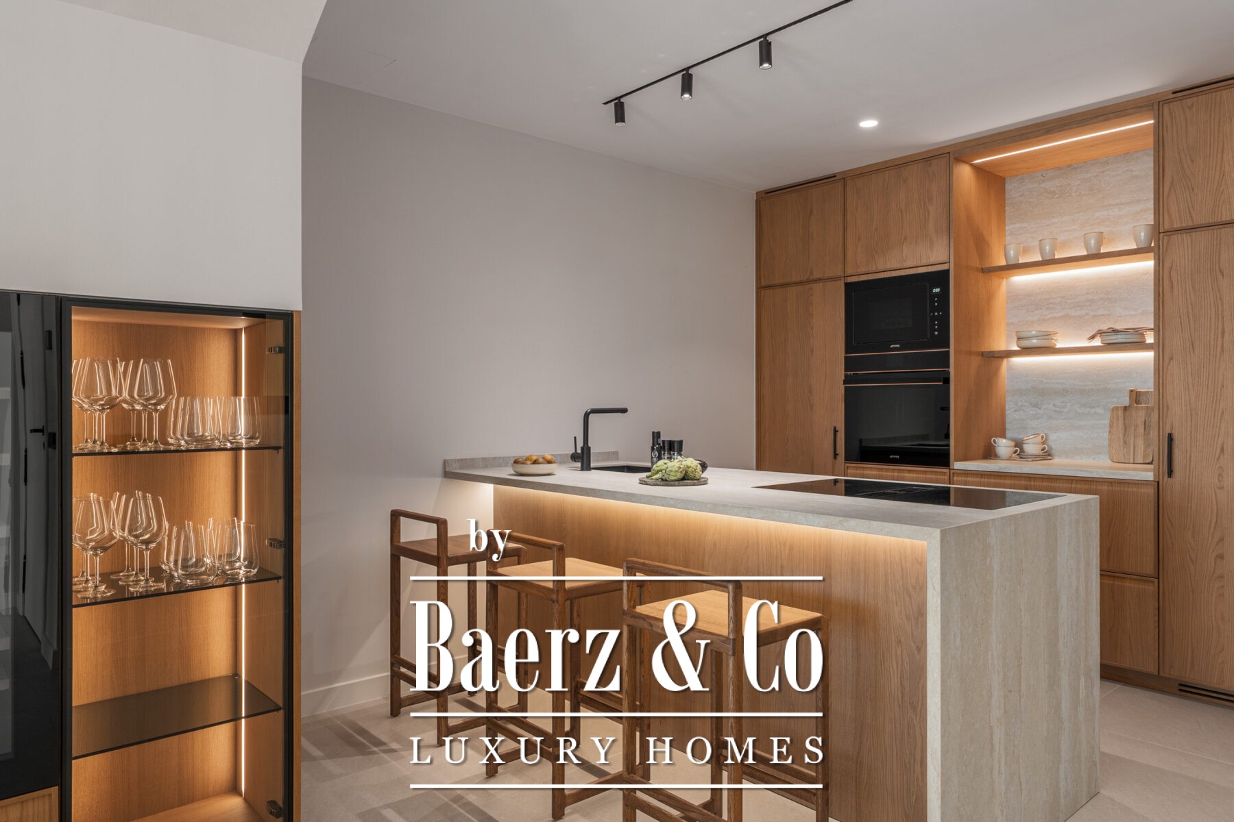 Above, the rooftop solarium is outfitted for relaxation year-round, with views spanning the Mediterranean and La Concha mountain, a lounge, fireplace, bar, outdoor shower, and sunbeds. Residents of this gated community enjoy shared amenities, including a communal pool and proximity to La Quinta Golf & Country Club’s 27-hole course. The area surrounds one with established excellence: Marbella’s beaches are ten minutes away, luxury shopping and restaurants within easy reach, and schools such as Aloha College and Atalaya International close by. Smooth connections to Marbella, Estepona, and Málaga Airport ensure both privacy and access, underscoring the lasting appeal of this property. This meticulously crafted townhouse in Benahavís offers understated luxury, intentional design, and a readymade lifestyle for both permanent and seasonal enjoyment.