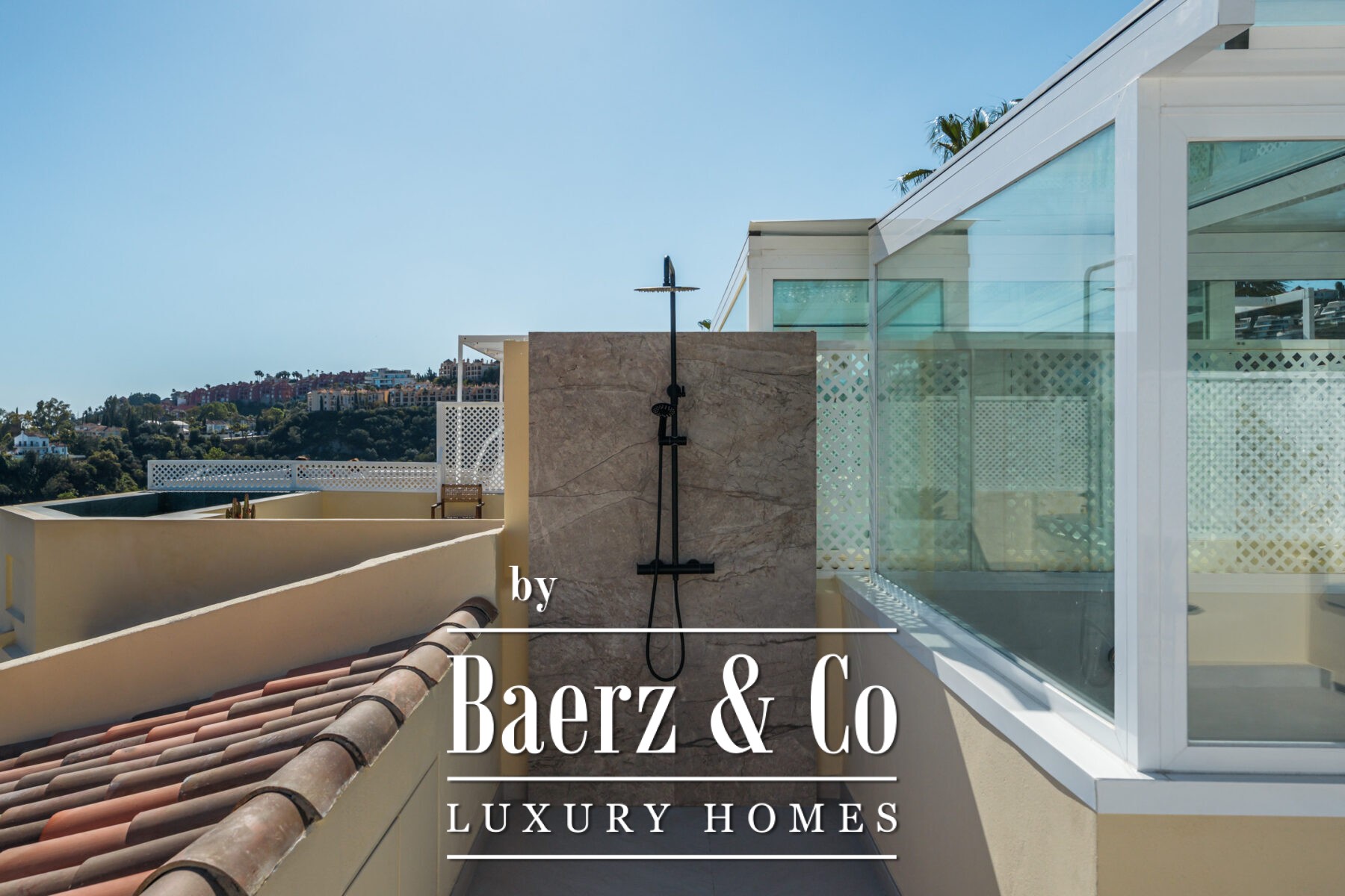 Townhouse Benahavís La Quinta Hills is a refined three-level residence offering a composed blend of Mediterranean calm and Scandinavian restraint. Meticulously renovated in 2024, this 212 square meter townhouse extends across 164 square meters of refined interior space and is crowned by a 49 square meter rooftop solarium. Featuring three bedrooms and three bathrooms, two en-suite, plus a guest toilet, the property balances privacy and flexibility for residents and visitors alike.