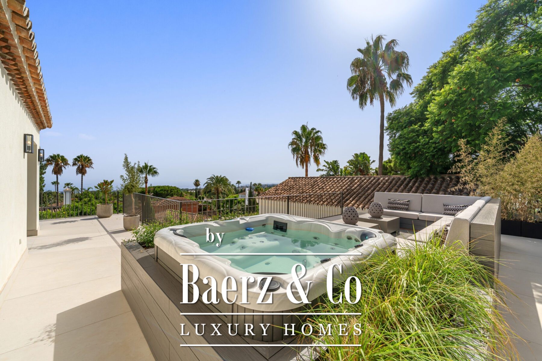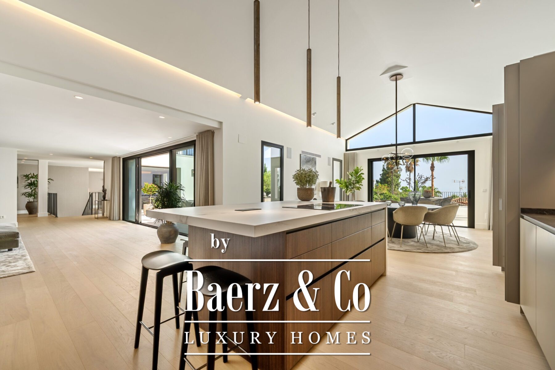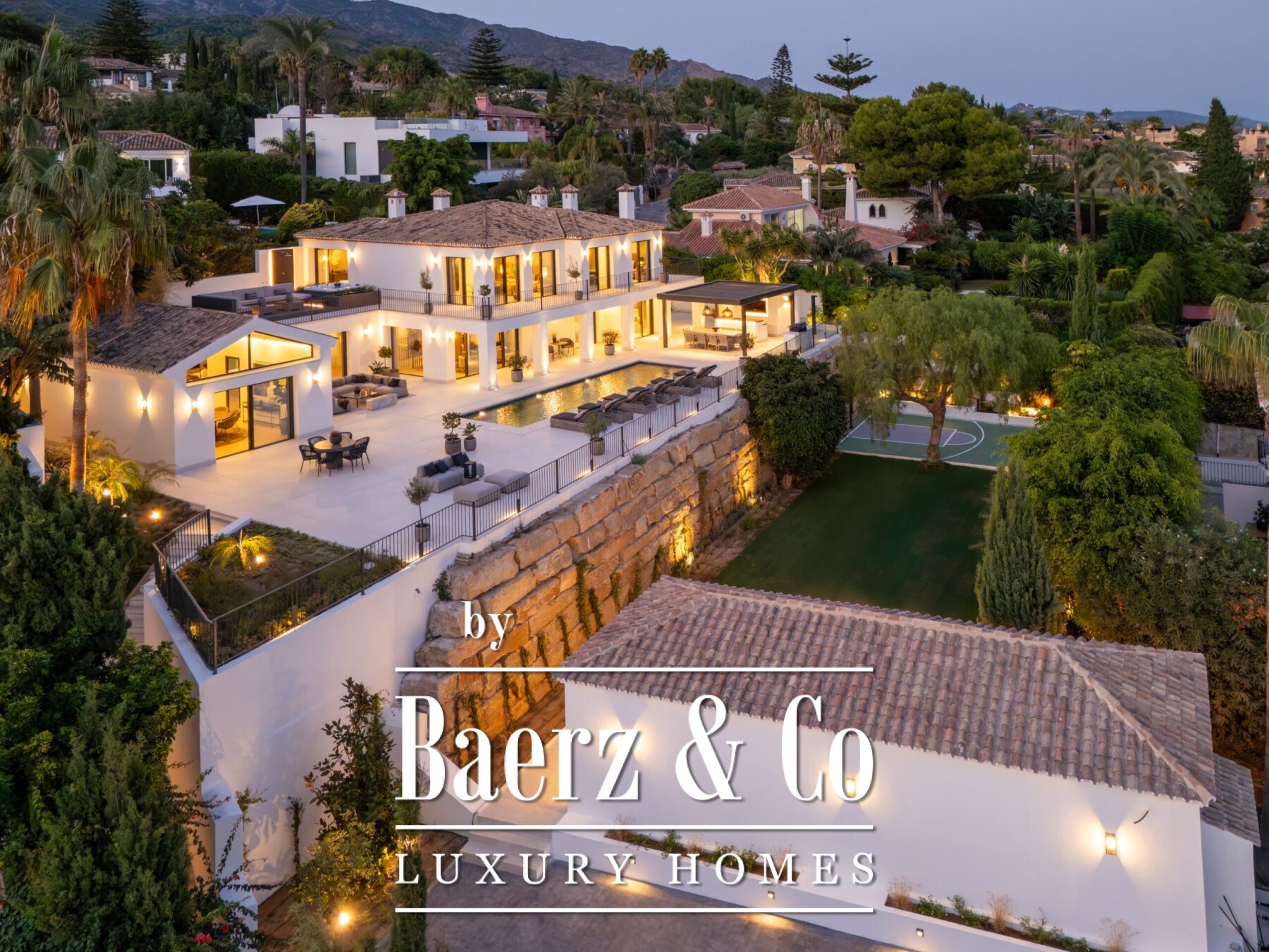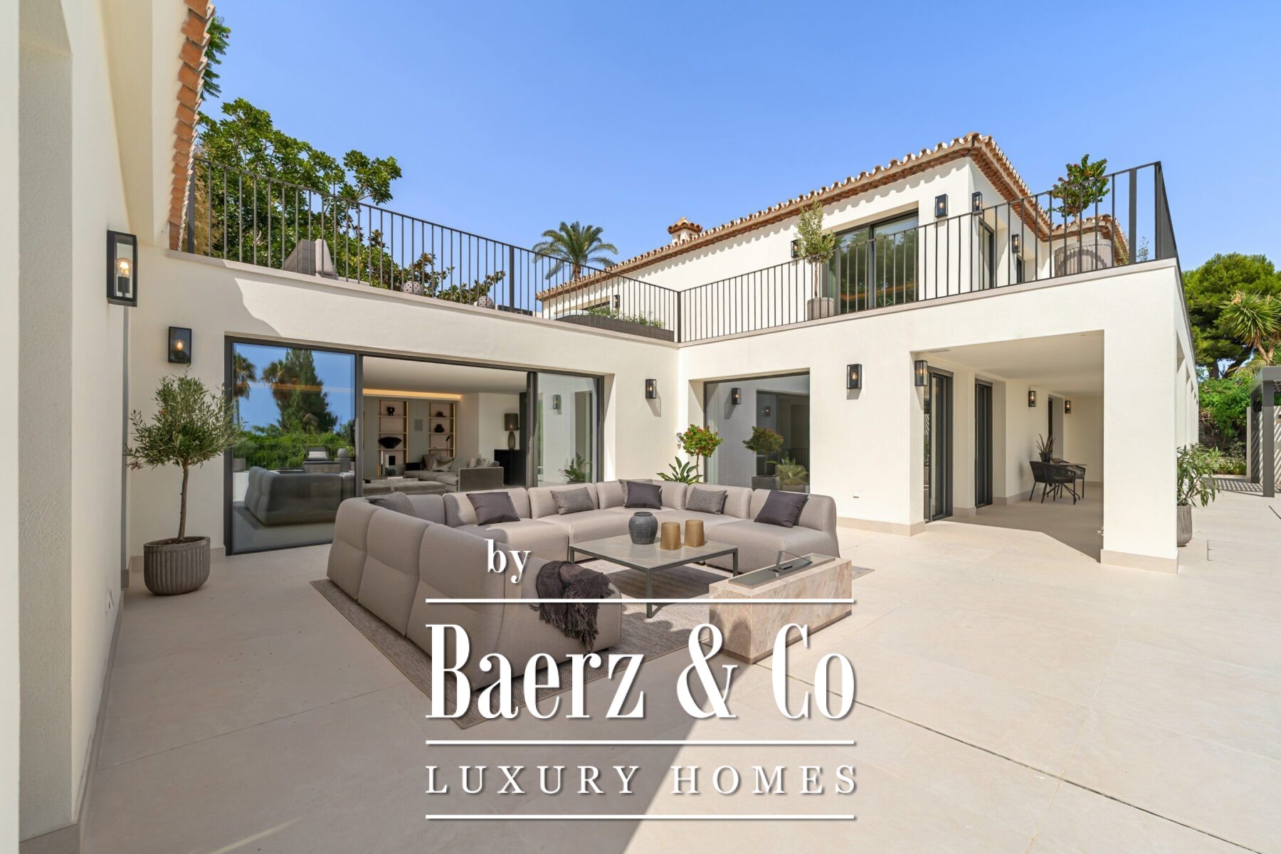 A fully renovated Andalusian-style residence located in Rocío de Nagüeles on Marbella’s prestigious Golden Mile. Set on a 1,965m² south-facing plot beneath La Concha, the property enjoys open views of the Mediterranean. Modernised in 2025, the villa spans 734m² of light-filled interiors, where full-height glazing, vaulted ceilings, and seamless indoor-outdoor transitions frame the scenic surroundings.