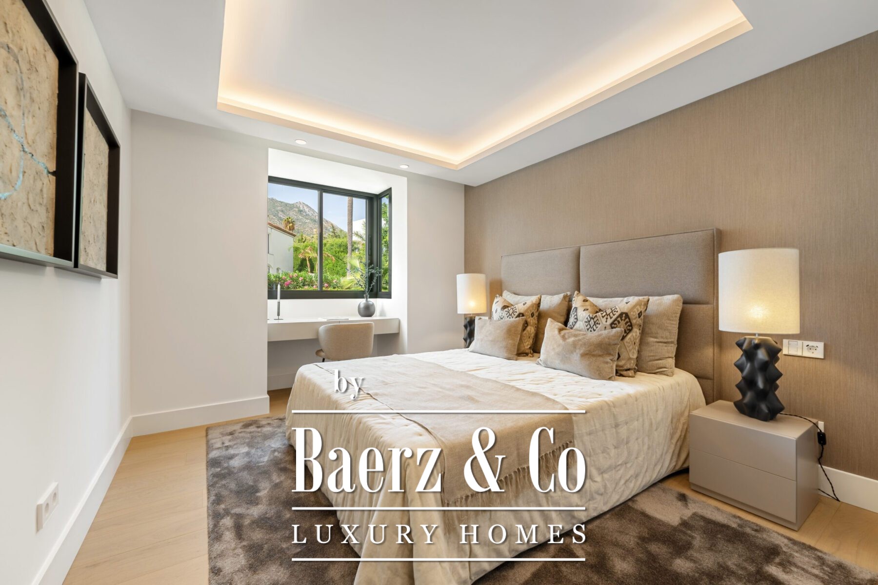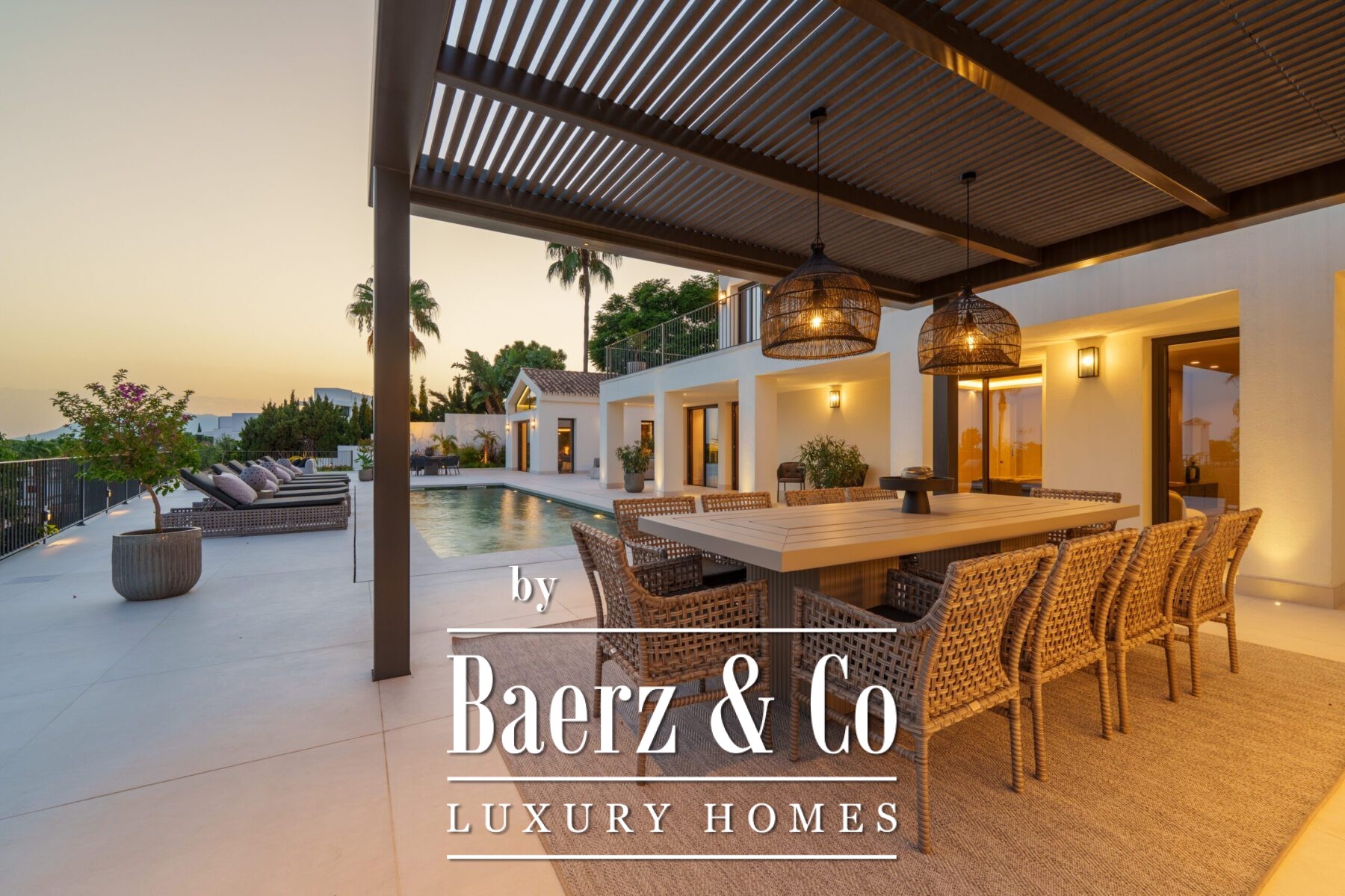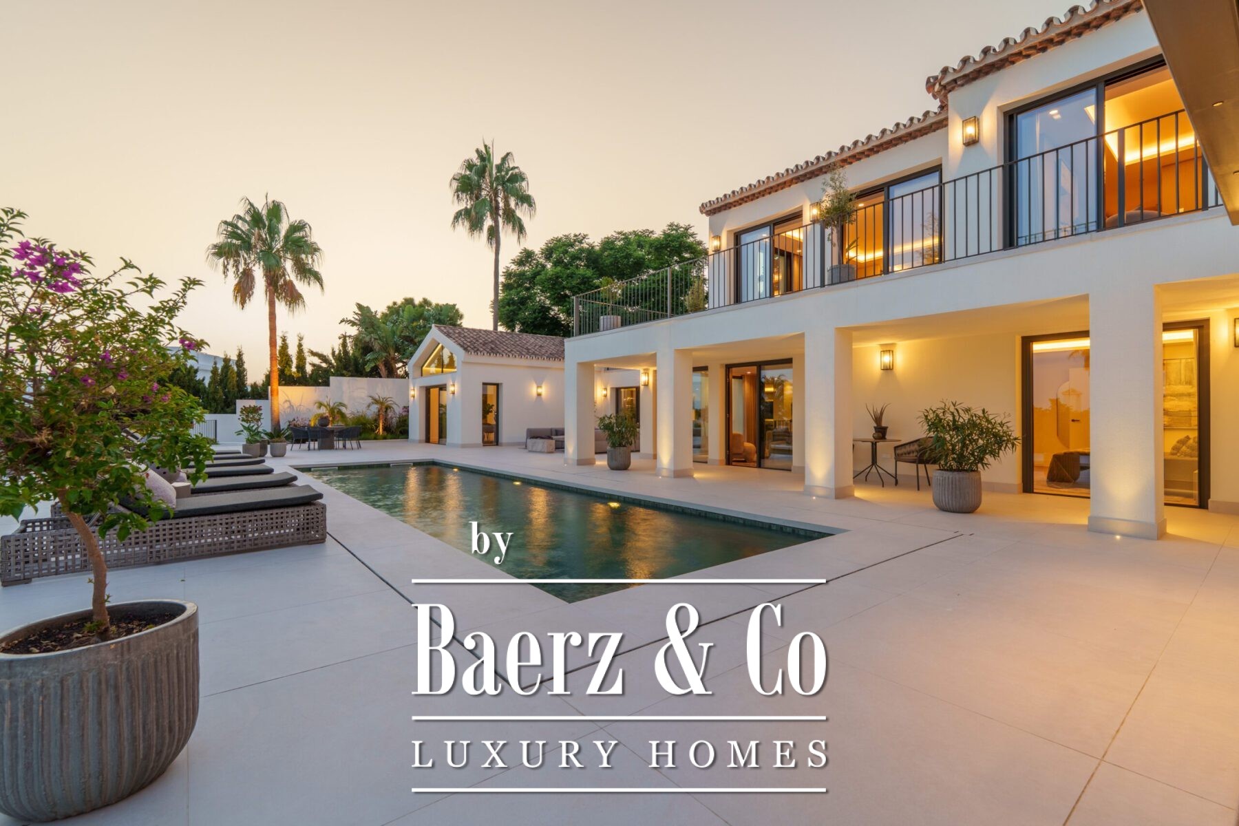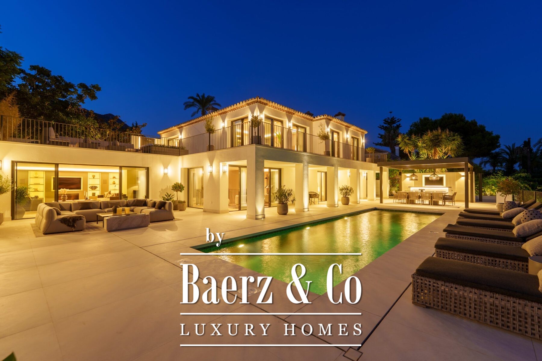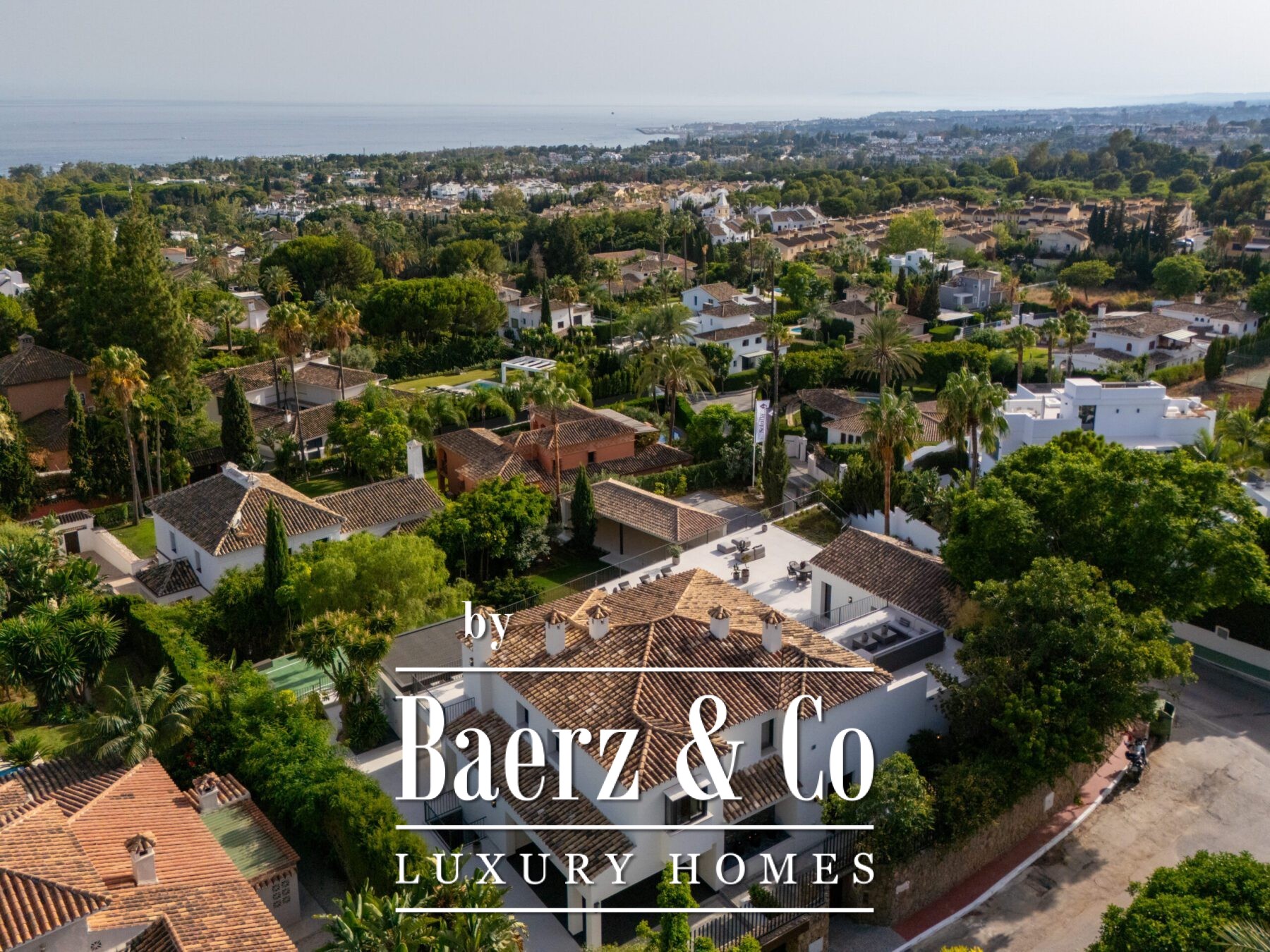 A fully renovated Andalusian-style residence located in Rocío de Nagüeles on Marbella’s prestigious Golden Mile. Set on a 1,965m² south-facing plot beneath La Concha, the property enjoys open views of the Mediterranean. Modernised in 2025, the villa spans 734m² of light-filled interiors, where full-height glazing, vaulted ceilings, and seamless indoor-outdoor transitions frame the scenic surroundings.