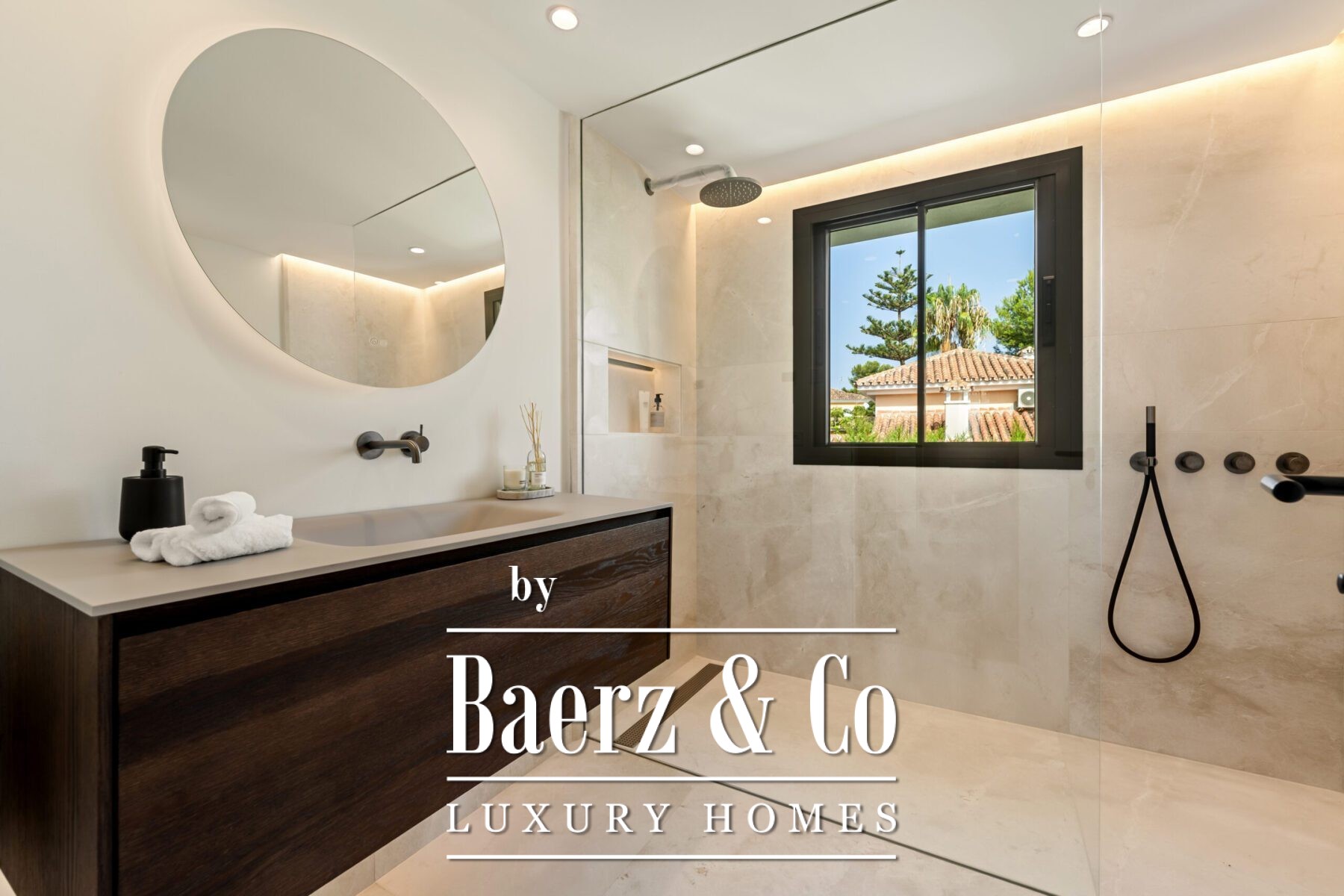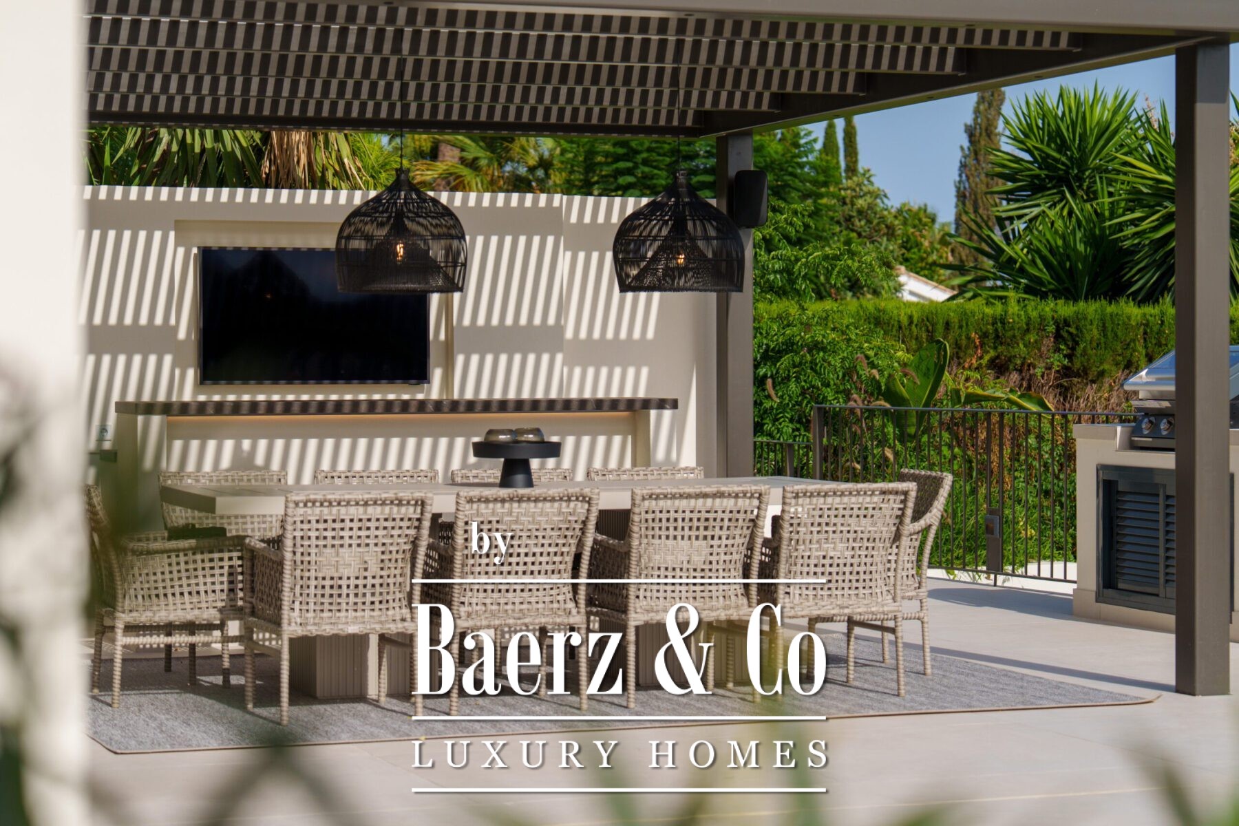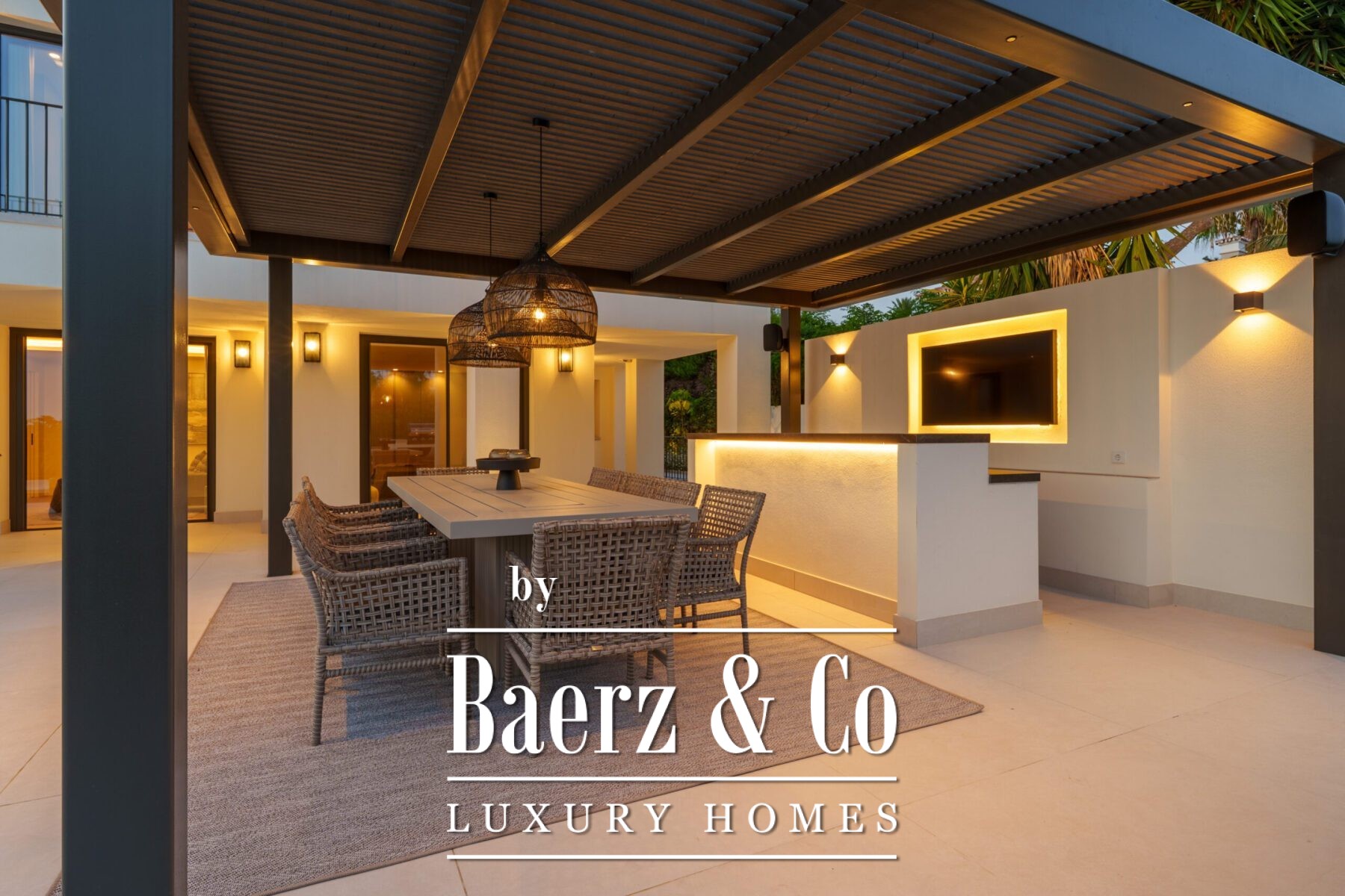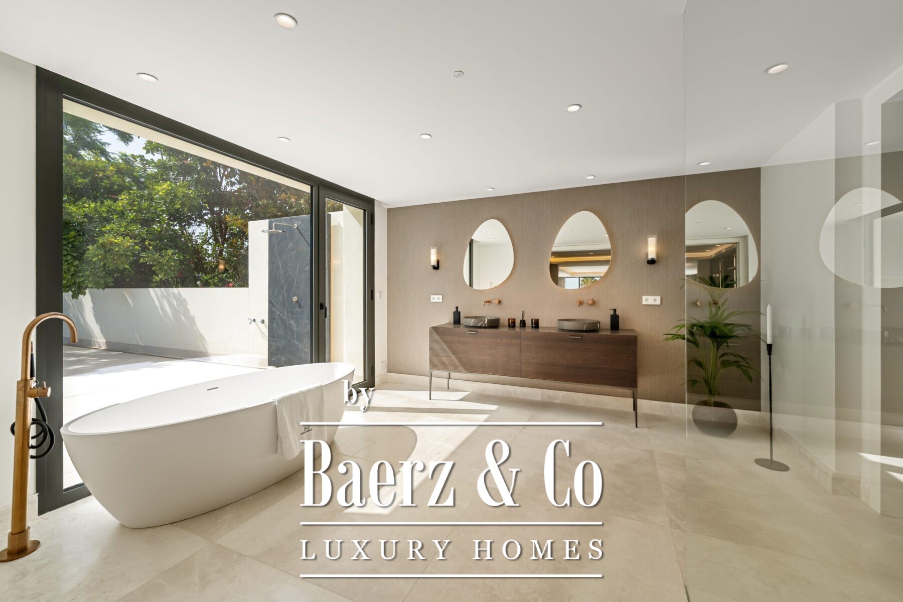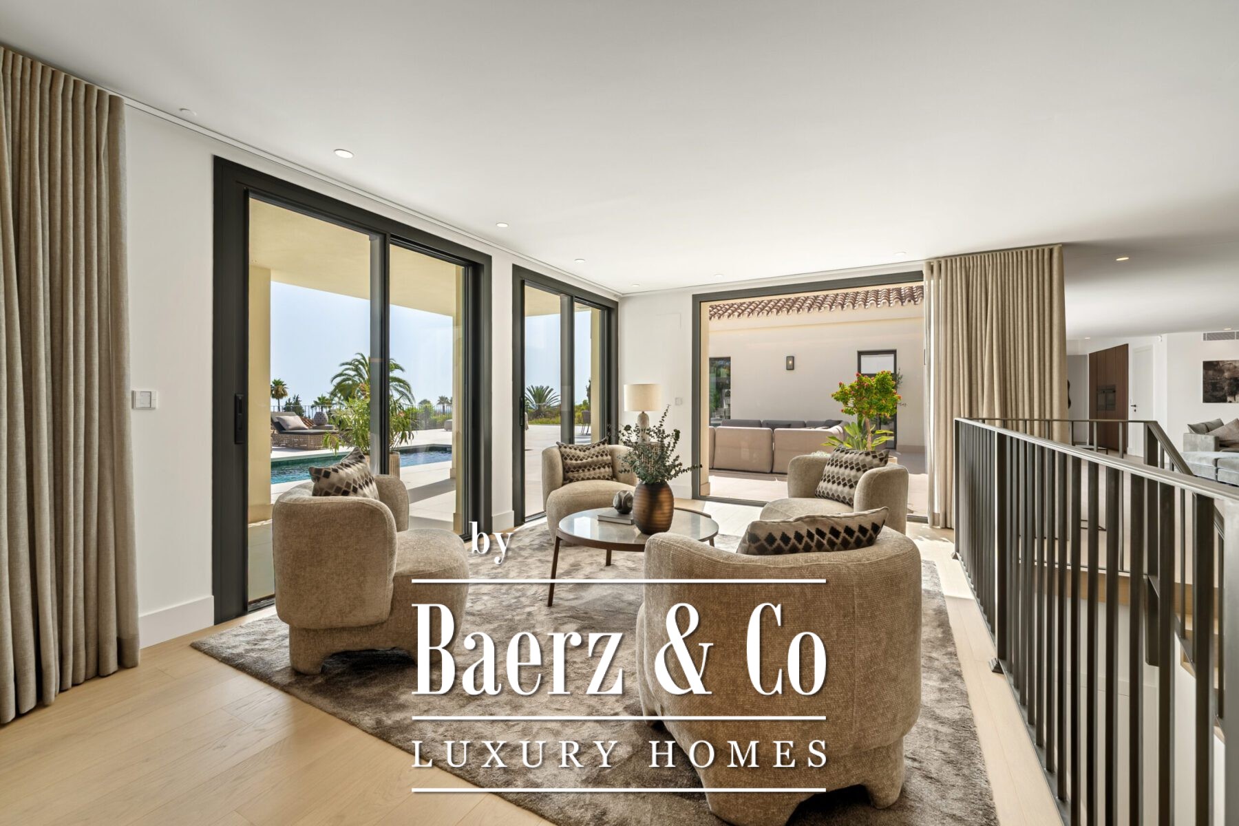 Outdoors, 456m² of terracing surrounds a large saltwater pool, sun deck, al fresco dining area, and landscaped gardens. A covered carport behind gated access provides parking for six vehicles. This turn-key and south-oriented villa is just minutes from beach clubs, golf courses, and all the amenities of Marbella’s Golden Mile, delivering contemporary luxury in one of the coast’s most sought-after locations.