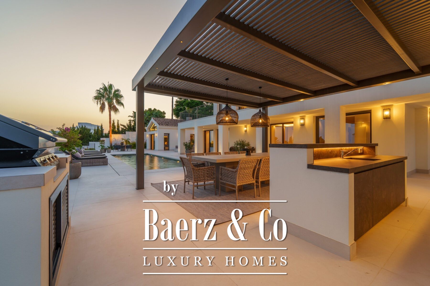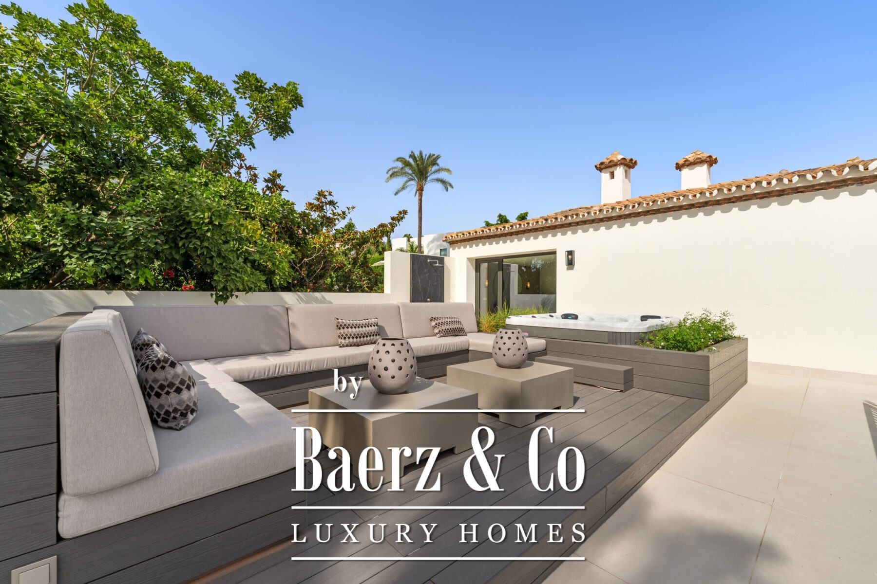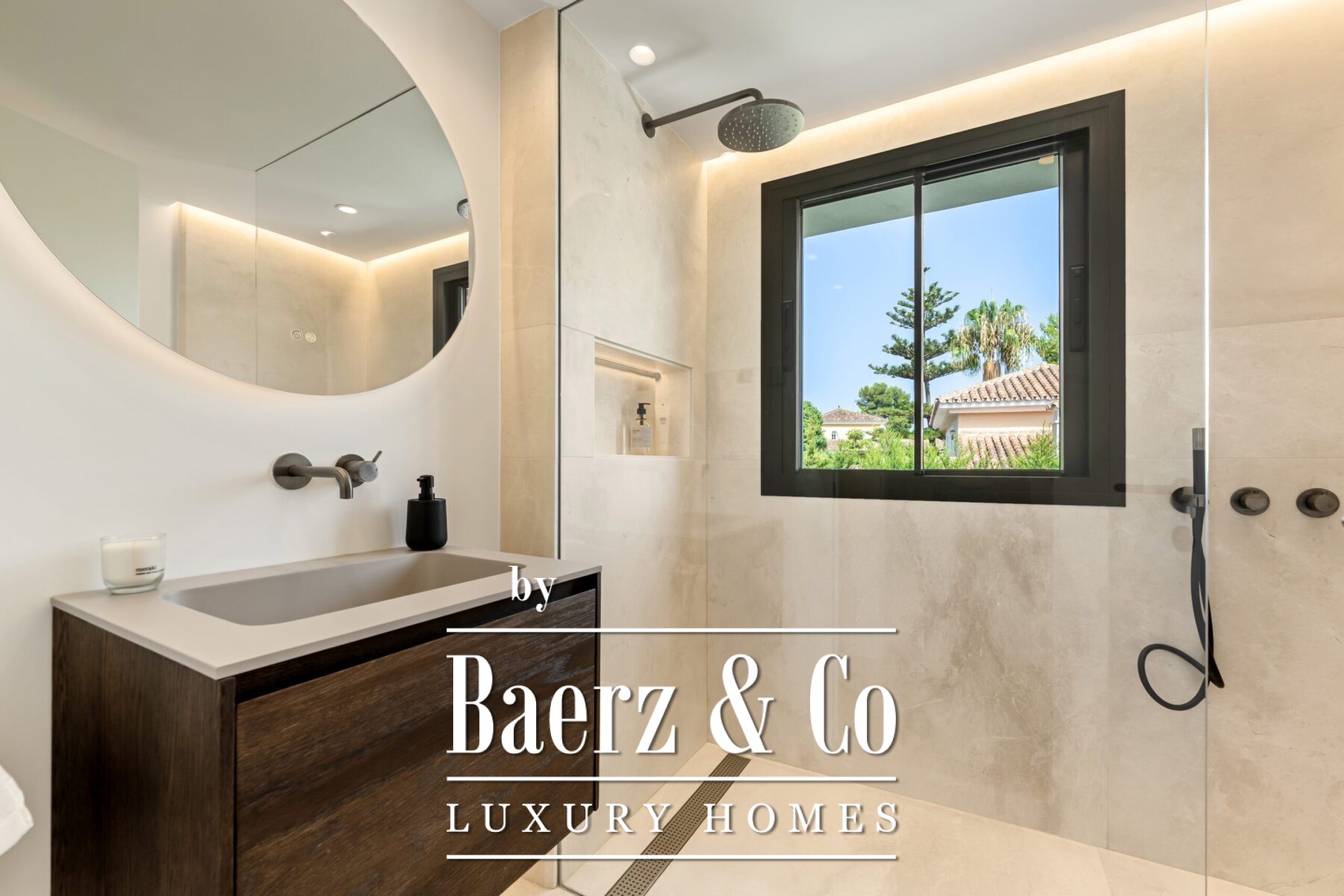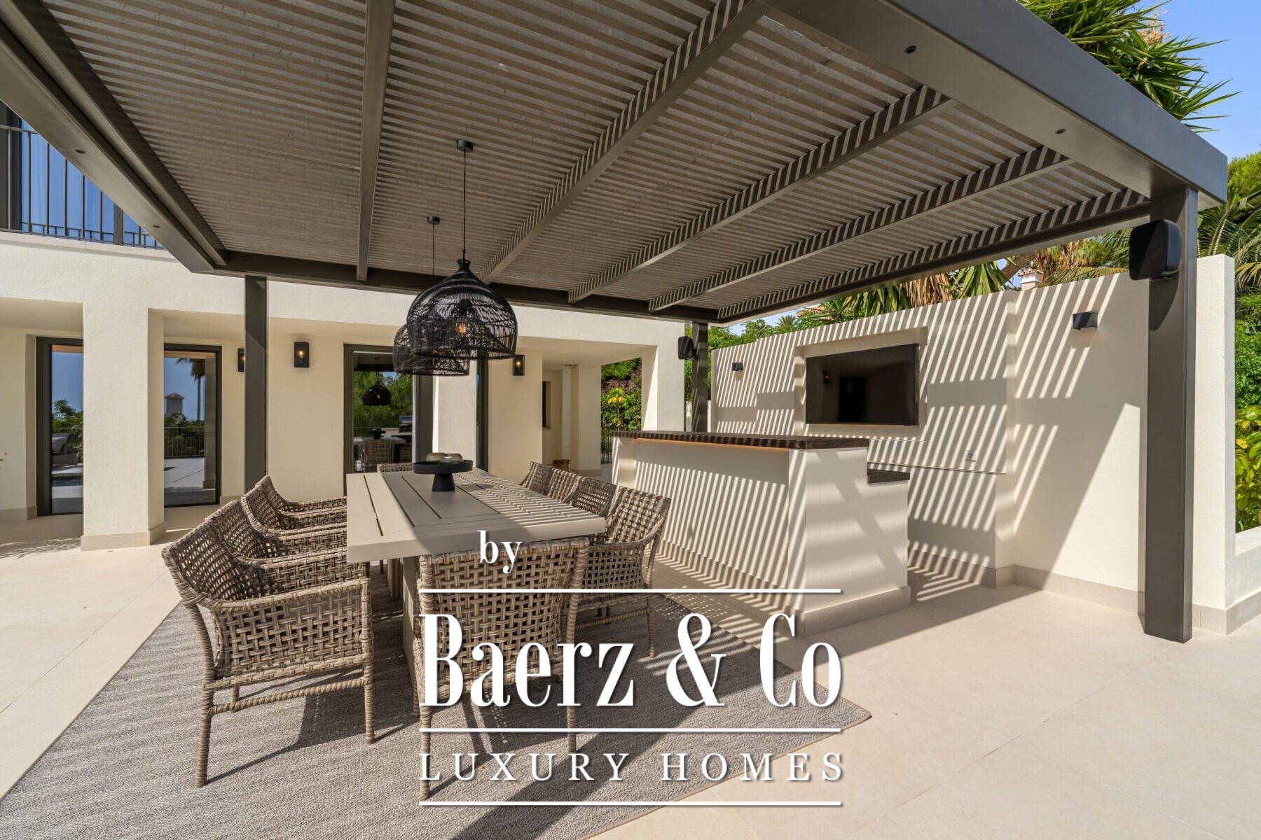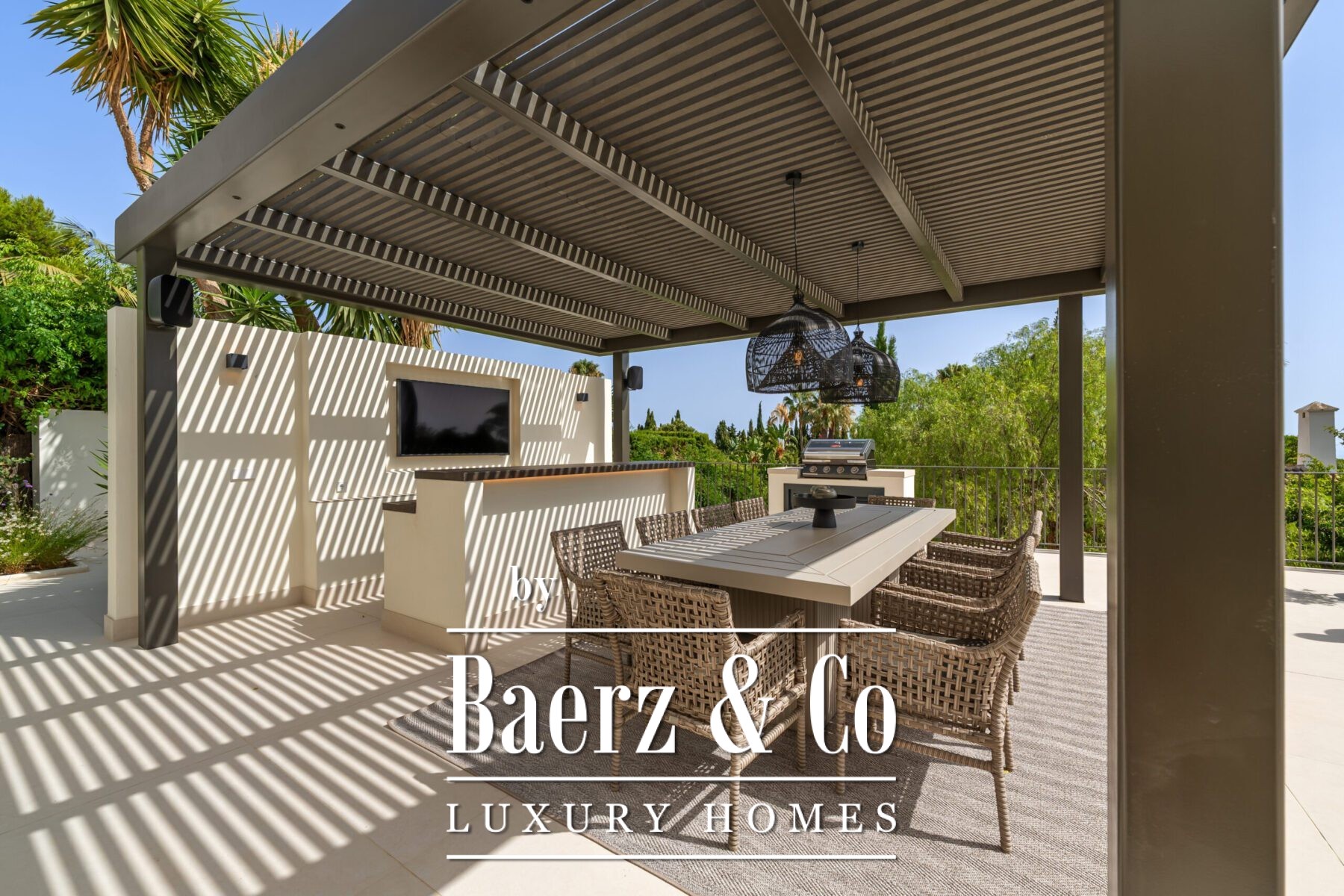 Outdoors, 456m² of terracing surrounds a large saltwater pool, sun deck, al fresco dining area, and landscaped gardens. A covered carport behind gated access provides parking for six vehicles. This turn-key and south-oriented villa is just minutes from beach clubs, golf courses, and all the amenities of Marbella’s Golden Mile, delivering contemporary luxury in one of the coast’s most sought-after locations.