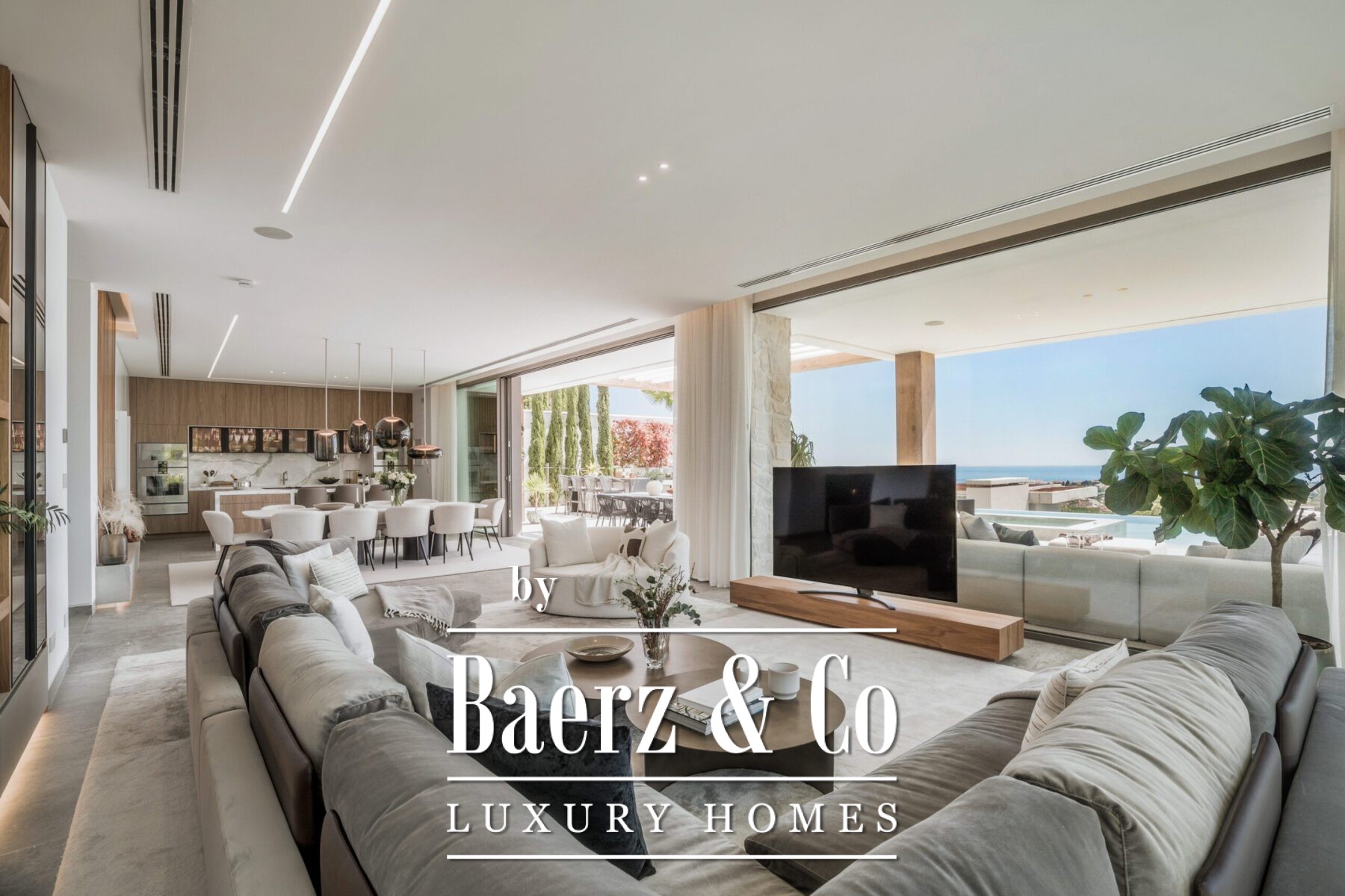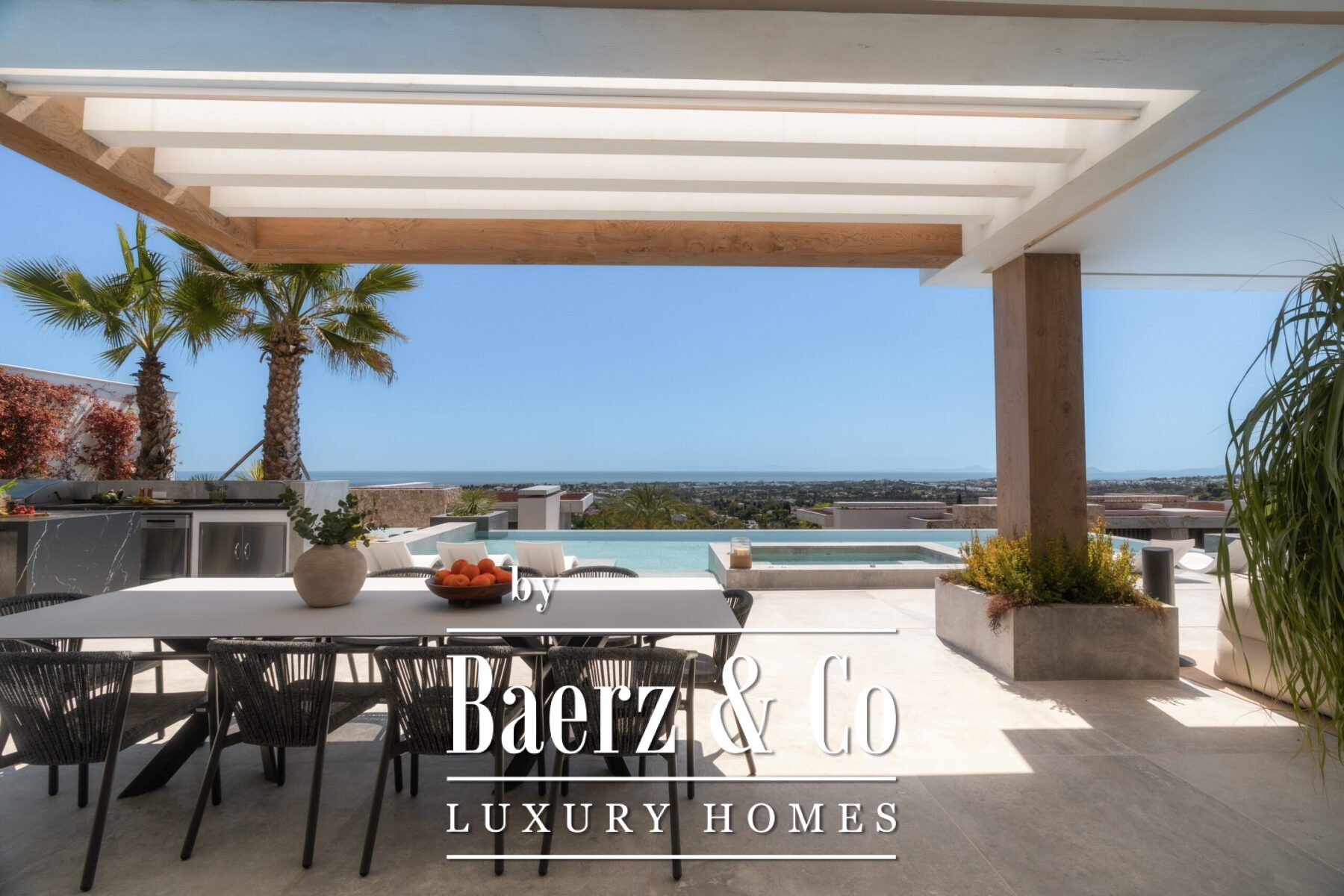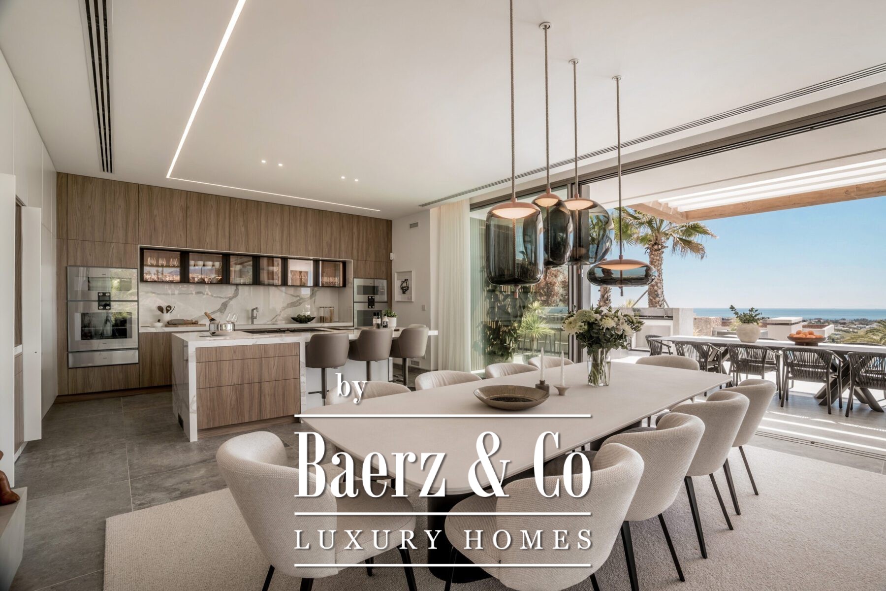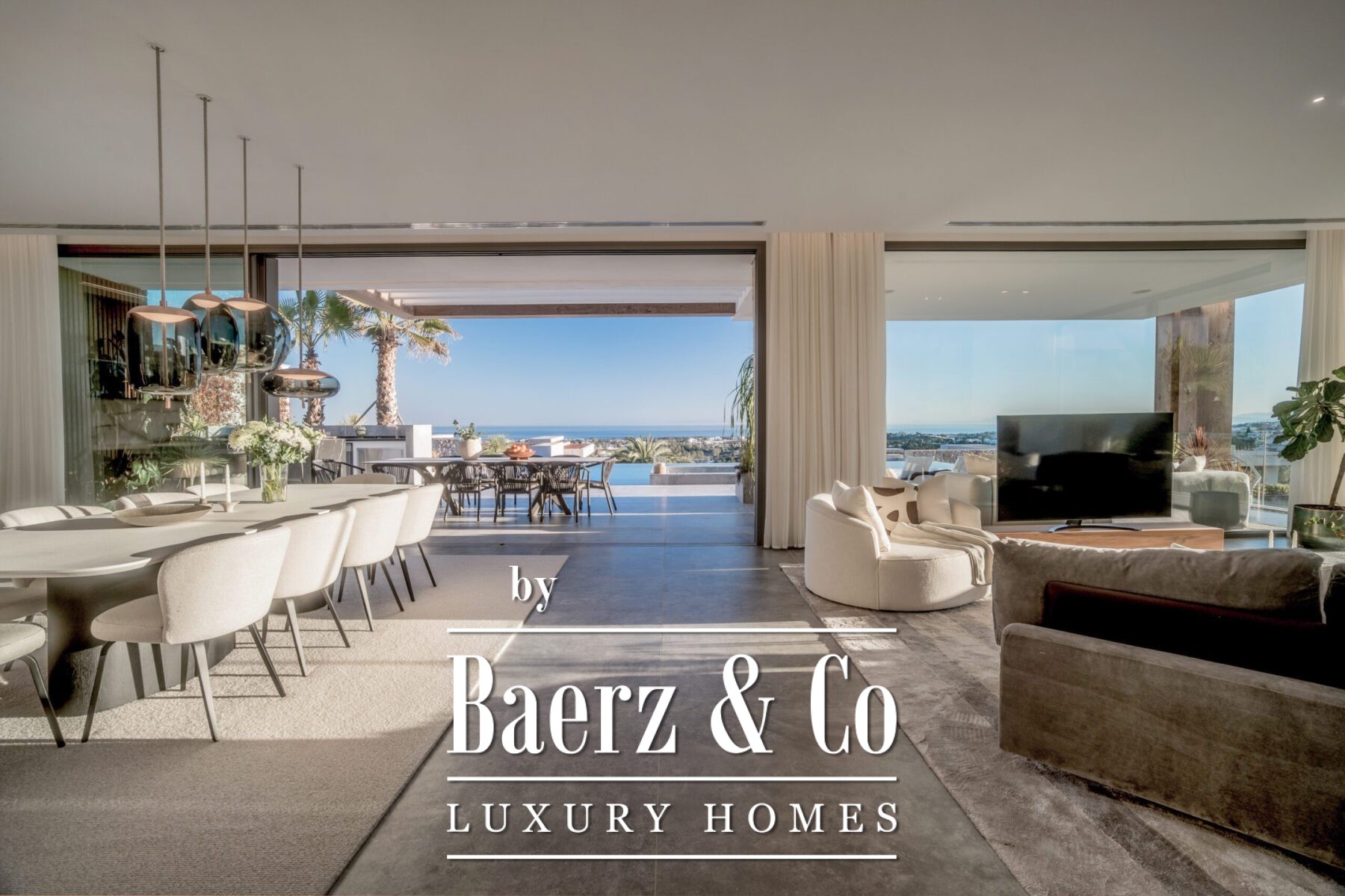 Villa Marbella with panoramic sea views offers an elevated living experience defined by contemporary design and expansive horizons. The property’s 934 m² living area welcomes you with uninterrupted vistas stretching from the Mediterranean to the African coastline. Light flows through floor-to-ceiling windows, merging open-plan interiors with the natural landscape and drawing the outdoors in.