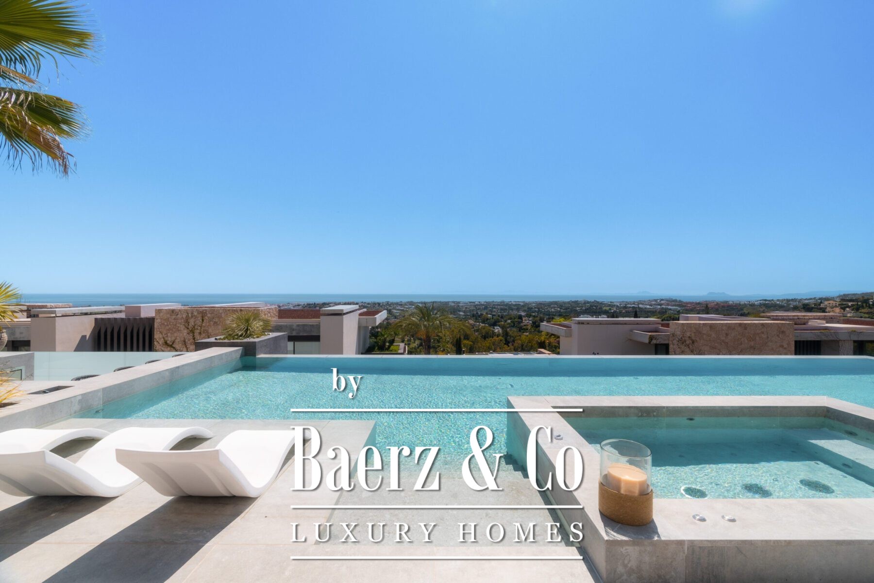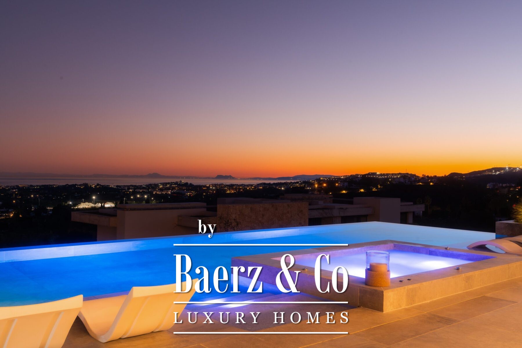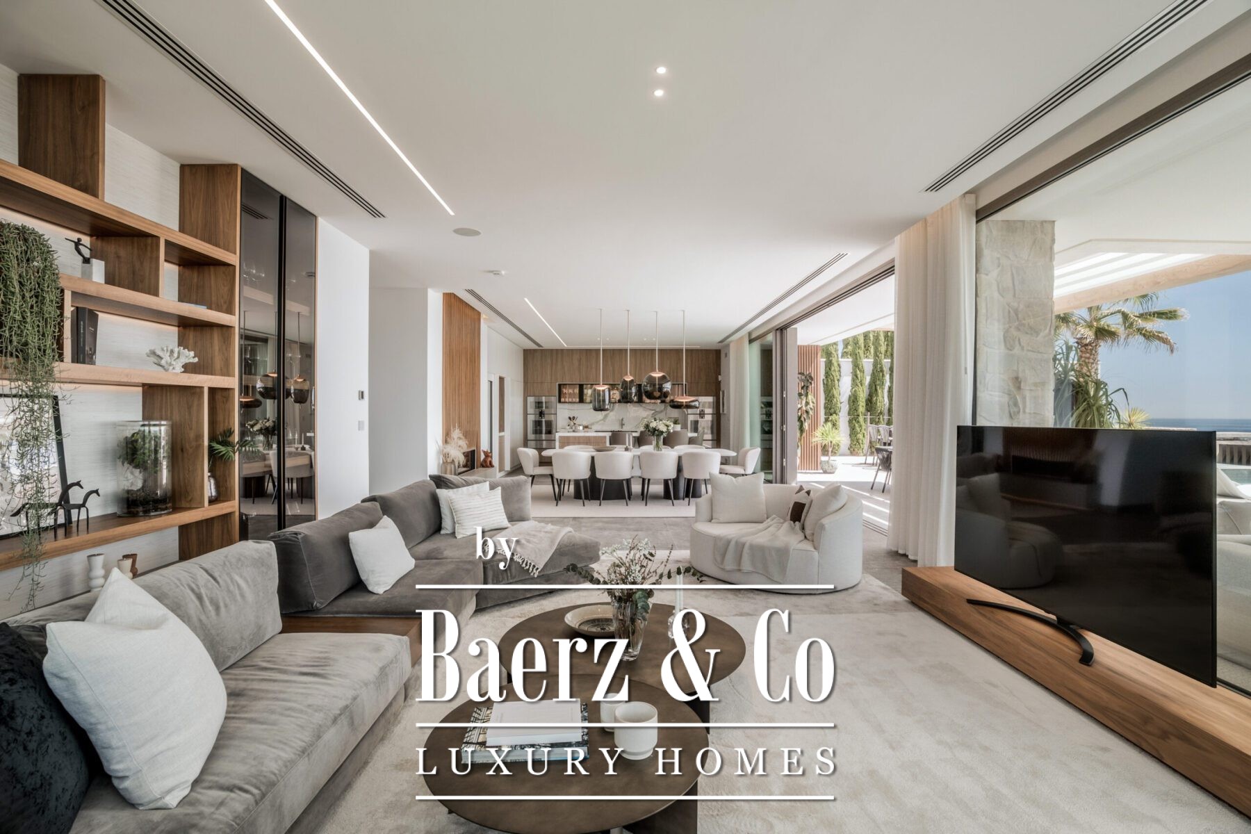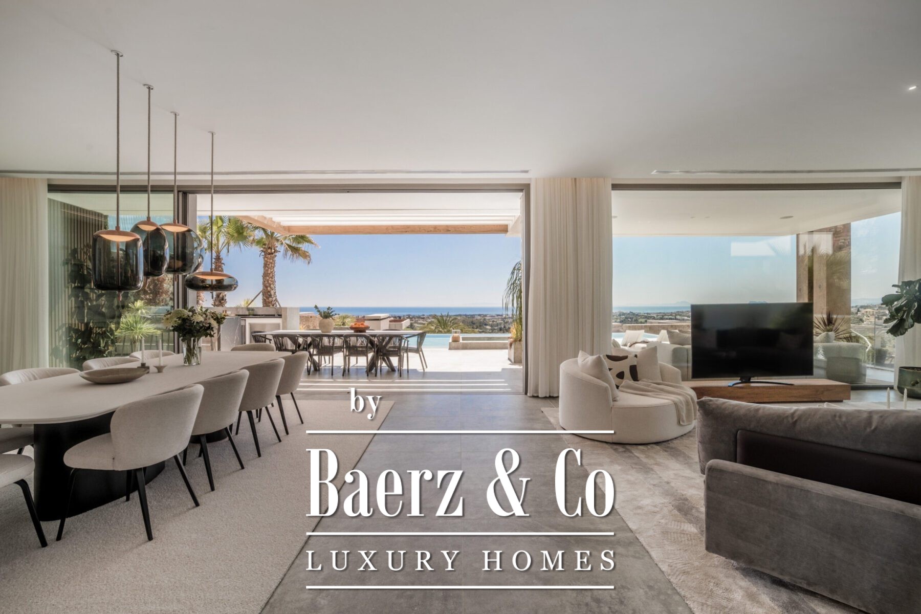 Villa Marbella with panoramic sea views offers an elevated living experience defined by contemporary design and expansive horizons. The property’s 934 m² living area welcomes you with uninterrupted vistas stretching from the Mediterranean to the African coastline. Light flows through floor-to-ceiling windows, merging open-plan interiors with the natural landscape and drawing the outdoors in.