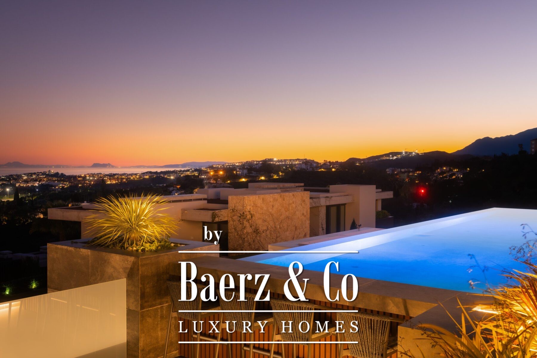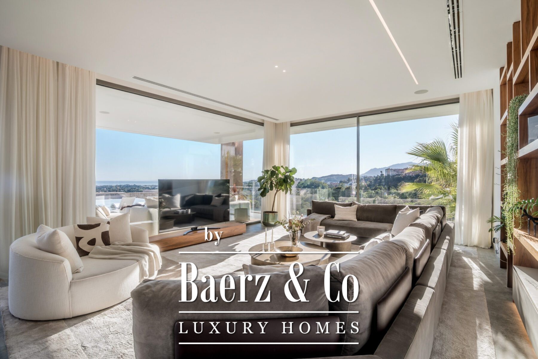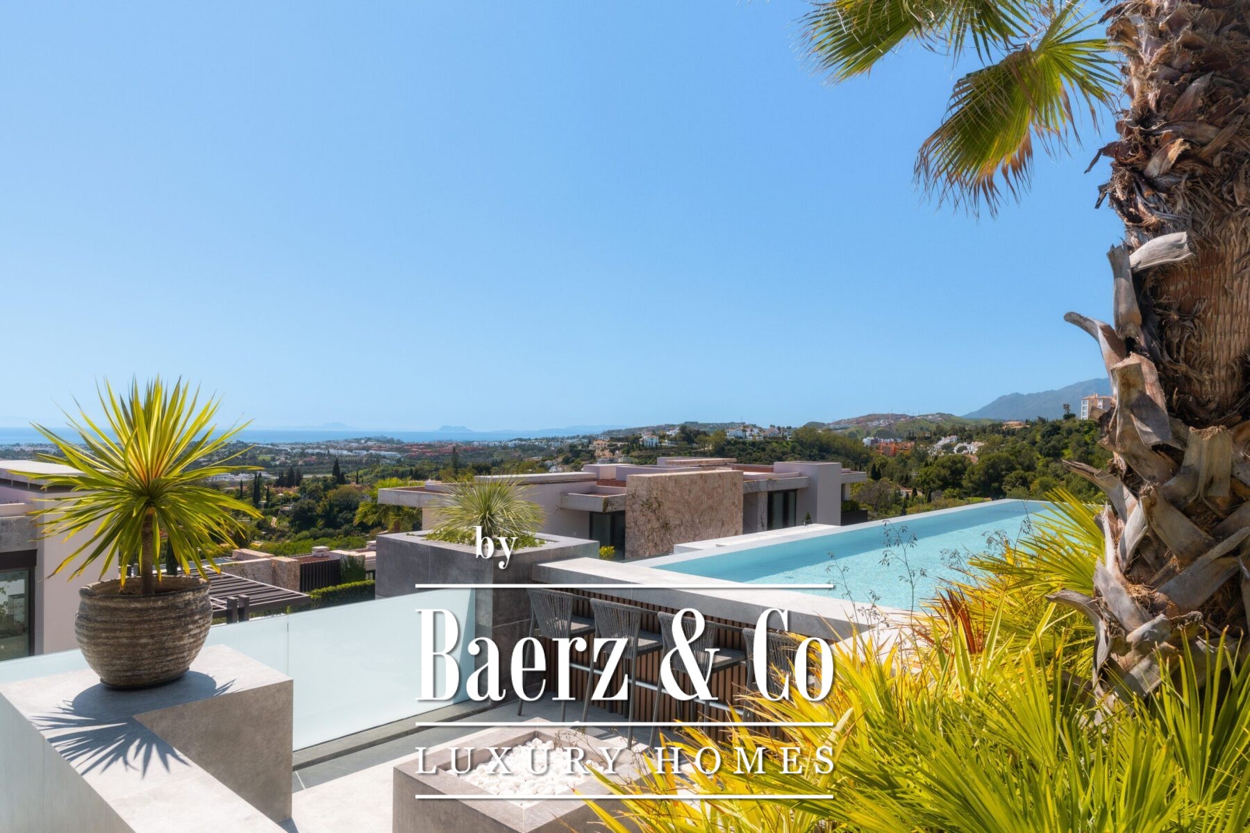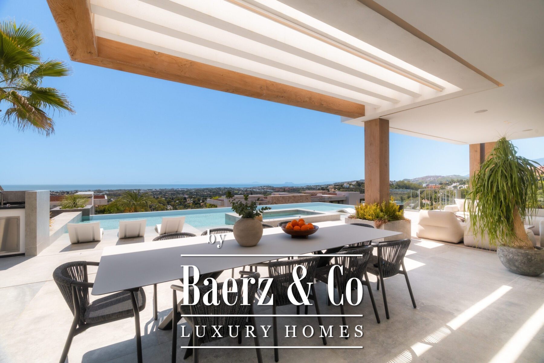 Villa Marbella with panoramic sea views offers an elevated living experience defined by contemporary design and expansive horizons. The property’s 934 m² living area welcomes you with uninterrupted vistas stretching from the Mediterranean to the African coastline. Light flows through floor-to-ceiling windows, merging open-plan interiors with the natural landscape and drawing the outdoors in.