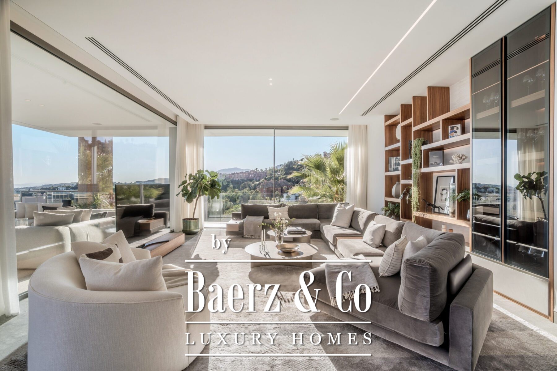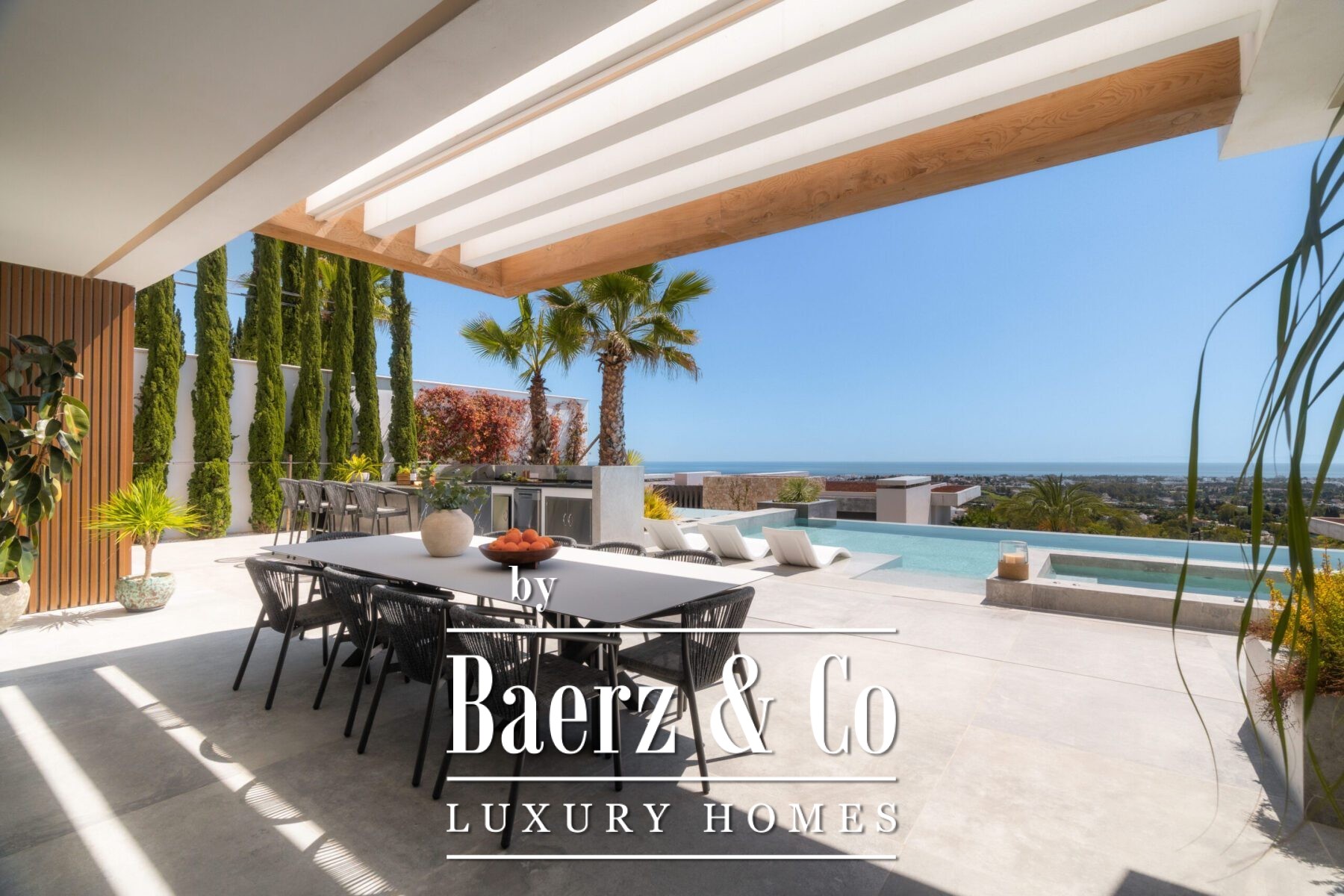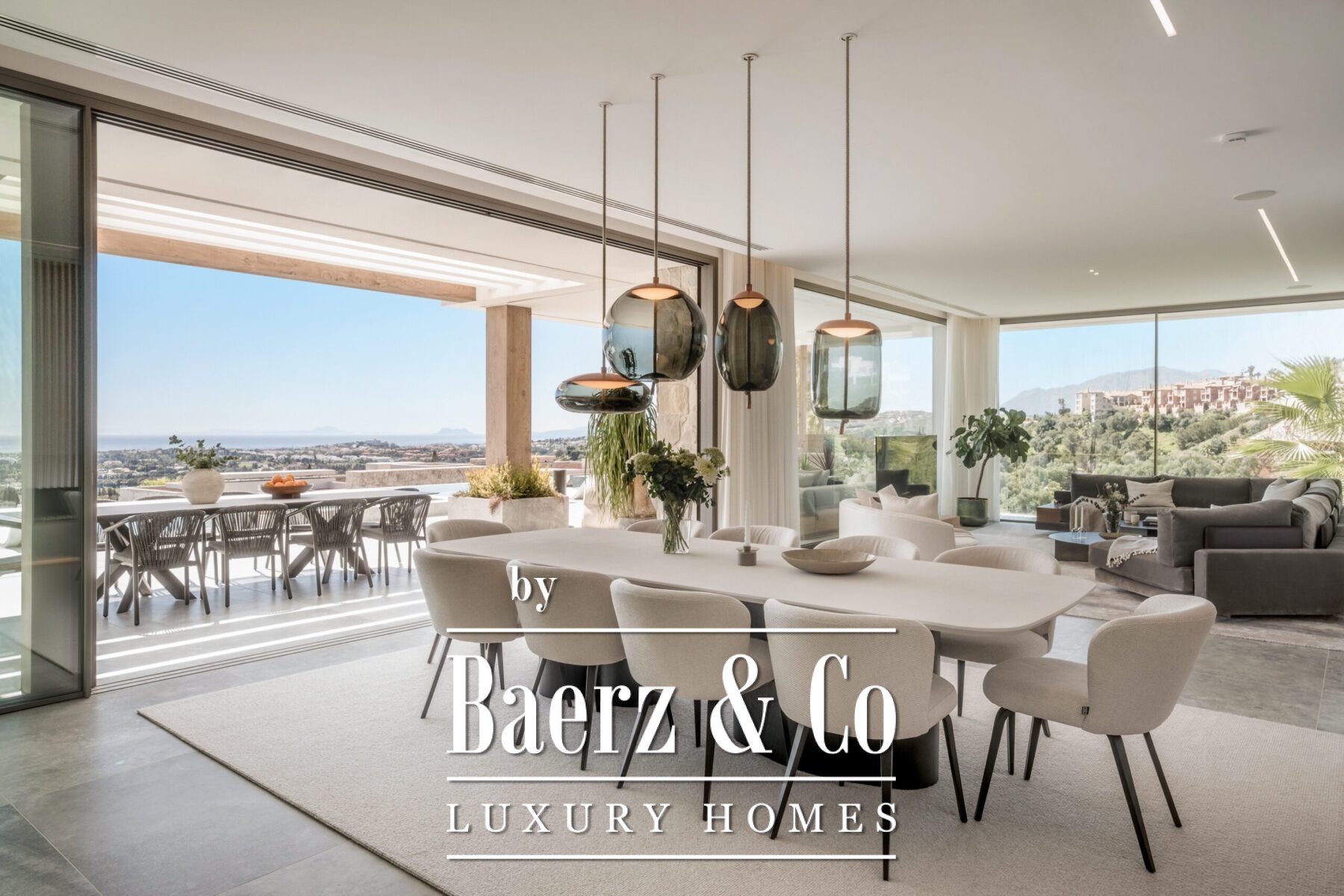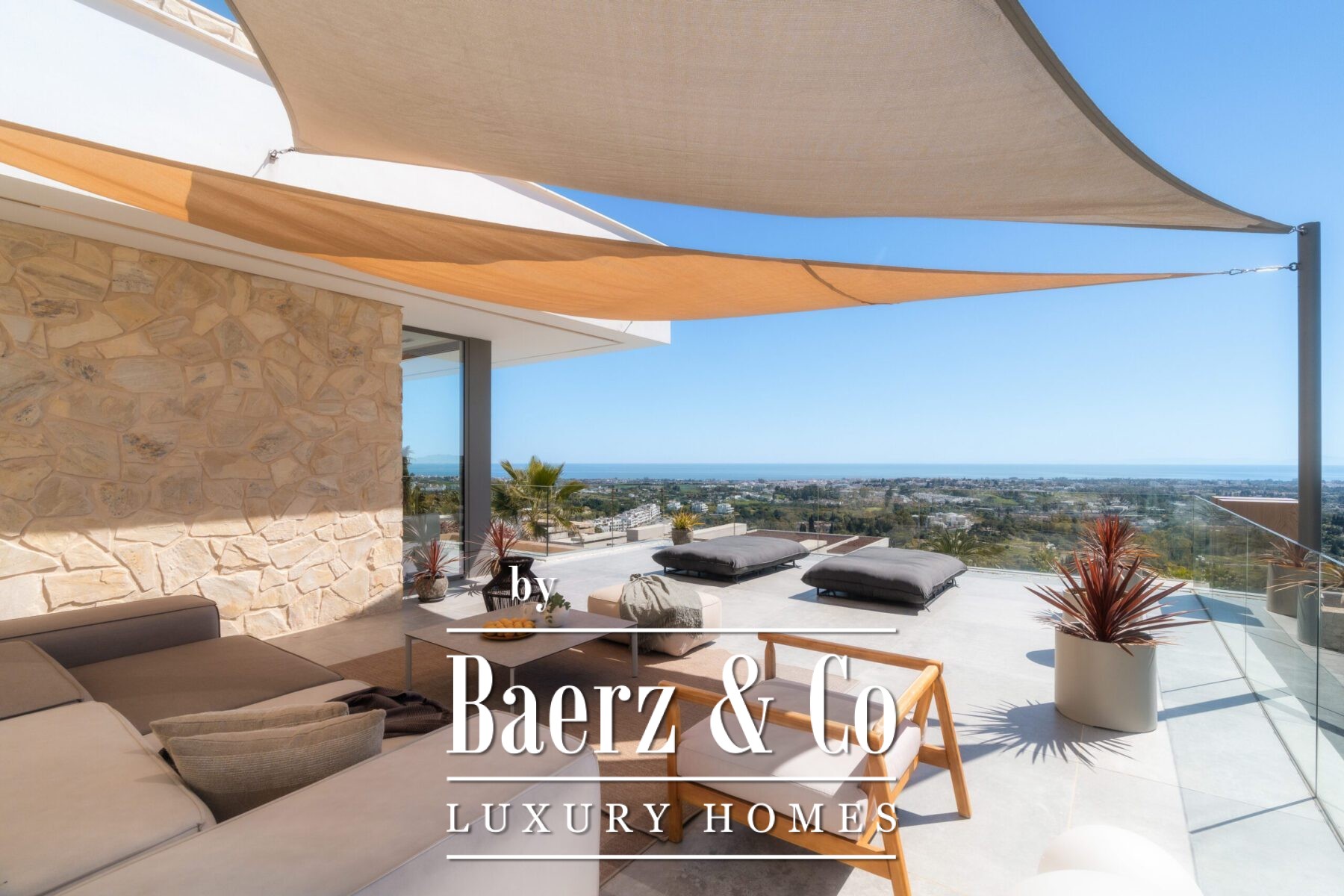 Villa Marbella with panoramic sea views offers an elevated living experience defined by contemporary design and expansive horizons. The property’s 934 m² living area welcomes you with uninterrupted vistas stretching from the Mediterranean to the African coastline. Light flows through floor-to-ceiling windows, merging open-plan interiors with the natural landscape and drawing the outdoors in.