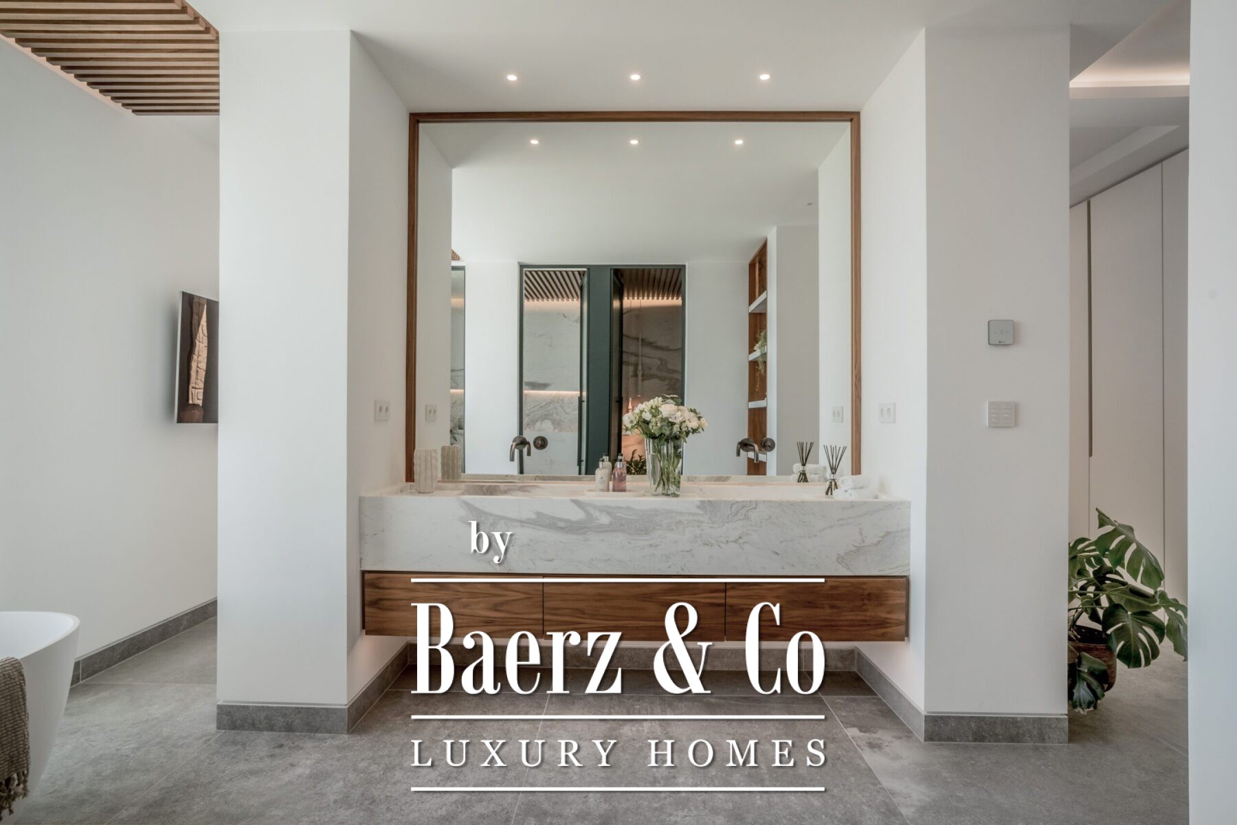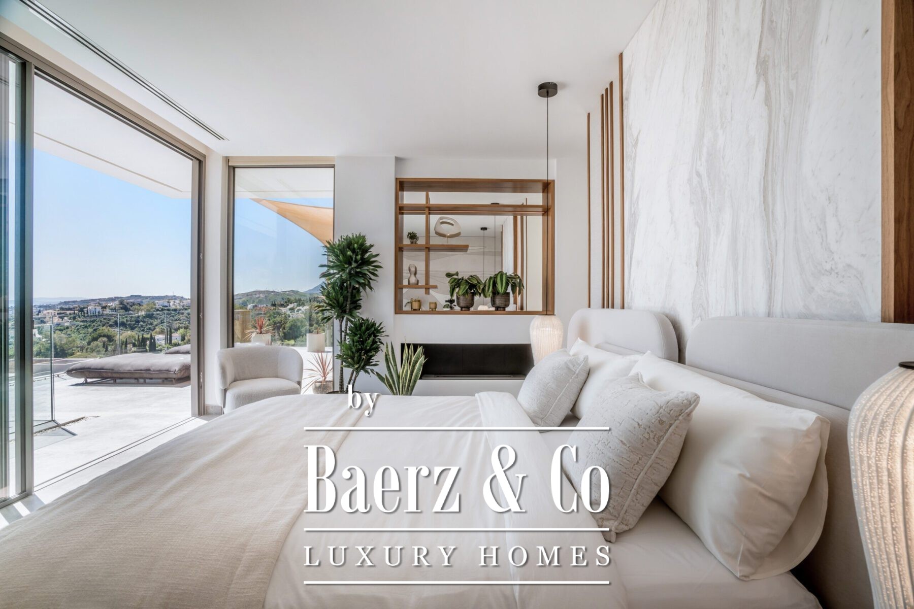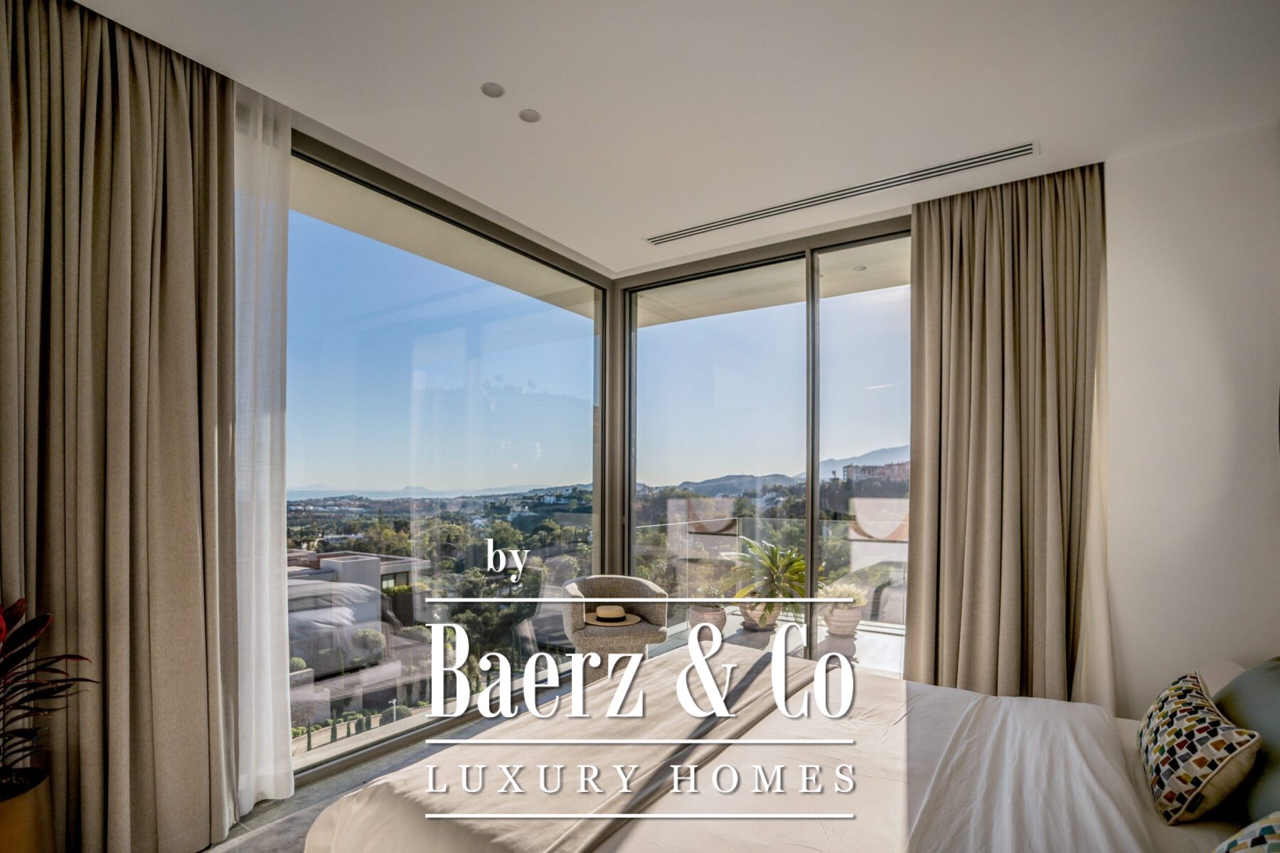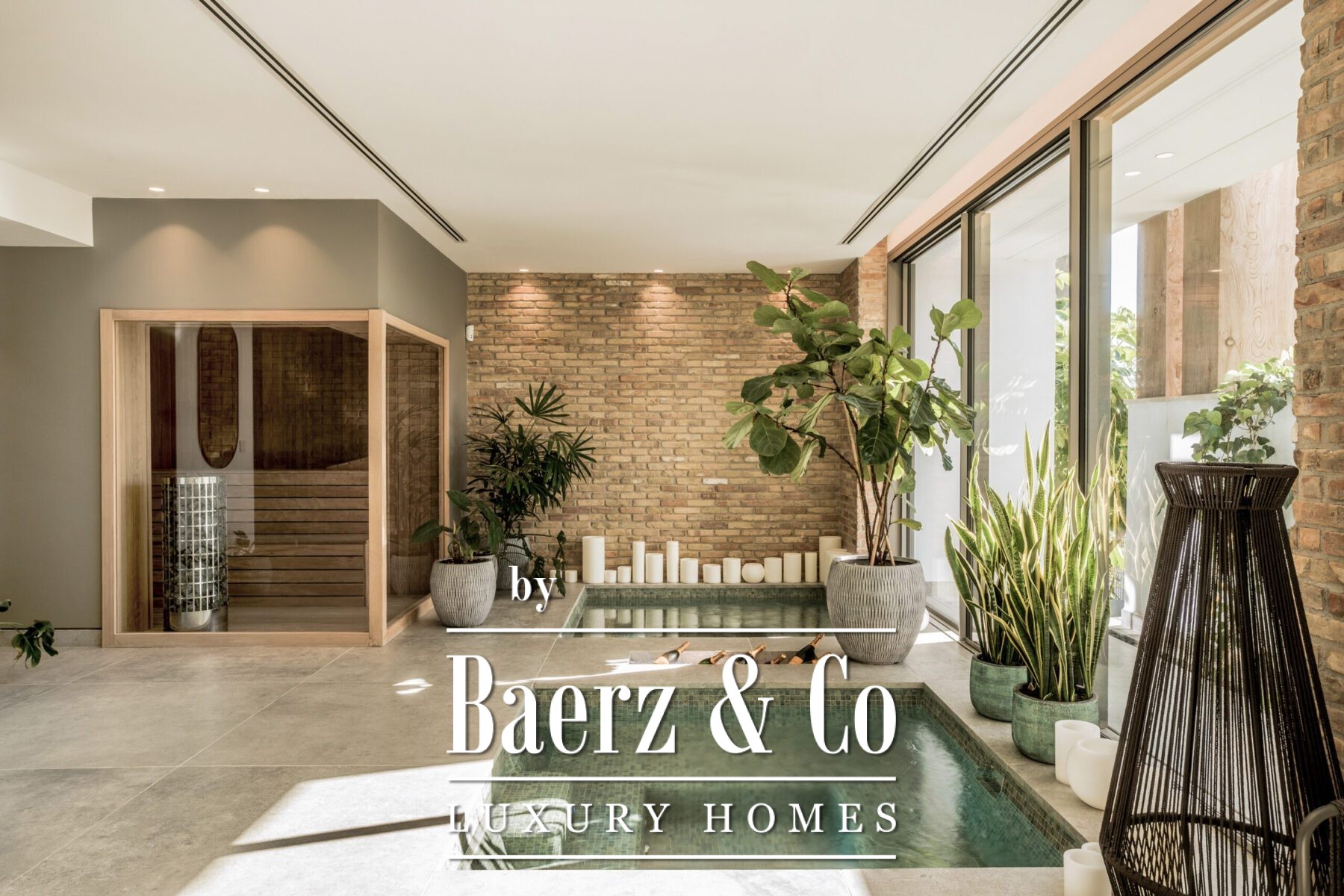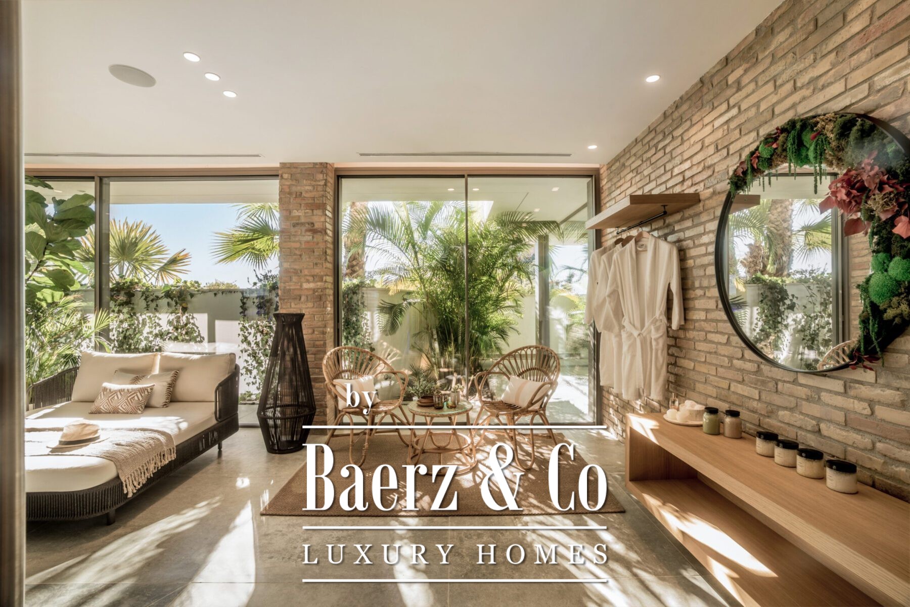 Crafted for contemporary demands, the kitchen features Gaggenau appliances and cabinetry by Danespan, while an adjacent home office ensures space for quiet productivity. The villa is situated within a gated community and benefits from 24-hour security, an alarm, and proximity to golf courses, amenities, and the coast. Every detail conveys understated opulence and an effortless connection to Marbella’s coastal setting.
