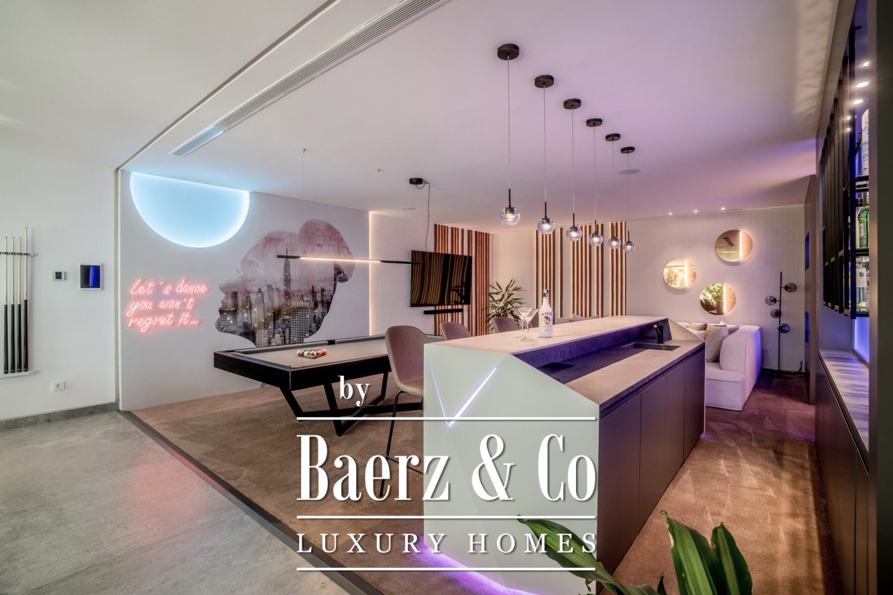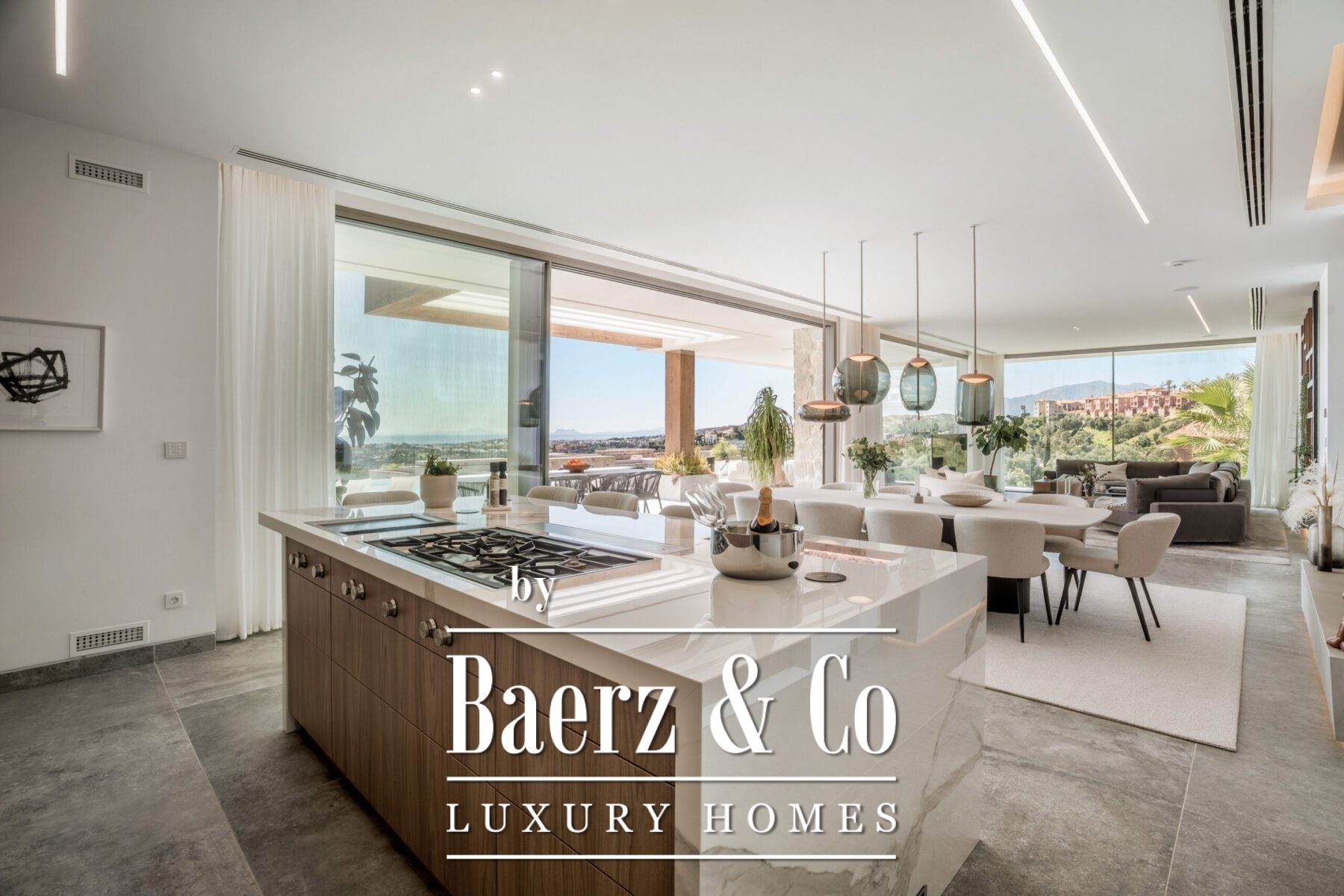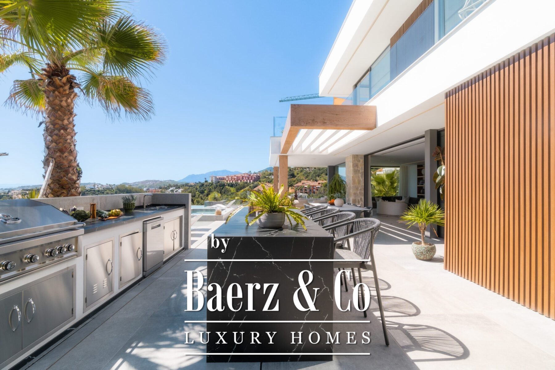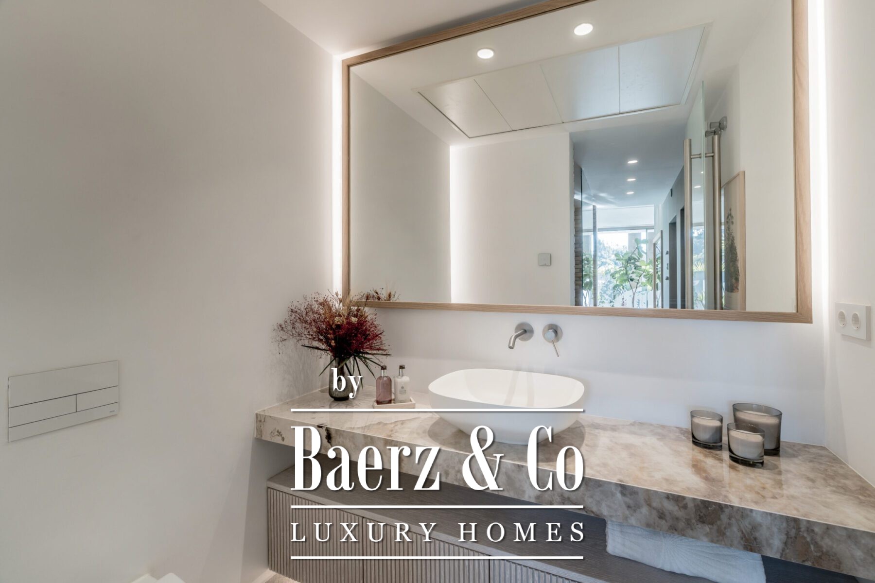 Crafted for contemporary demands, the kitchen features Gaggenau appliances and cabinetry by Danespan, while an adjacent home office ensures space for quiet productivity. The villa is situated within a gated community and benefits from 24-hour security, an alarm, and proximity to golf courses, amenities, and the coast. Every detail conveys understated opulence and an effortless connection to Marbella’s coastal setting.